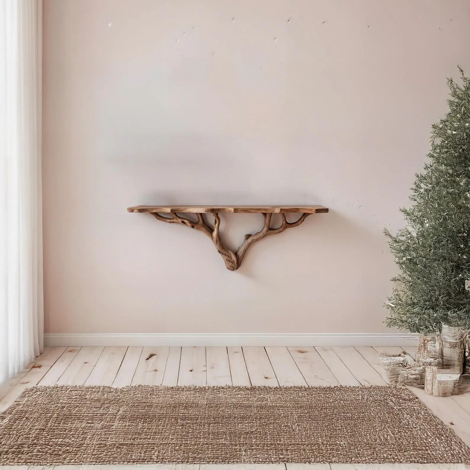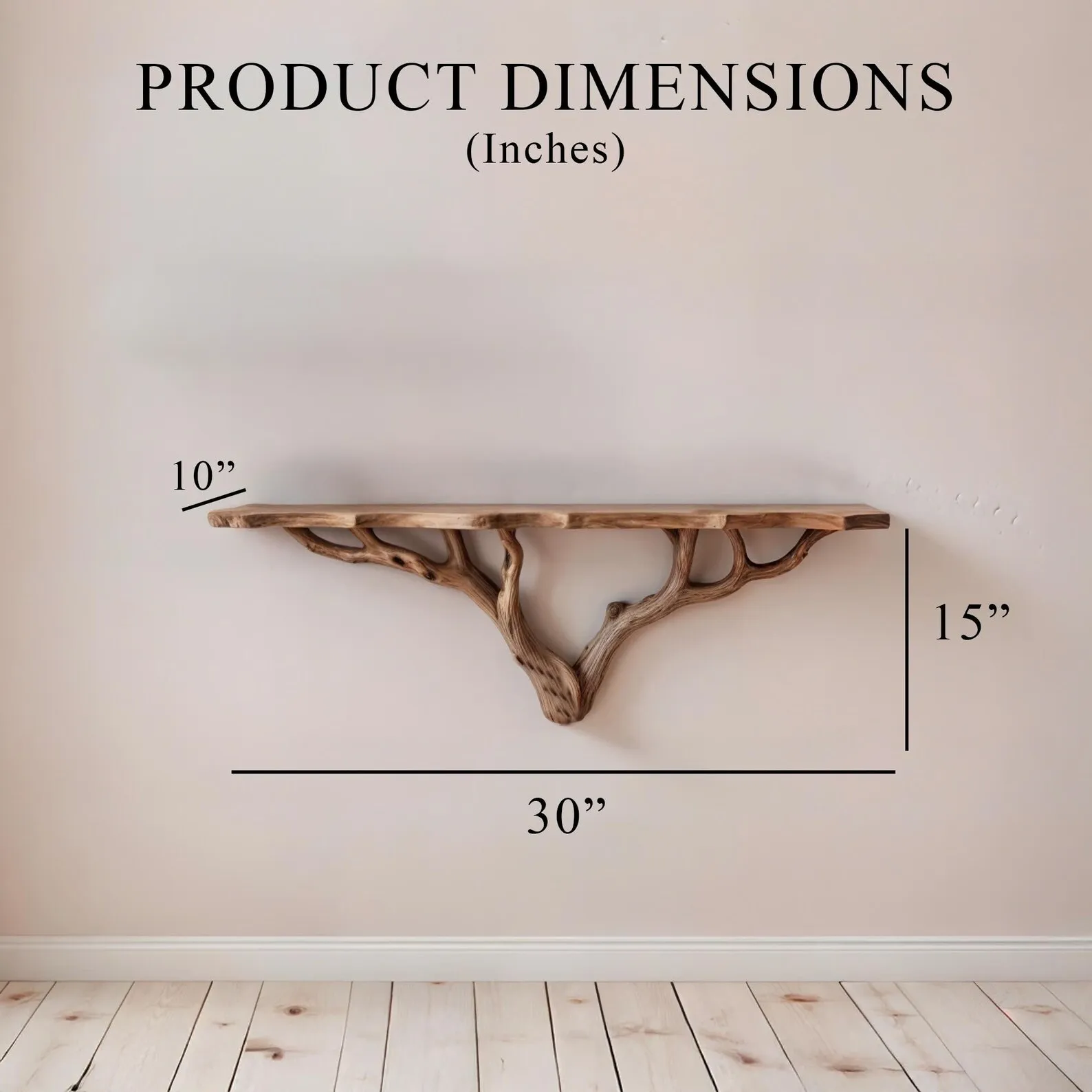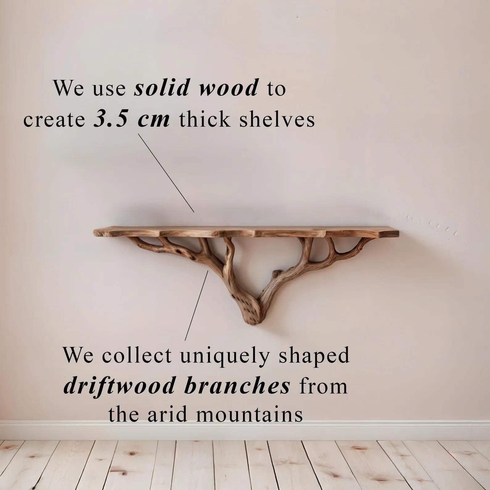 Each shelf is handcrafted from real driftwood, carefully selected for its natural beauty. This unique piece adds warmth and character to any spaceDetails:Size:Width: 30 inchesDepth: 10inchesHeight: 15 inchesMaterial: 100% natural driftwoodBenefits:’Perfect for boho, rustic, or Scandinavian interiors.”Great as a gift for nature lovers.’Installation Instructions:”Comes with pre-drilled holes and mounting hardware for easy installation.”Products are made from natural driftwood so they will not be exactly the same.