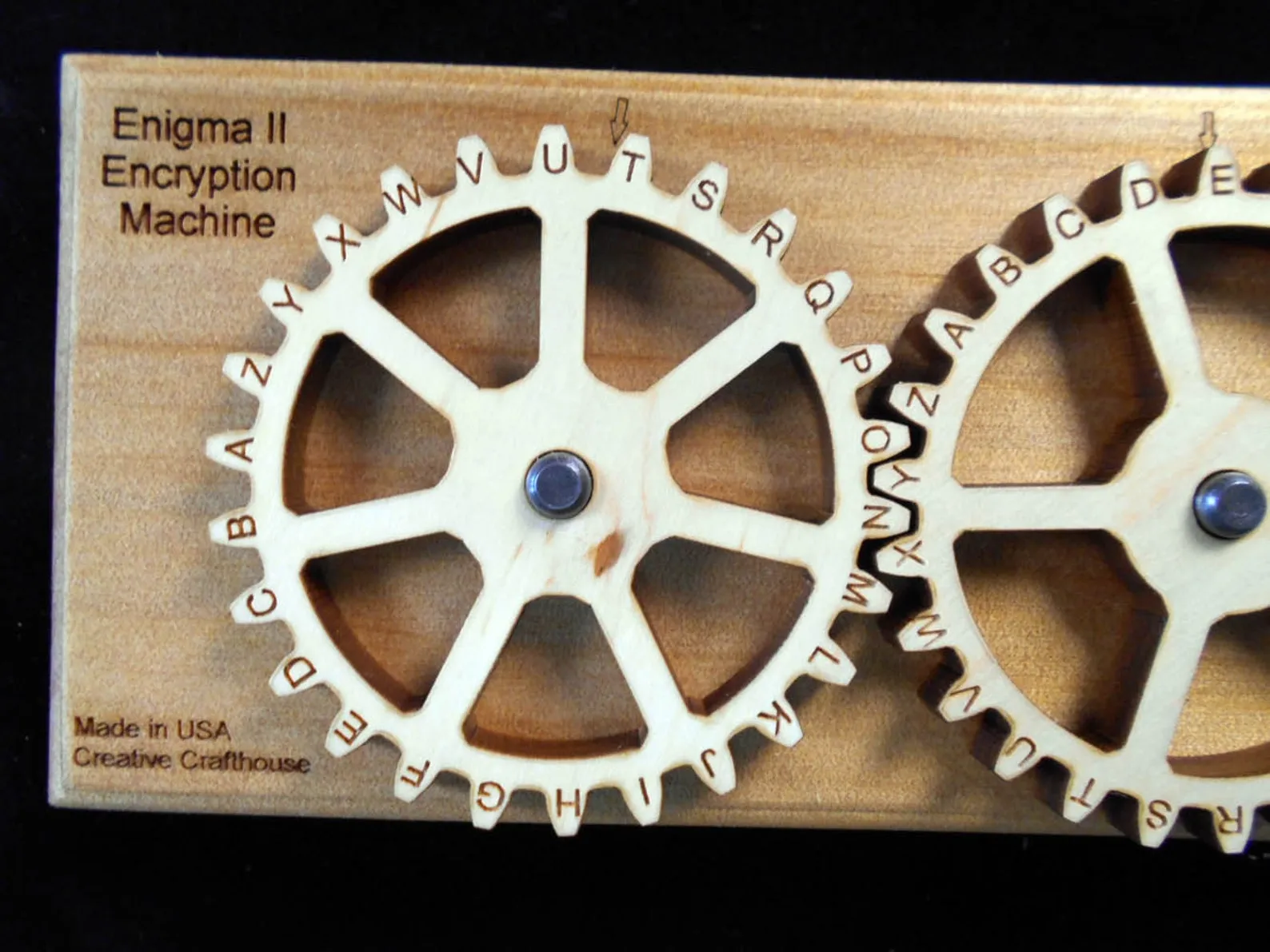 This is an encryption machine that will allow you to encrypt your own messages and in addition we have provided 8 secret messages for you to try and solve. Send and receive secret messages to anyone who has a machine. It’s quite easy to use but creates messages that can be extremey difficult to decode. Complete instructions on how to use the machine are provided. Hardwood construction with gears cut from ?? thick wood. All letters and text are deeply laser engraved into the wood. The gears turn on alloy steel pins. Made in USA and designed to last a lifetime.Available in 2 different sizes. This listing is for the size small which measures approx. 9.4? x 3.2? x 1?. Each gear is approx. 2.7? in diameter.Also available on a different listing is a larger size made from Sapelli wood and maple. It measures 12.75? x 4.5? x 1?. Each gear is approx. 3.7? in diameter? Creative Crafthouse Made in FloridaTo view a video on this items, copy and paste this link:http://youtu.be/hiOjqskDlS0To encode a message:1. Define the gear order such as 7 (spokes) – 6 – 5 as shown above2. Create a 3 letter key word and put gears on pins with letters of keyword at each respective arrow. In the example above the keyword would be ZCK.3. The 3rd gear (right side) is the Output Wheel, or the gear that defines the unencoded letter. Turn this gear such that the first letter to be encoded is at the arrow.4. Record the encoded letter on the 1st gear at the top arrow. In the example above the letter ?K? would encode to ?Z?5. Turn the Output Wheel to the next letter to be encoded. 6. Record the encoded letter on the 2nd gear (middle gear) at the top arrow.7. Repeat this process going back and forth between the 1st and 2nd gears.Note that encoded messages are commonly grouped in blocks of 4 letter with no regard for word spacing or punctuation. Once the letters are decoded it is relatively easy to see the words. 8. OPTIONAL: you can make your message even more secure if you change your Key code during the course of the message. There are many ways to do this. For example you might have a key phrase that contains 3 key words. (such as ?Pet the Dog?)Then after every 12th letter you change the wheels to match the next key word. The first key setting would be PET, then THE, then DOG. Repeat this process moving through the key words and then starting over. It greatly increases the security of the message.