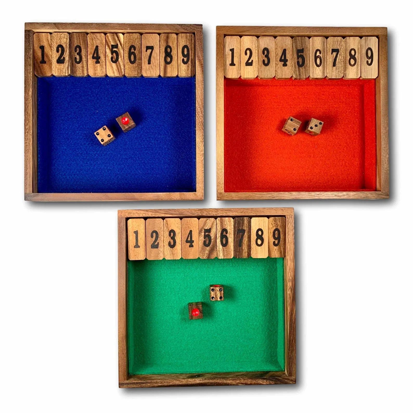 Shut The Box sz large 9x9 with Wood Burned Numbers - Wooden Family Game