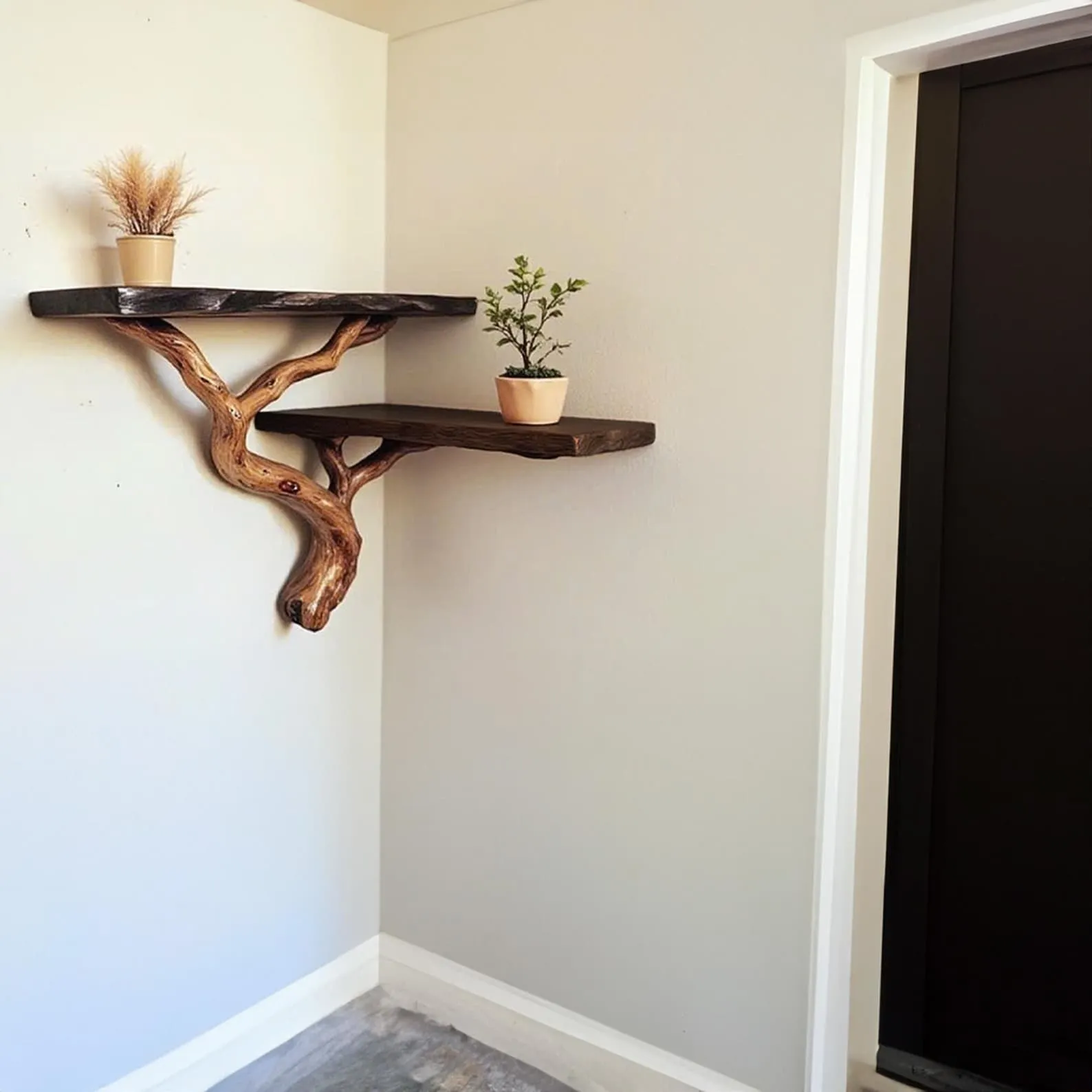 Floating bookshelf live edge floating corner shelves driftwood branch black wall shelf gift for the home