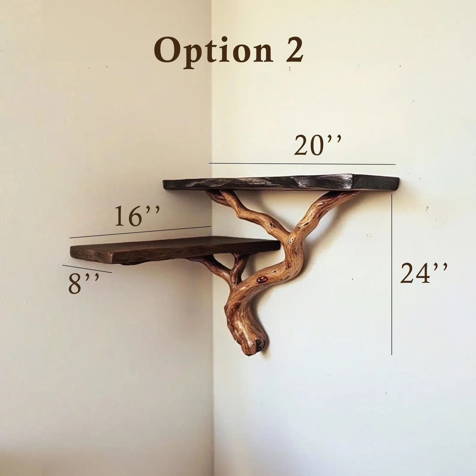 Aurenroot made this tree shape bookshelf from handcarved solid wood, with the branch crafted from natural driftwood branch and the shelves are made from natural solid wood. This natural wood bookshelf is a stunning example of handmade furniture, designed to bring the beauty of nature into your home. Each piece is meticulously handmade, ensuring no two bookshelves are exactly the same every tree branch shelving unit features its own unique natural characteristics.We offer customizable sizes and colors, so just share your idea with us, and we’ll bring it to life. Need help selecting the right accessories for your wall type? Message us, and we’ll guide you through the options.After your purchase, please check your email and messages, as we may send a photo of your custom piece before shipping to ensure it meets your expectations.Looking forward to serving you, we cherish the opportunity to create something as unique and special as your home.