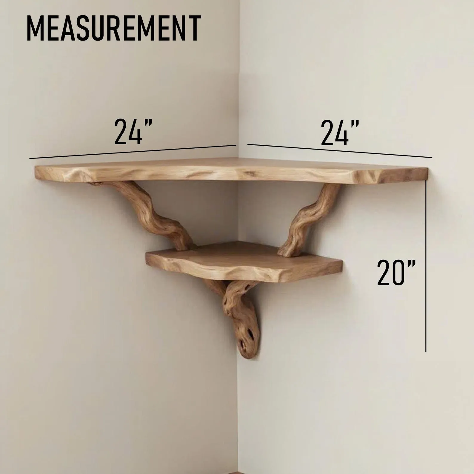 Floating corner shelf driftwood branch wall mounted shelf art bookshelf solid wood decor for home