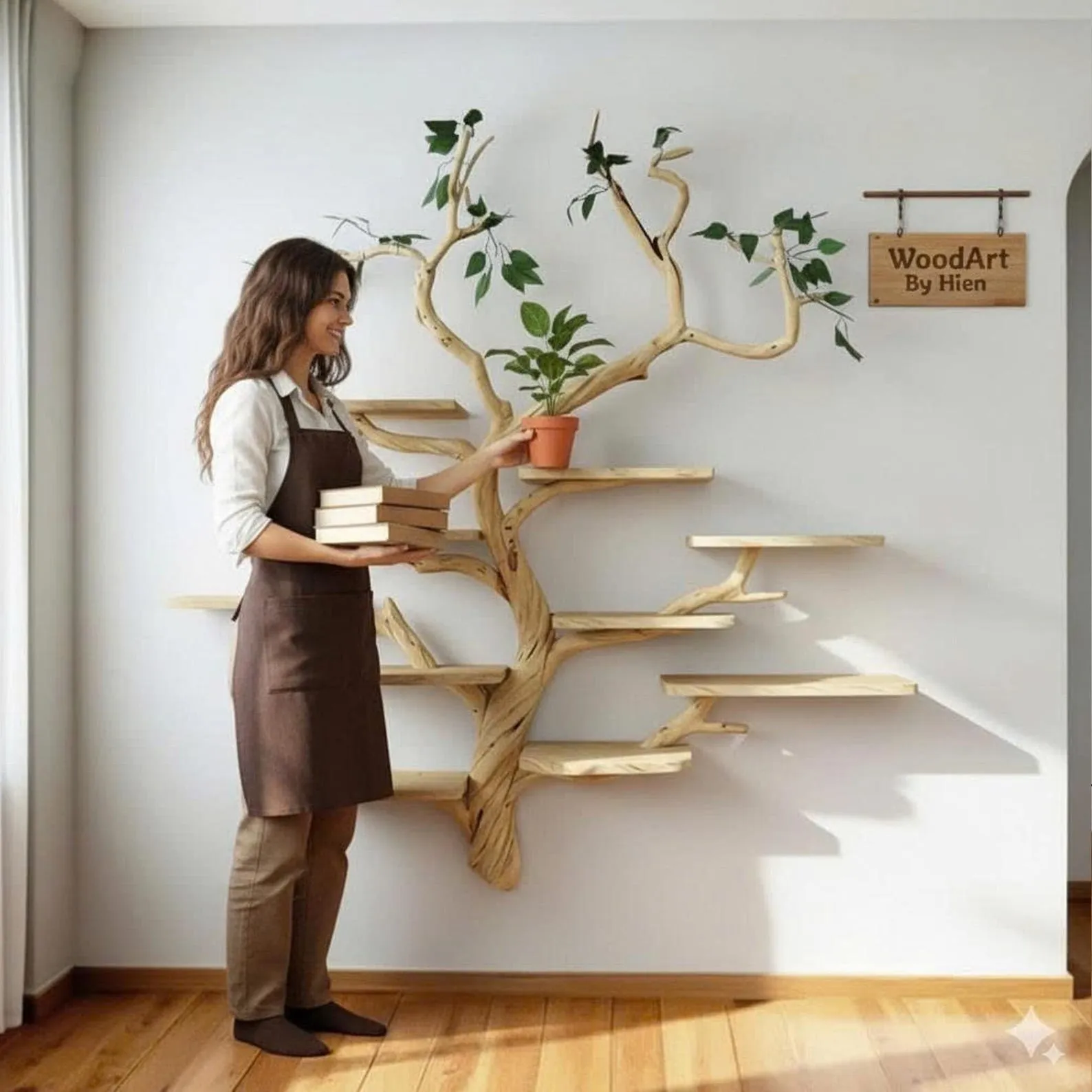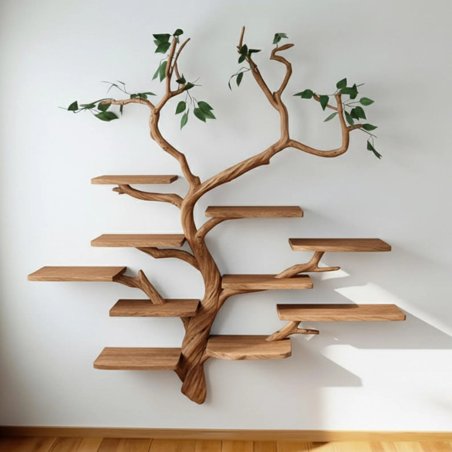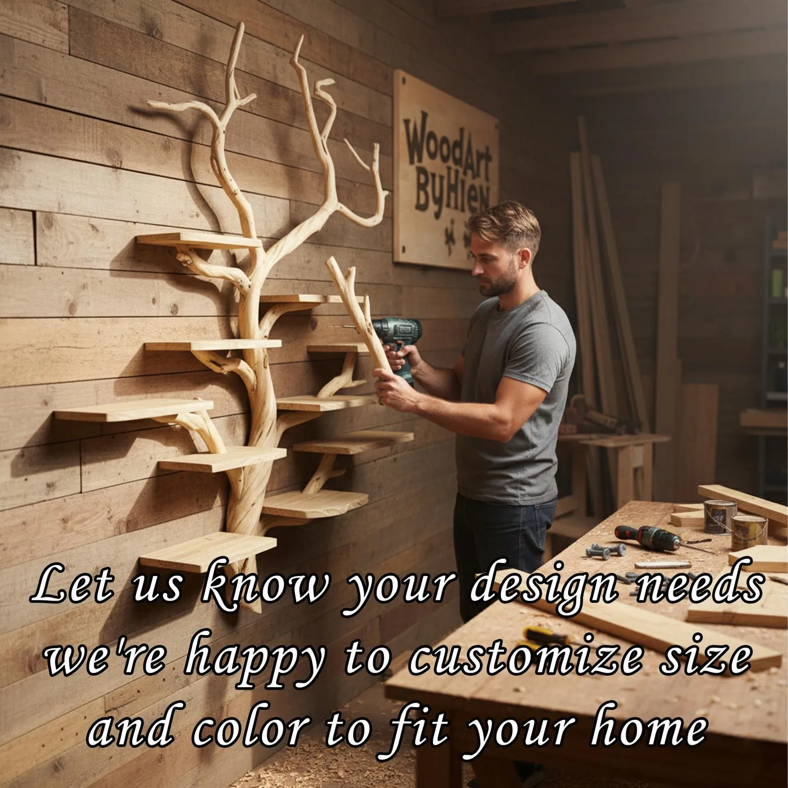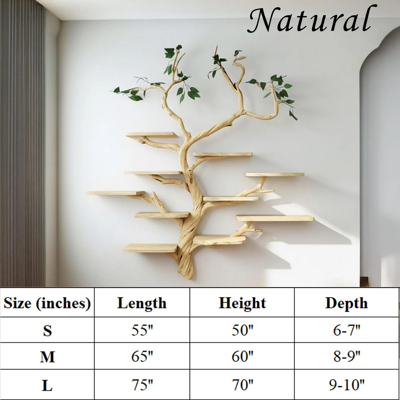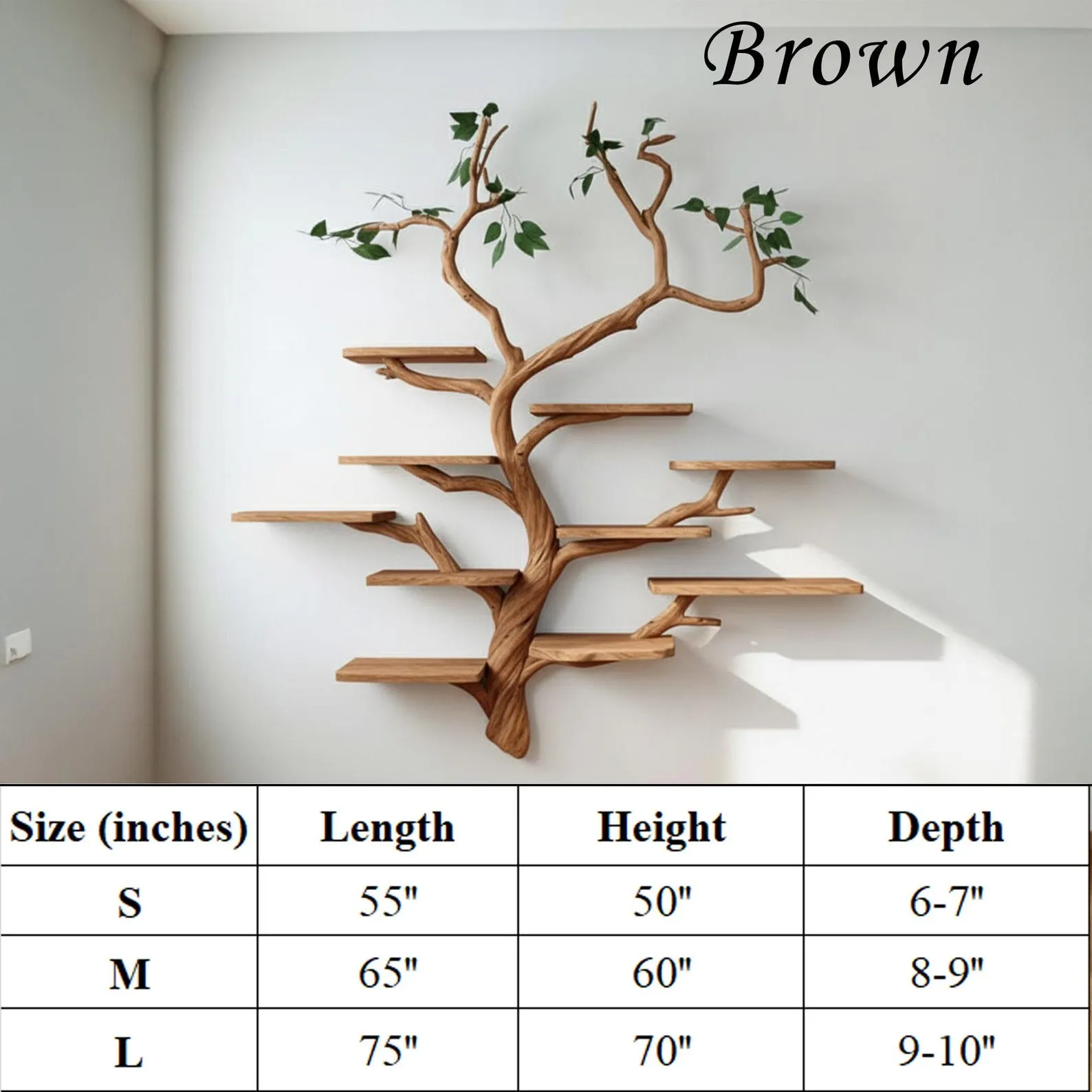 Bring the rustic beauty of nature into your home with this natural wood bookshelf solid wood, handcrafted from genuine driftwood branches collected in rocky mountain regions. Each branch is carefully selected for its strength, natural curves, and unique grain patterns, then gently cleaned, dried, and shaped by skilled artisans. Paired with solid wooden shelves, this tree-shaped wall shelf offers both artistic charm and dependable load capacity. Its organic form transforms a simple storage solution into a statement piece that feels like a living work of art.The design of this rustic tree branch wall shelf made from reclaimed wood is inspired by the silhouette of a real tree, with shelves arranged in an asymmetrical pattern to create a lively, natural look. More than just a functional bookcase, it becomes a focal point in any space, perfect for displaying your favorite books, small potted plants, framed photographs, or unique decorative accents. The combination of raw wood texture with a modern vertical structure makes it a versatile piece, blending seamlessly with rustic, bohemian, or minimalist interiors.Crafted from high-quality driftwood combined with sturdy solid planks, this tree shaped bookshelf is designed for durability, natural termite resistance, and long-lasting beauty. The strong structure keeps it stable, while the smooth, polished finish makes it easy to clean and maintain. Its vertical, space-saving design is ideal for small spaces, apartments, home offices, or cozy reading nooks, allowing you to maximize storage without sacrificing style.Each floating bookshelf wall mount with leaves for rustic home Decorr is made to order, ensuring every piece is completely unique. Throughout the process, we provide photo updates from the raw branch shaping stage to the final finishing touches so you can follow your piece???s journey. Production time is typically 7 to 10 days, with secure worldwide shipping through trusted carriers like DHL and UPS Express. Custom sizing, color, and layout options are available upon request to perfectly fit your space and style.This wall-mounted book display shelf is more than just a place to store your belongings; it???s a handcrafted treasure that brings the warmth of nature indoors. Whether you???re looking for a functional storage solution or an eye-catching art piece, this tree branch bookshelf offers the perfect blend of beauty, strength, and craftsmanship a one-of-a-kind addition that will be cherished for years.