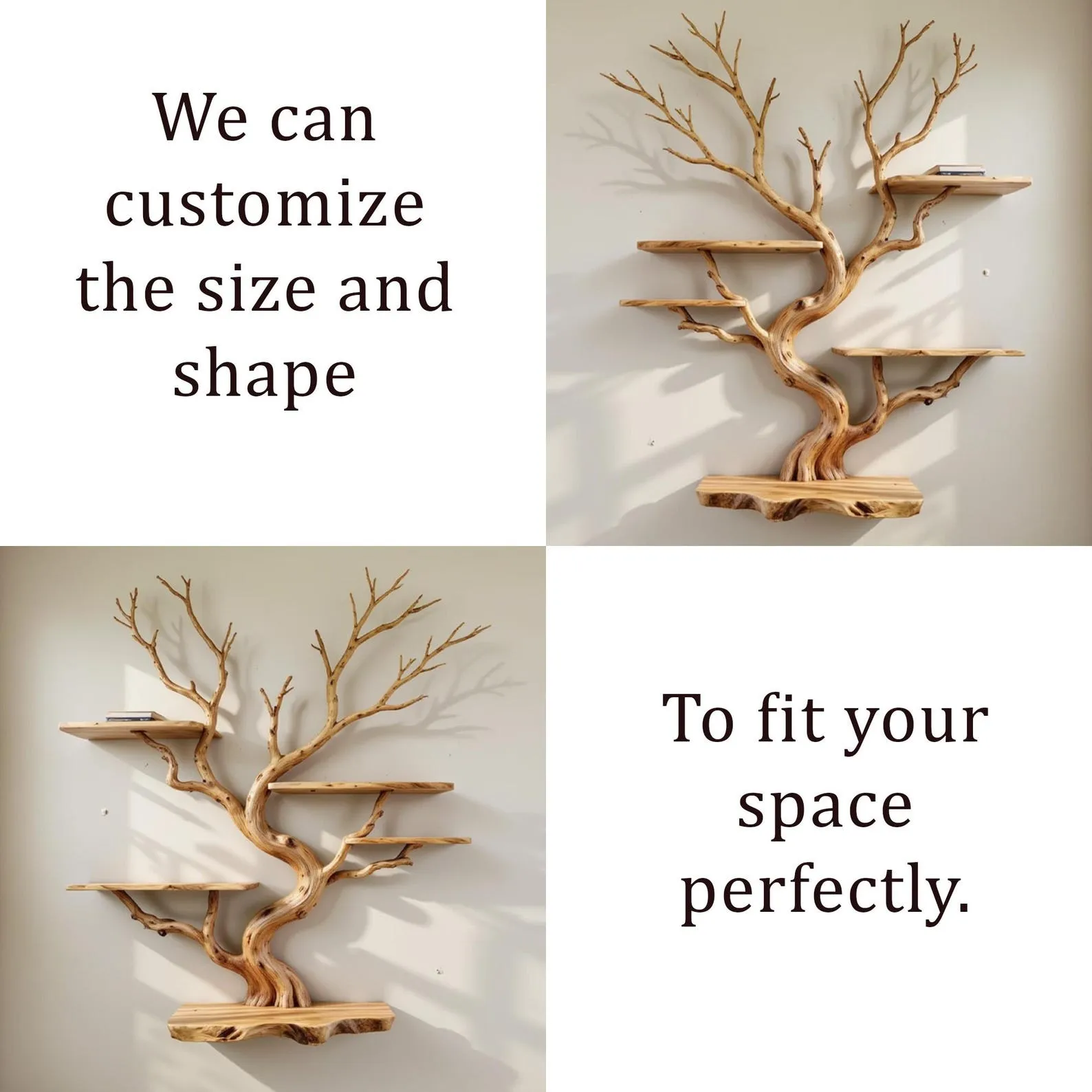 We carefully select driftwood branches from the high mountains of Vietnam to craft natural wood bookshelf like this. Each tree bookshelf wall art is handcarved by skilled artisans, highlighting the natural wood grain and distinctive organic curves. Because of this meticulous craftsmanship, every tree shelf is truly one of a kind, bringing a rustic yet elegant accent to your home Decor.Customizable Size & Shape:We understand that every space is different. That’s why we offer customization options for the size and shape of the live edge shelves, ensuring a perfect fit for your room and style preferences.’Easy Wall Mounting & Assembly:Designed for convenient wall mounting, each part of the shelf is marked with numbers to simplify the assembly process. Whether you’re experienced with DIY projects or prefer a straightforward setup, you’ll find installation hassle-free.Natural Variation:As this tree wood bookshelf for wall is made from natural driftwood, please allow a size variation of 3 to 5 inches. These variations add to the authentic charm and uniqueness of your piece, making it truly special.Approval Before Shipping:We want you to be completely satisfied with your purchase. Before shipping, we will send you detailed images of your specific tree branch bookshelf decor for your review and confirmation. Please stay in touch so we can make any adjustments needed and ensure the final product meets your expectations.This driftwood branch bookshelf is more than just functional storage ‘ it’s a natural work of art that enhances any corner or wall. Perfect for displaying books, plants, or decorative accents, it brings warmth, character, and the beauty of nature into your living space.
