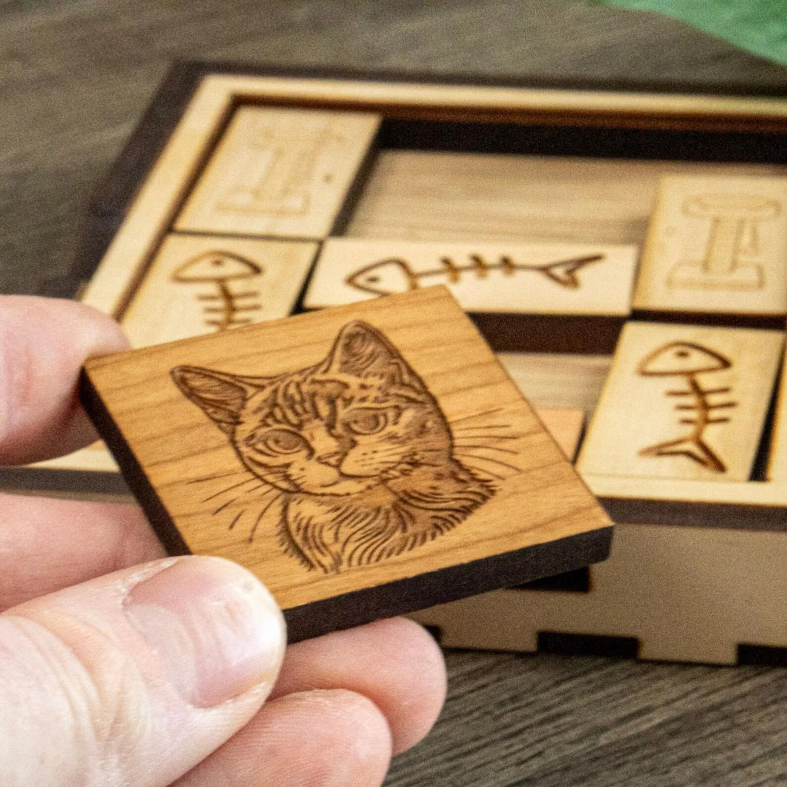 Gift for Cat Lovers ? The Great Cat Escape Puzzle, Handmade Wooden Brain Teaser for Desk or Coffee Table
