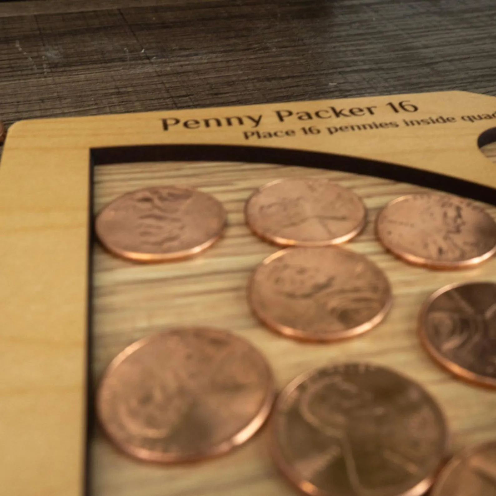 Enhance Your Space with the Penny Packer 16 ? A Unique Desk and Coffee Table PuzzleAdd a touch of creativity and challenge to your desk or coffee table with the Penny Packer 16 Brain Teaser. This handcrafted wooden puzzle is designed to intrigue and entertain. Its goal is simple but challenging: arrange the 16 included pennies into the beautifully crafted wooden grid. It’s the perfect combination of functionality, fun, and style, making it a must-have for puzzle enthusiasts and decor lovers alike.Key Features:Elegant Design: Crafted from premium hardwood, this puzzle doubles as a sophisticated decorative piece for desks and coffee tables.Engaging Challenge: Test your problem-solving skills with a puzzle that?s as fun to solve as it is to display.Compact and Versatile: Measuring 4.5″ x 4.6″, it fits seamlessly into your home or office space.Complete Set: Comes with 16 authentic pennies, making it ready to use out of the box.Perfect Gift Idea: An excellent choice for birthdays, holidays, or as a thoughtful gift for colleagues and friends.Why Choose the Penny Packer 16? Whether you?re looking to spark conversation at your coffee table or add a playful touch to your desk, the Penny Packer 16 is a versatile piece that combines entertainment with decor. It?s great for unwinding during breaks, impressing guests, or gifting to puzzle enthusiasts.Support Small Business Proudly made in the USA by Creative Crafthouse, a family-owned business in Florida dedicated to crafting high-quality, handmade puzzles. Your purchase supports our commitment to quality and creativity.Order Today Bring fun and sophistication to your home or office with the Penny Packer 16. Add it to your cart now and discover the perfect blend of style and challenge.