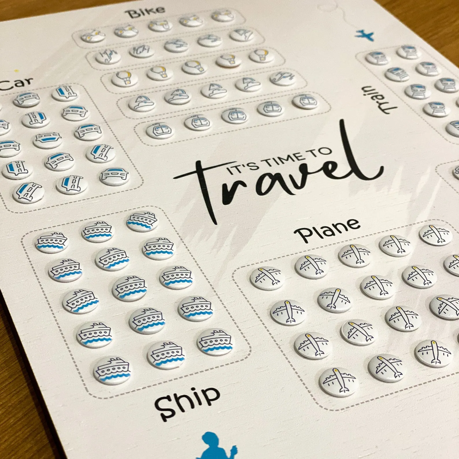 ? (Photo 9) – A set of country flags to mark places visited – 172 country flags on pins attached to the wooden tablet