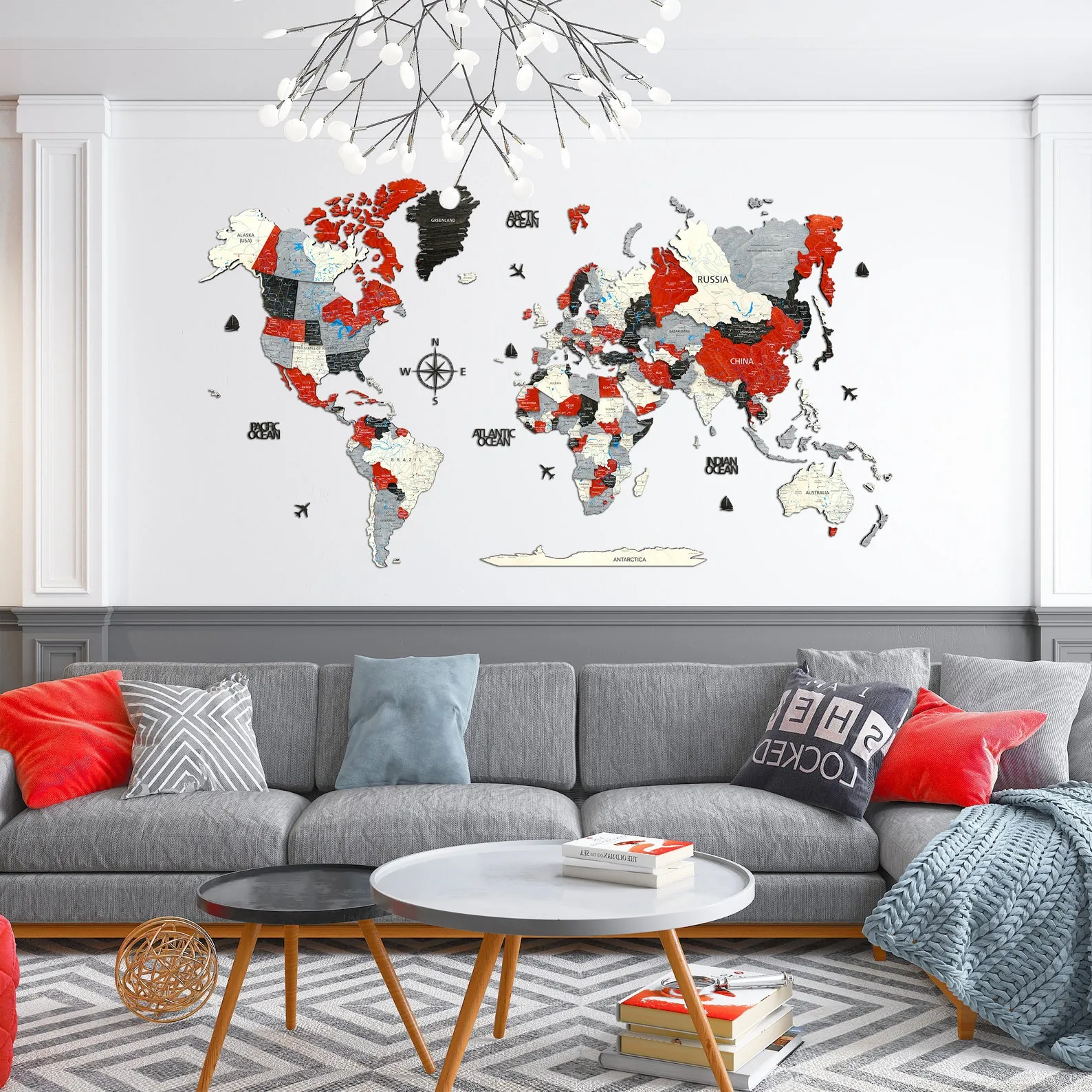 Handcrafted Wooden World Map: Travel Wall Decor, Push Pin Map