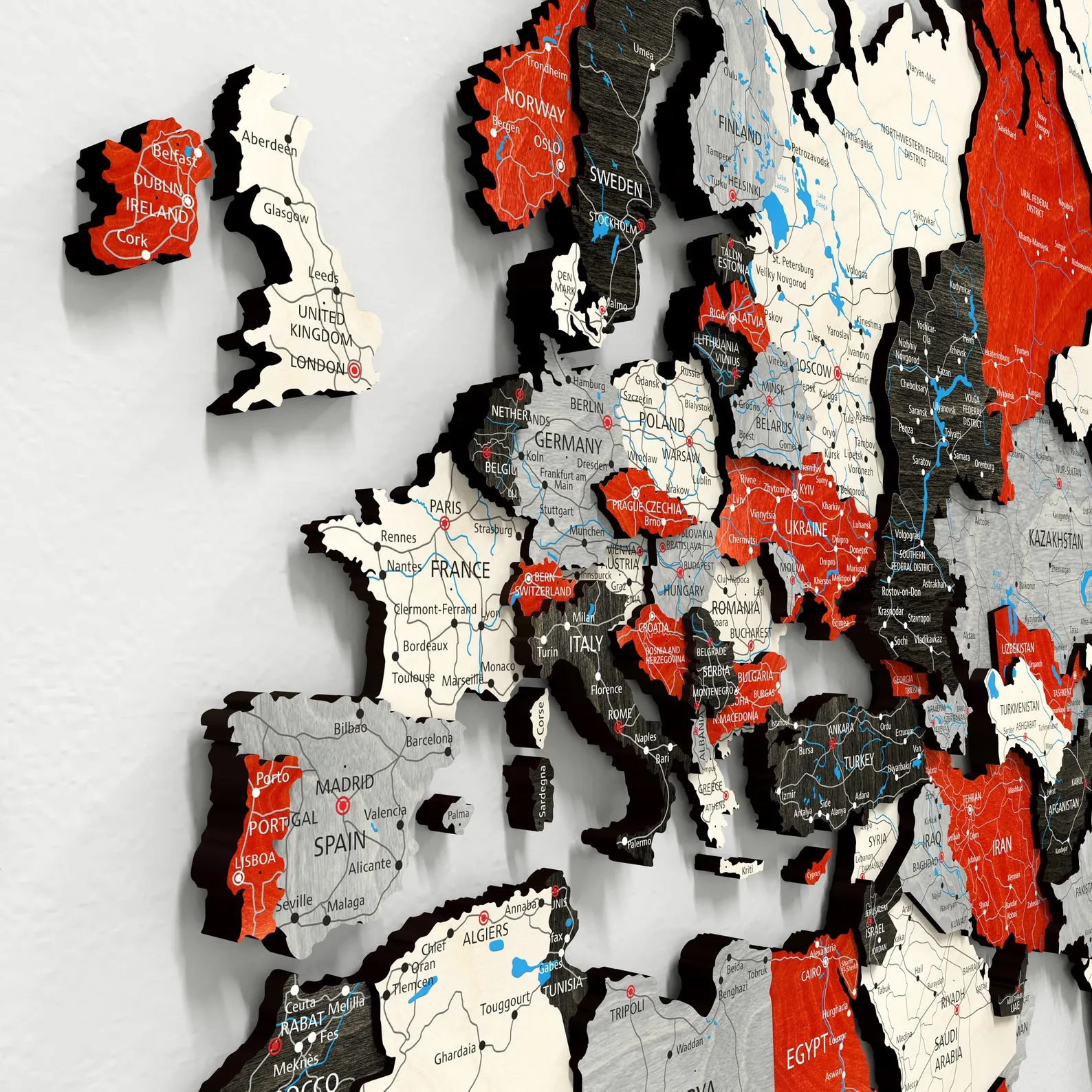 ? Features of the world map: a hidden base under the map creating a floating effect on the wall
