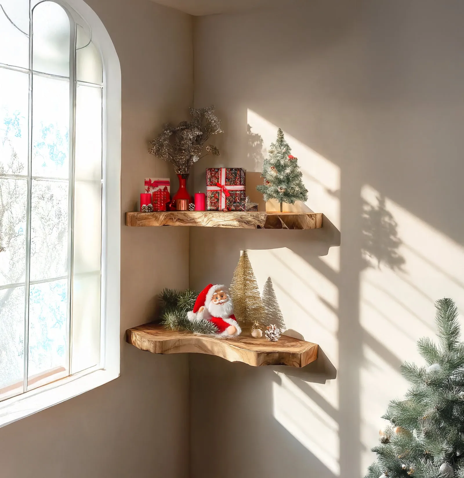Handmade Christmas Floating Shelf – Live Edge Wooden Bookshelf & Décor Gift