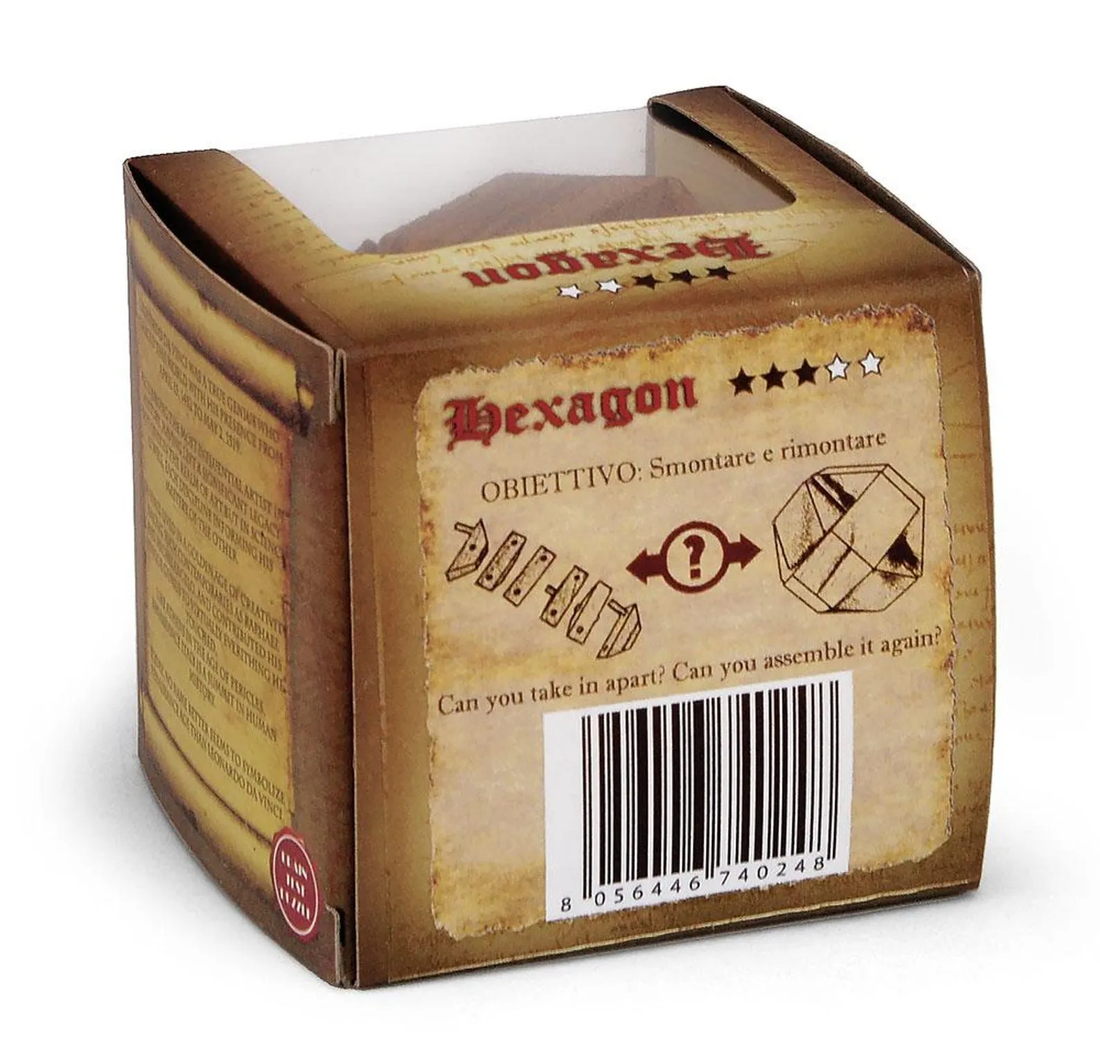 Hexagon – 3D Wooden Brain Teaser – Difficulty 3/6 Difficult – Leonardo da Vinci Collection
