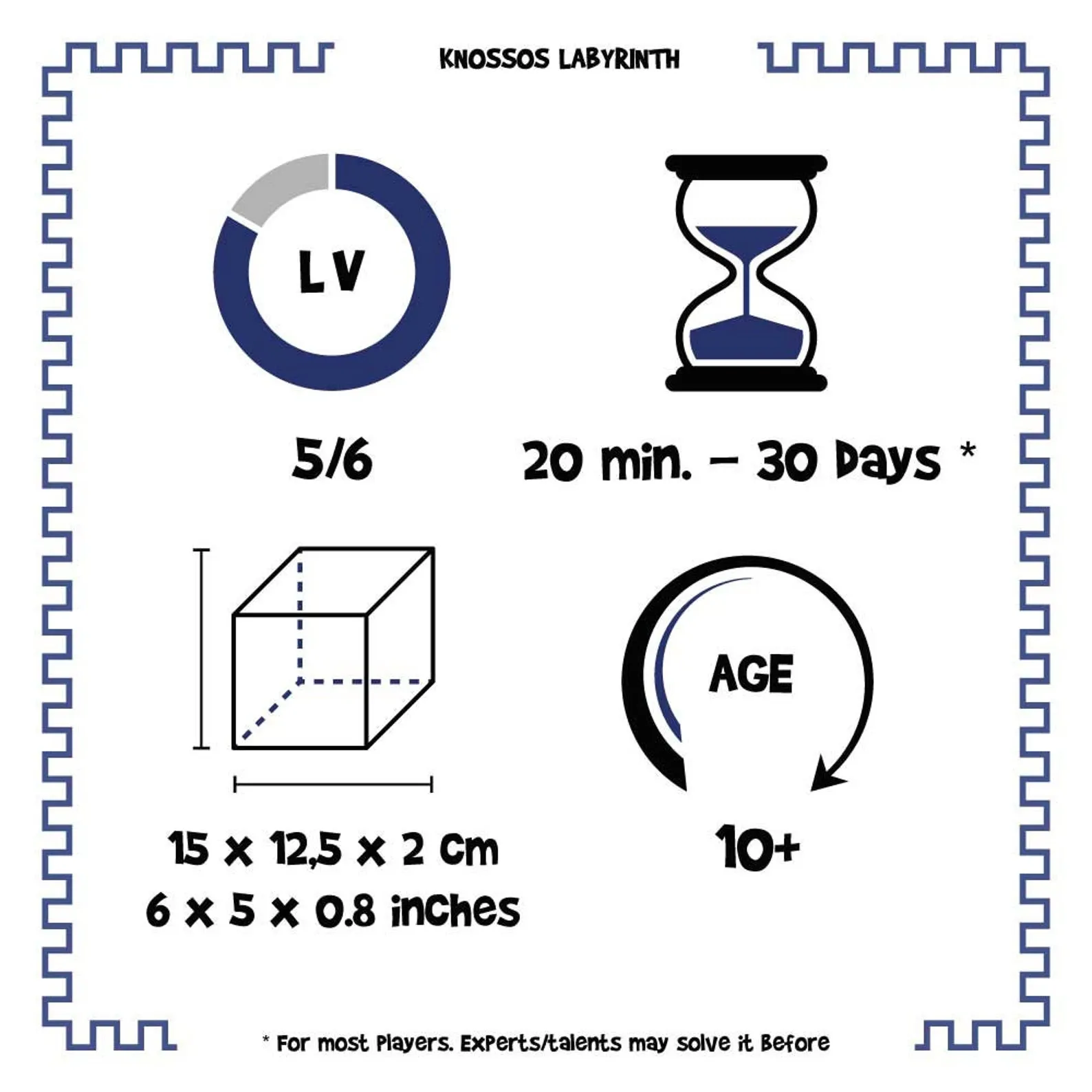 Loose yourself in the legendary labyrinth on the island of Crete!Streets, rooms and galleries that are said to have locked up the terrible Minotaur. Will you be able to do as Theseus and find the way out?CHALLENGE: Bring the marble from the STAR point to the FINISH one and try to come backAn incredible two-levels labyrinth: pay attention not to get lost!Difficulty: 5/6 INCREDIBLE. Medium resolution time: 20 minutes – 30 days.Dimensions: 15 x 12,5 x 2 cm / 6 x 5 x 0,8 inchesMade in natural wood: birch plywood and plexiglass