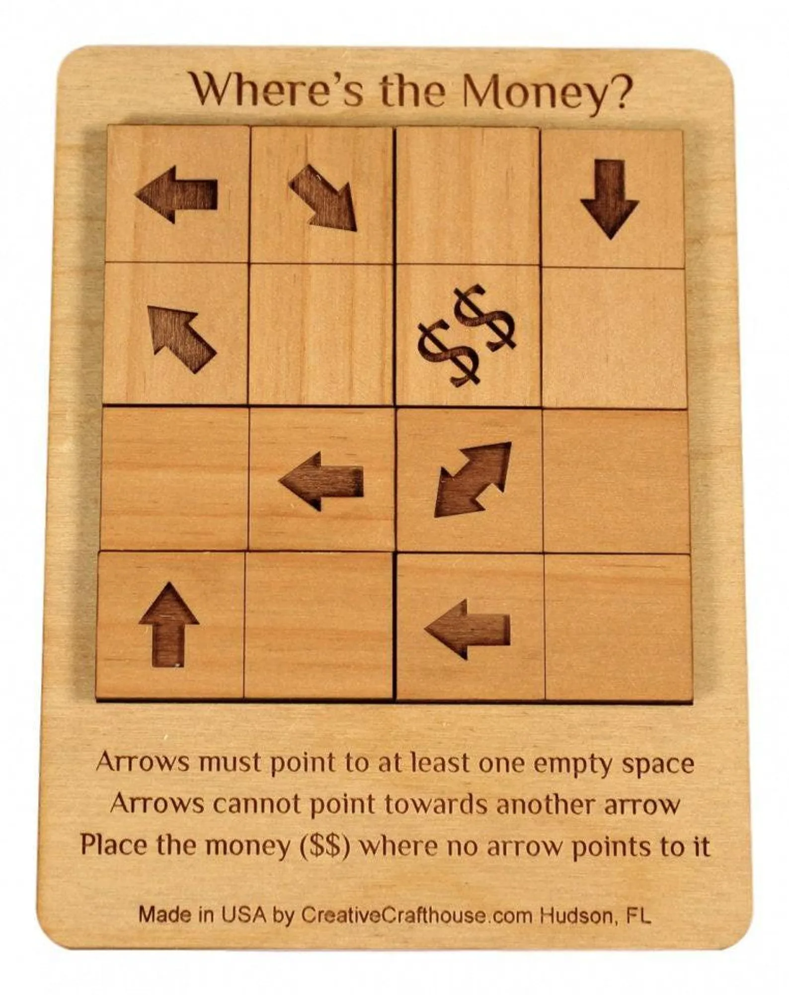 Puzzle Gift - Where's the Money - Wooden Brain Teaser Puzzle - Gift for Her