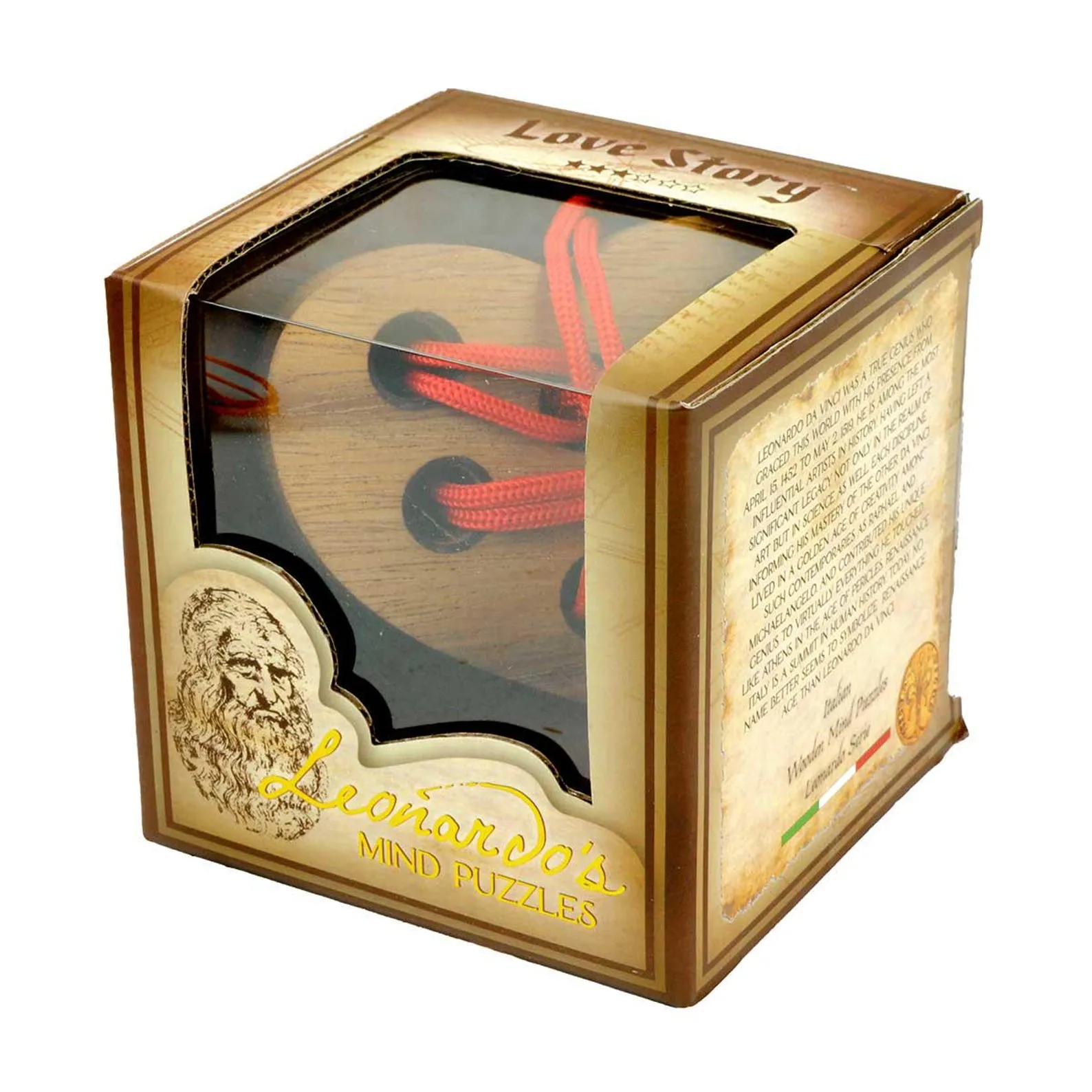 Great love stories are tied by unbreakable strings … and this brain teasers is no exception!Running out of ideas for a Valentine’s Day gift? Love Story is for you!CHALLENGE: free the sphere blocked by the string from the heartDifficulty: 3/6 HARD. Average solution time: 20 minutes – 1 weekGame dimensions: 6 x 9 x 2 cm / 2.3 x 3.5 x 0.8 inchesPACKAGED IN THE LEONARDO DA VINCI SERIES BOX 10 x 10 x 10 cm / 4 x 4 x 4 inchesLEONARDO SERIES: a new series of LOGICA PUZZLES puzzles that groups together the large classic 3D cubes of large sizes. The puzzles are made of dark Teak wood and packaged in an original box with Leonardo drawingsThe color of the string is available in the following colors: blue, red and yellow. The color is given completely randomly and there is no way to get the desired color.