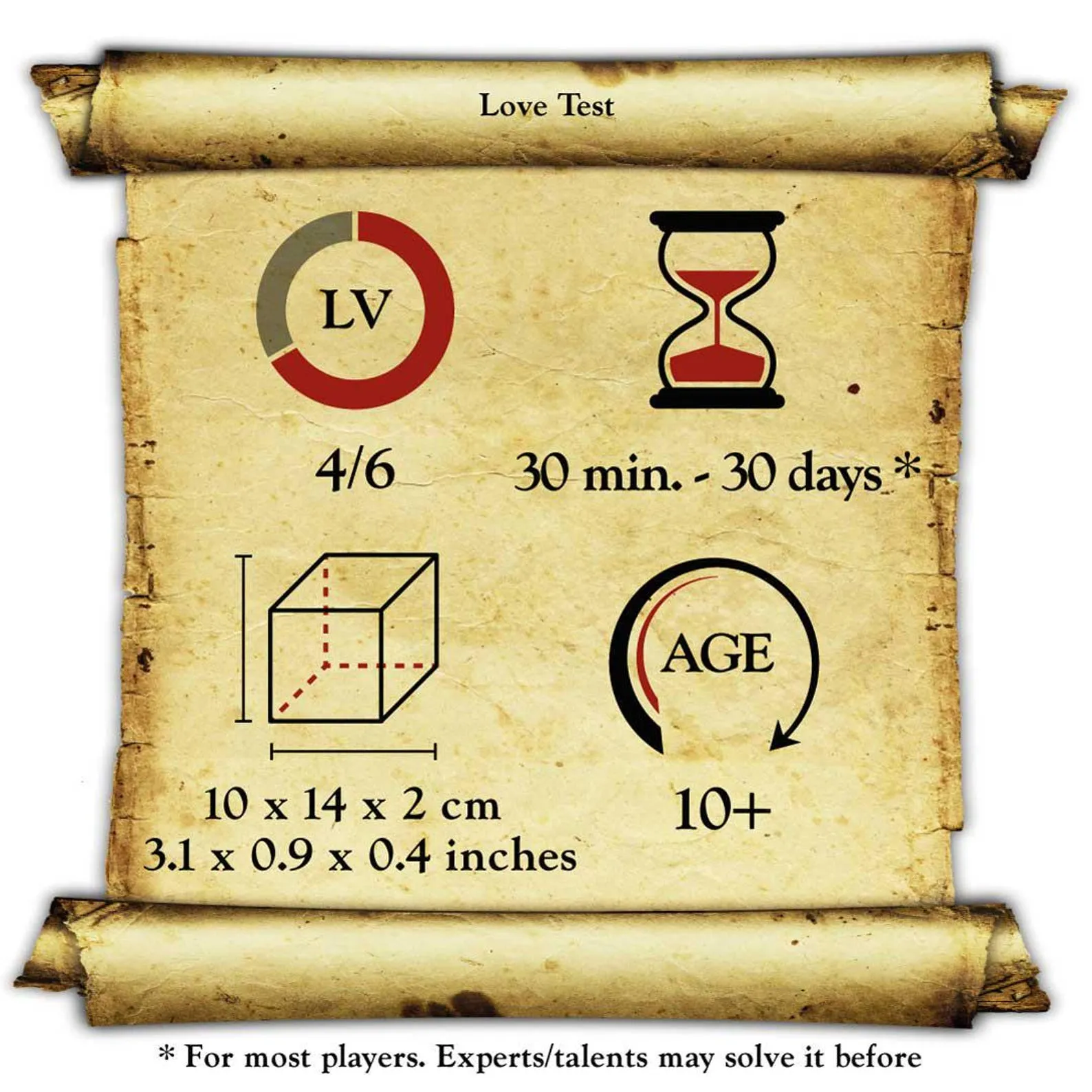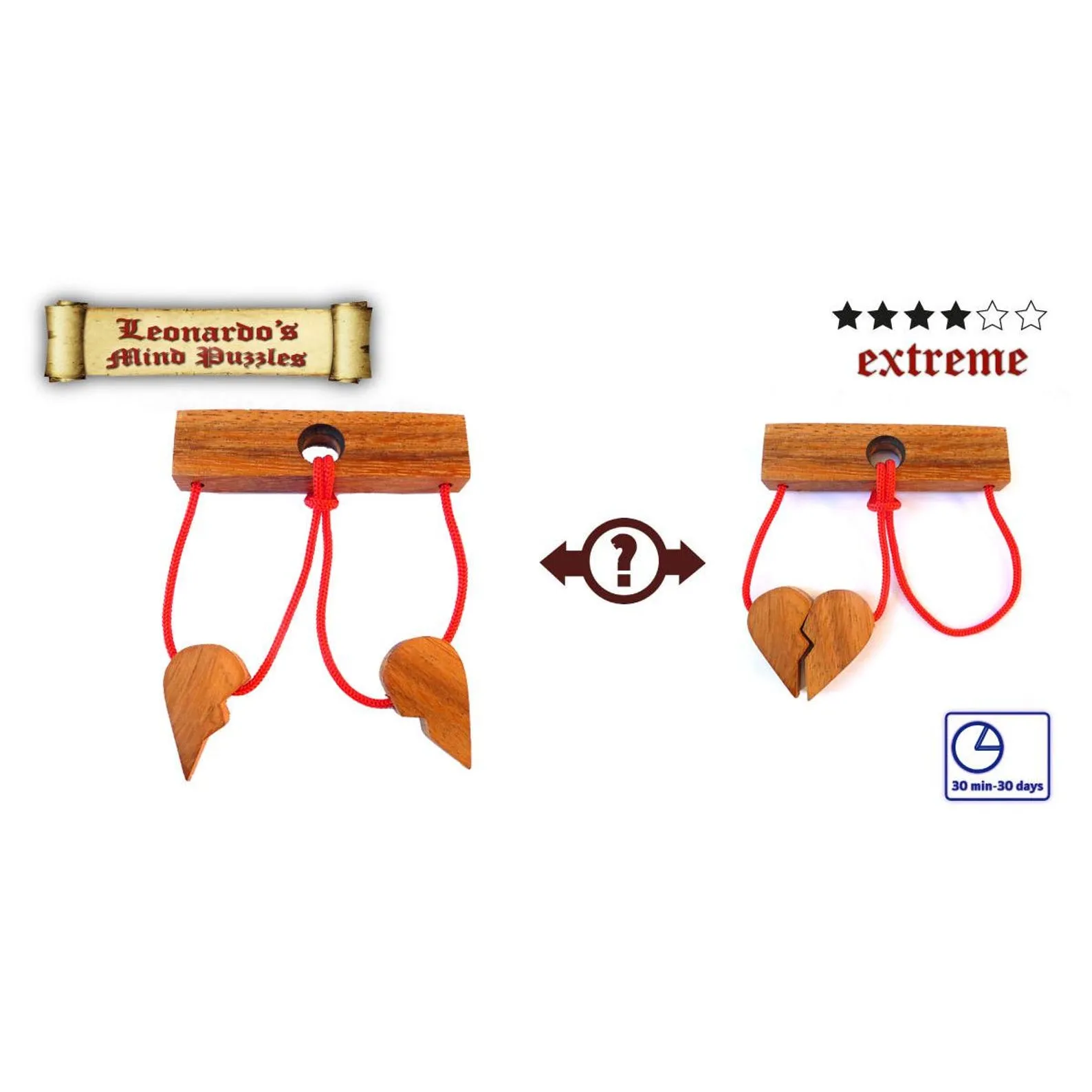 Love Test – Wooden Brain Teaser with Ropes – Difficulty 4/6 Extreme – Leonardo da Vinci Collection