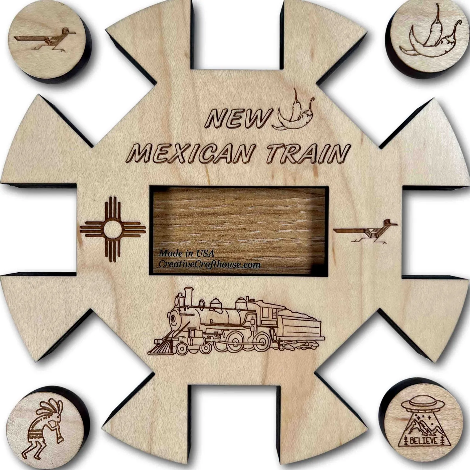Mexican Train New Mexico Edition Hub and Tokens Wooden Domino Game – Family Game