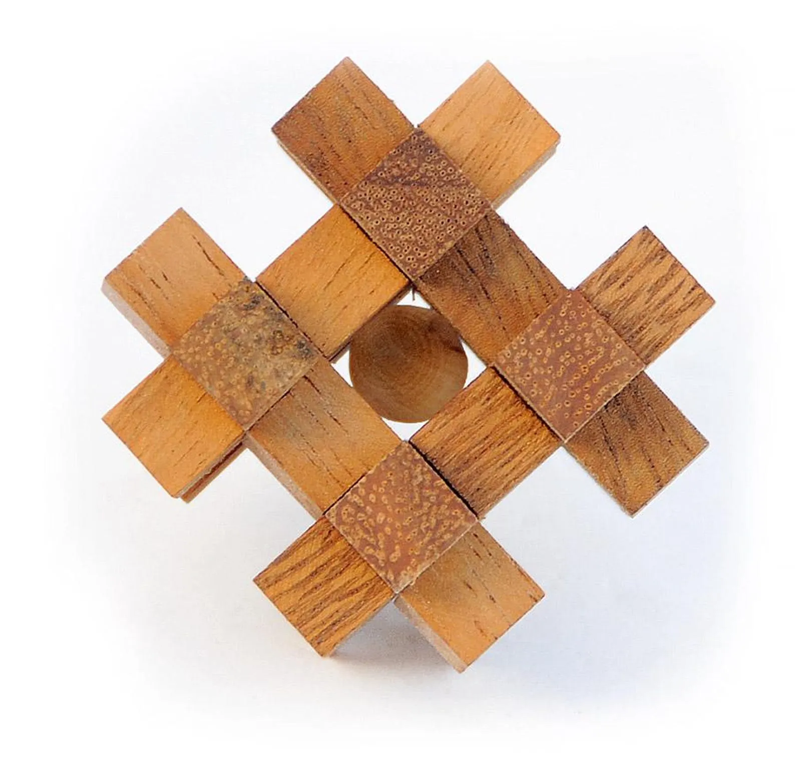CHALLENGE: Disassemble and reassemble the cube puzzle made of 12 tricky pieces + 1 little ballA great classic of the family of cubes. Try to free the little ball if you can!Difficulty: DIFFICULT 3/6. Level medium resolution time: 10 min – 7 daysGame size: 5 x 5 x 5 cm / 2 x 2 x 2 inchesHandmade in ThailandPACKAGED IN A BOX LEONARDO COLLECTION: 7 x 7 x 7 cm / 2.75 x 2.75 x 2.75 inches.