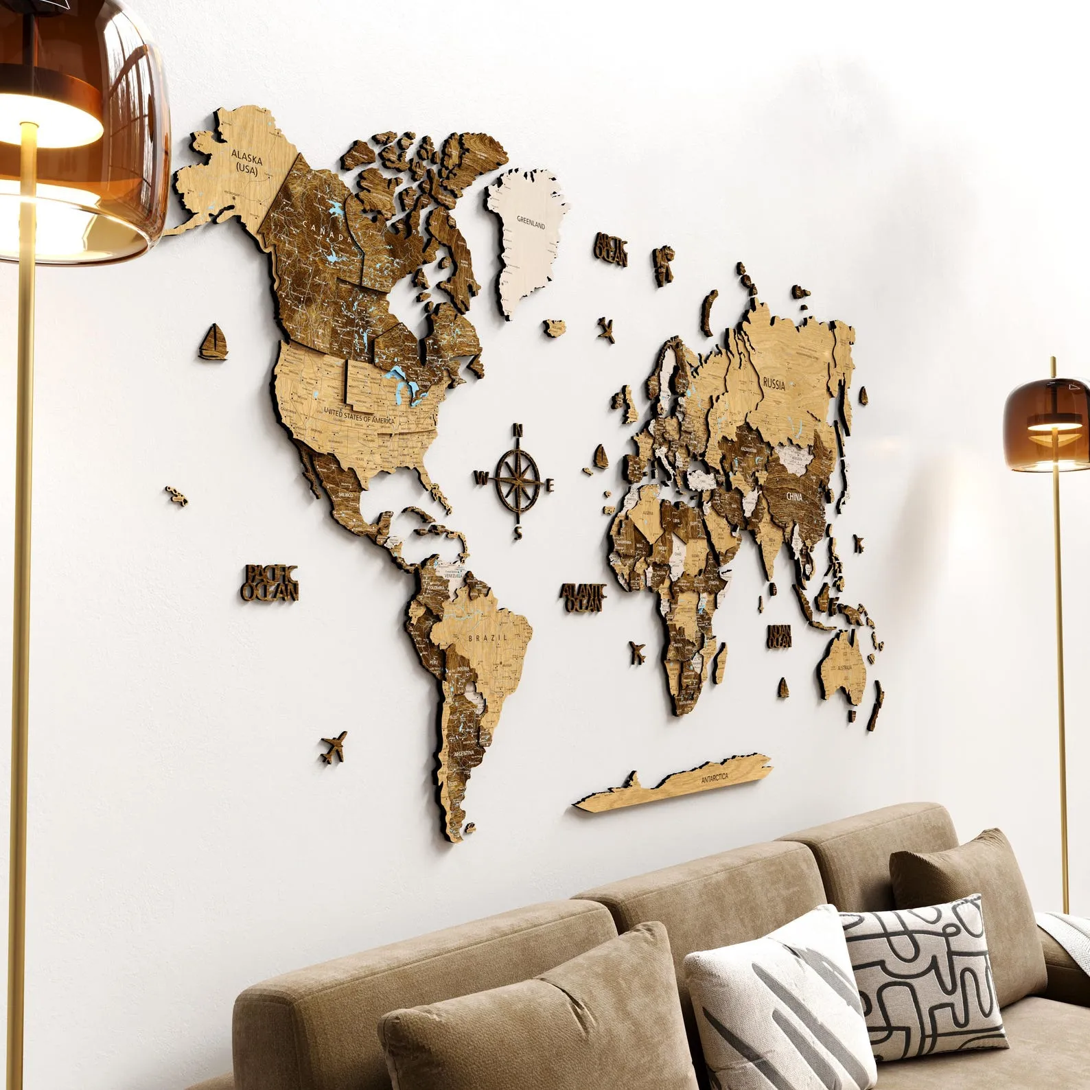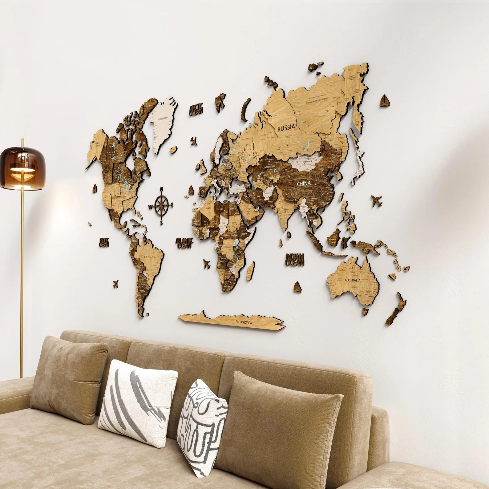 Discover the perfect blend of design and meaning with this 3D Wooden World Map Wall Art ? a stunning personalized map for travel lovers, ideal as anniversary gifts, couples travel gift, or housewarming gift. Use as a world map push pin tracker or Christmas wall decor. A beautiful wooden wall decor piece and large wall map that transforms any space.