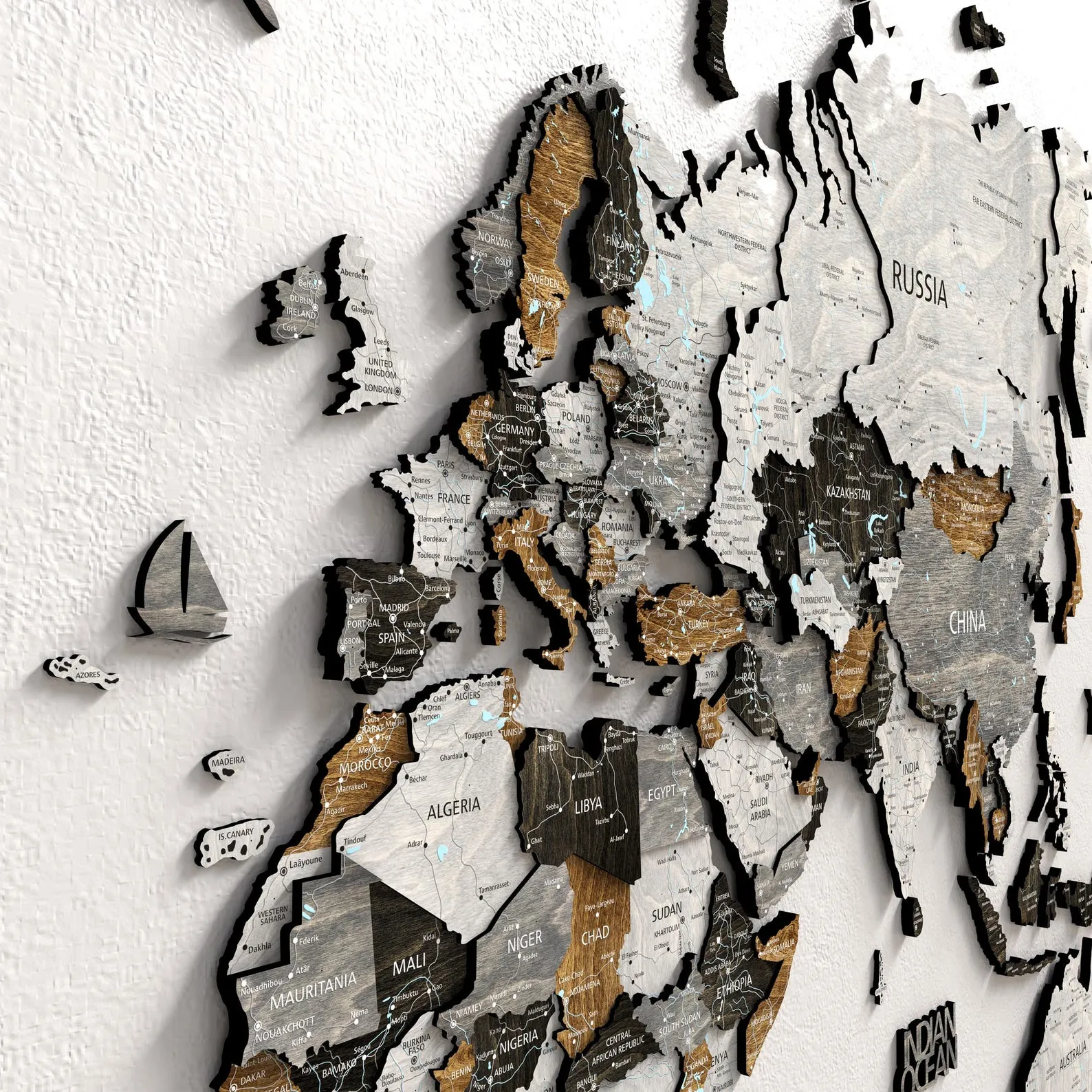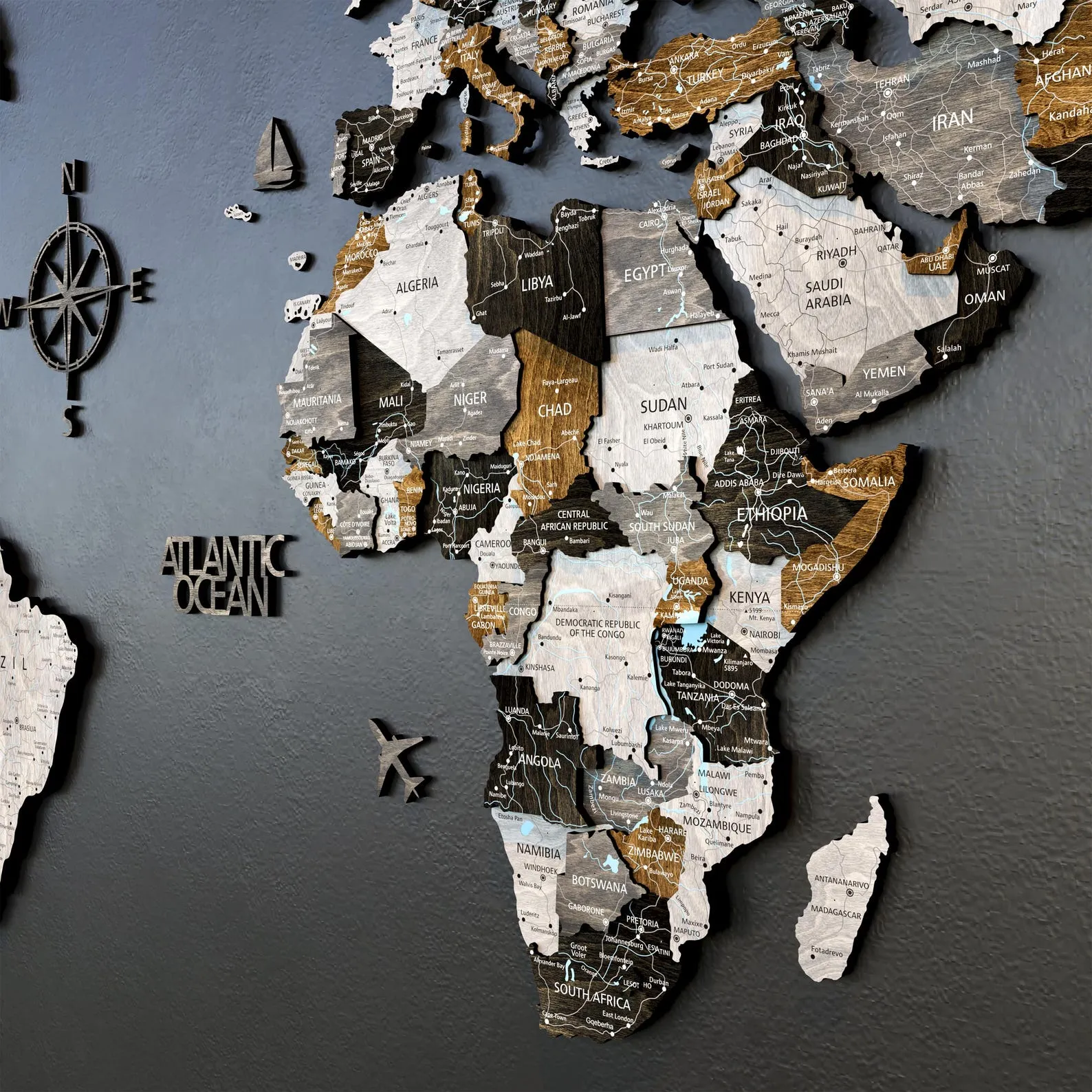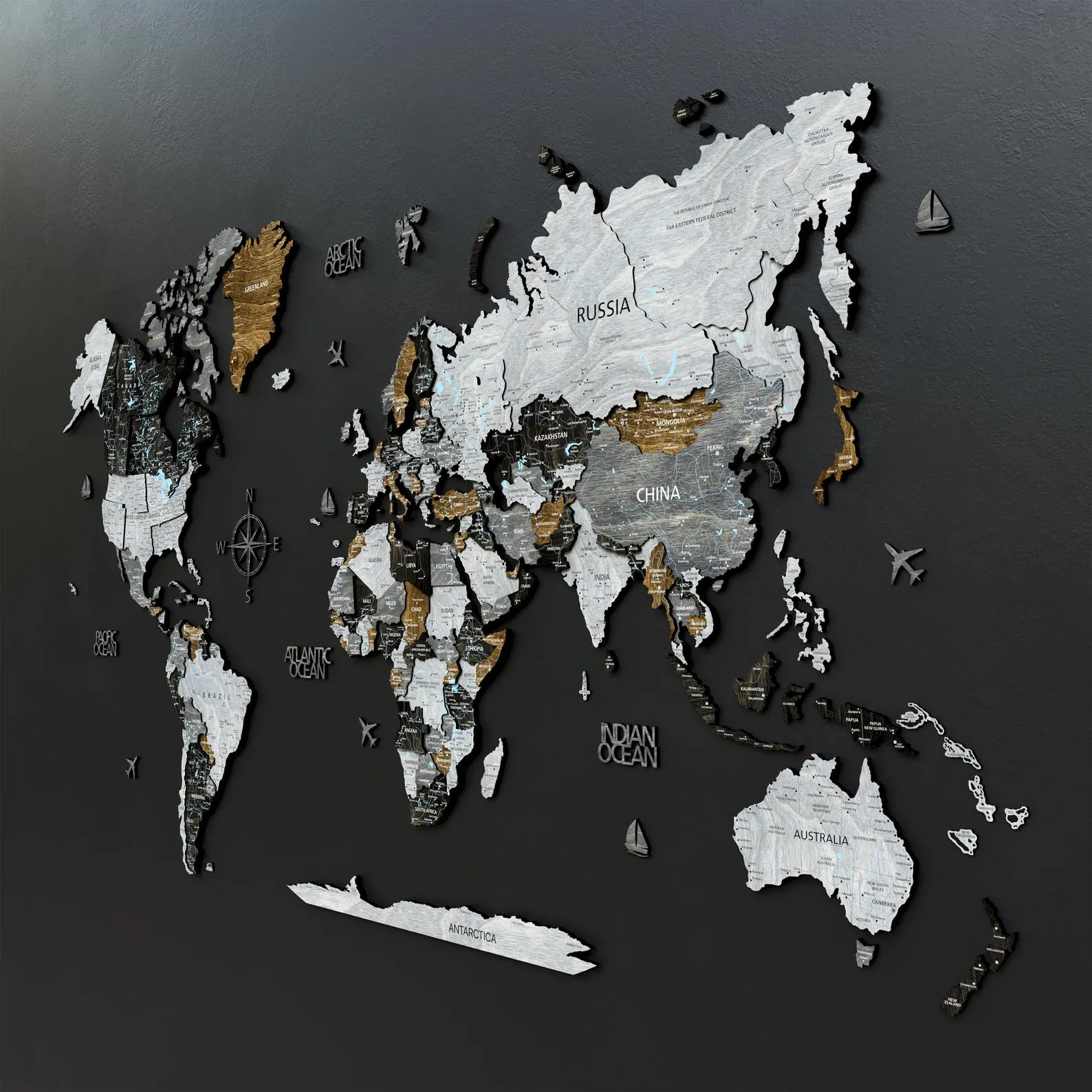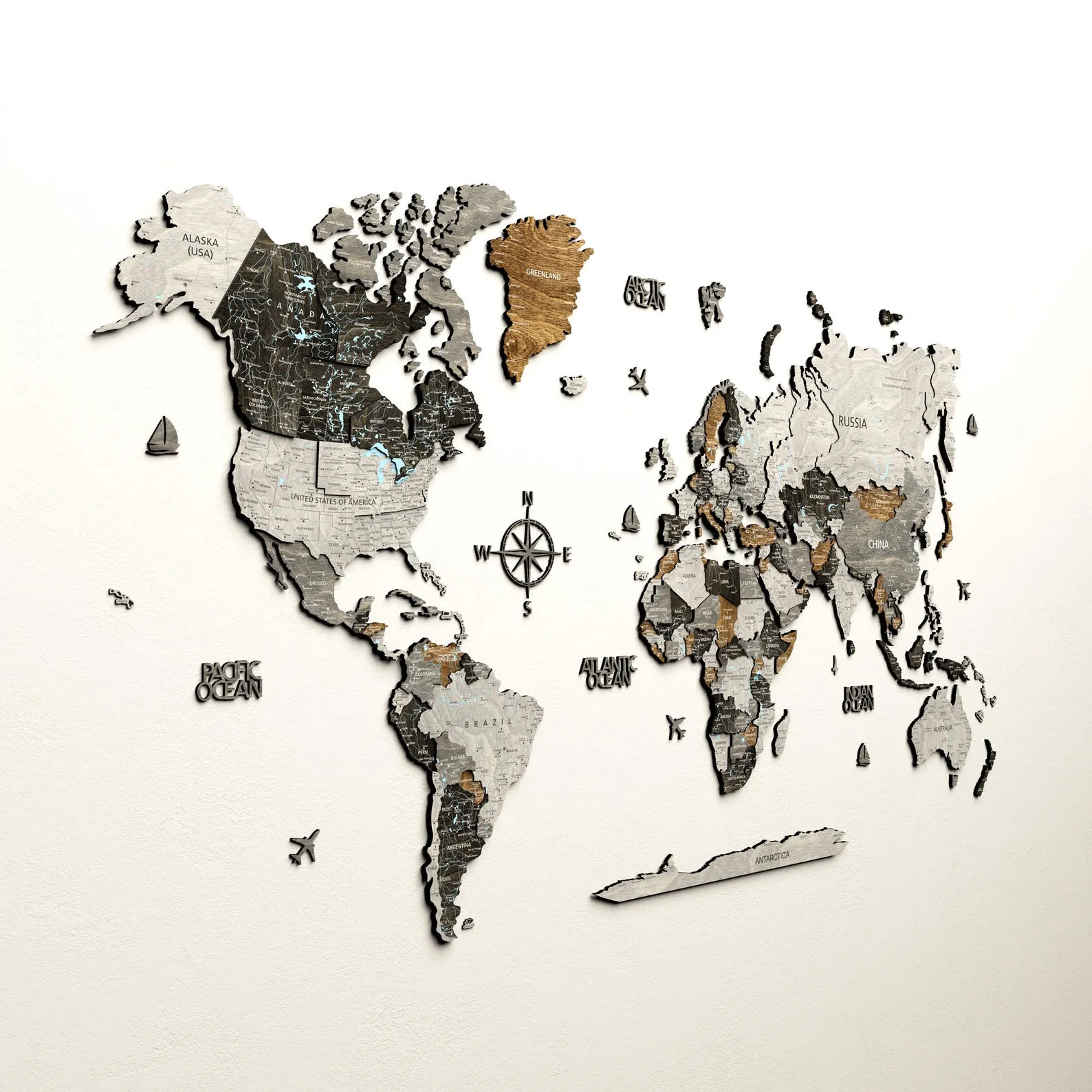 Looking for a truly meaningful holiday gift? Our 3D Wood World Map combines adventure, design, and craftsmanship in one unforgettable piece. Crafted from four elegant wood tones ? light grey, dark grey, brown, and black (ebony) ? this map brings a bold, loft-style feel to any space.