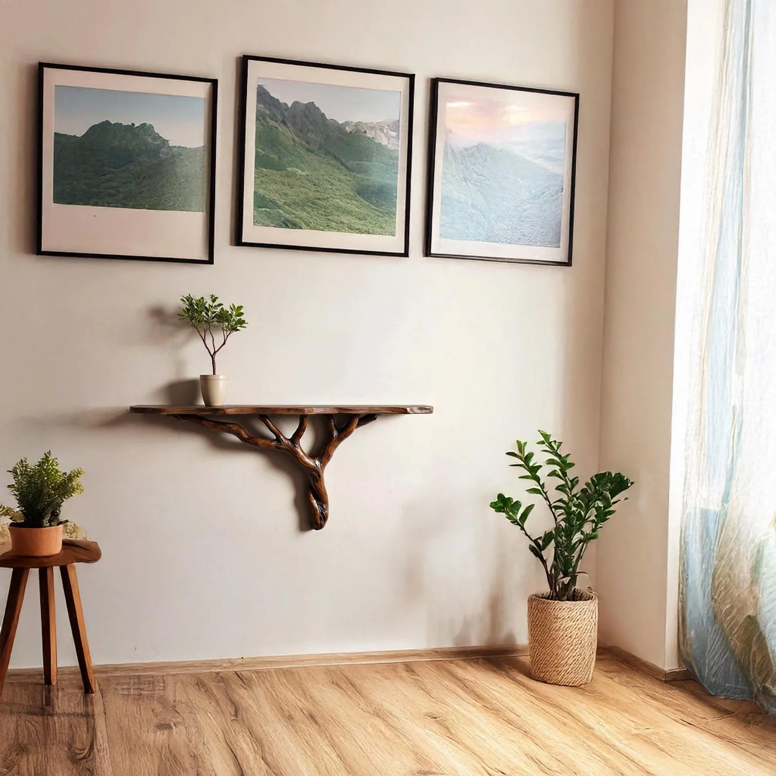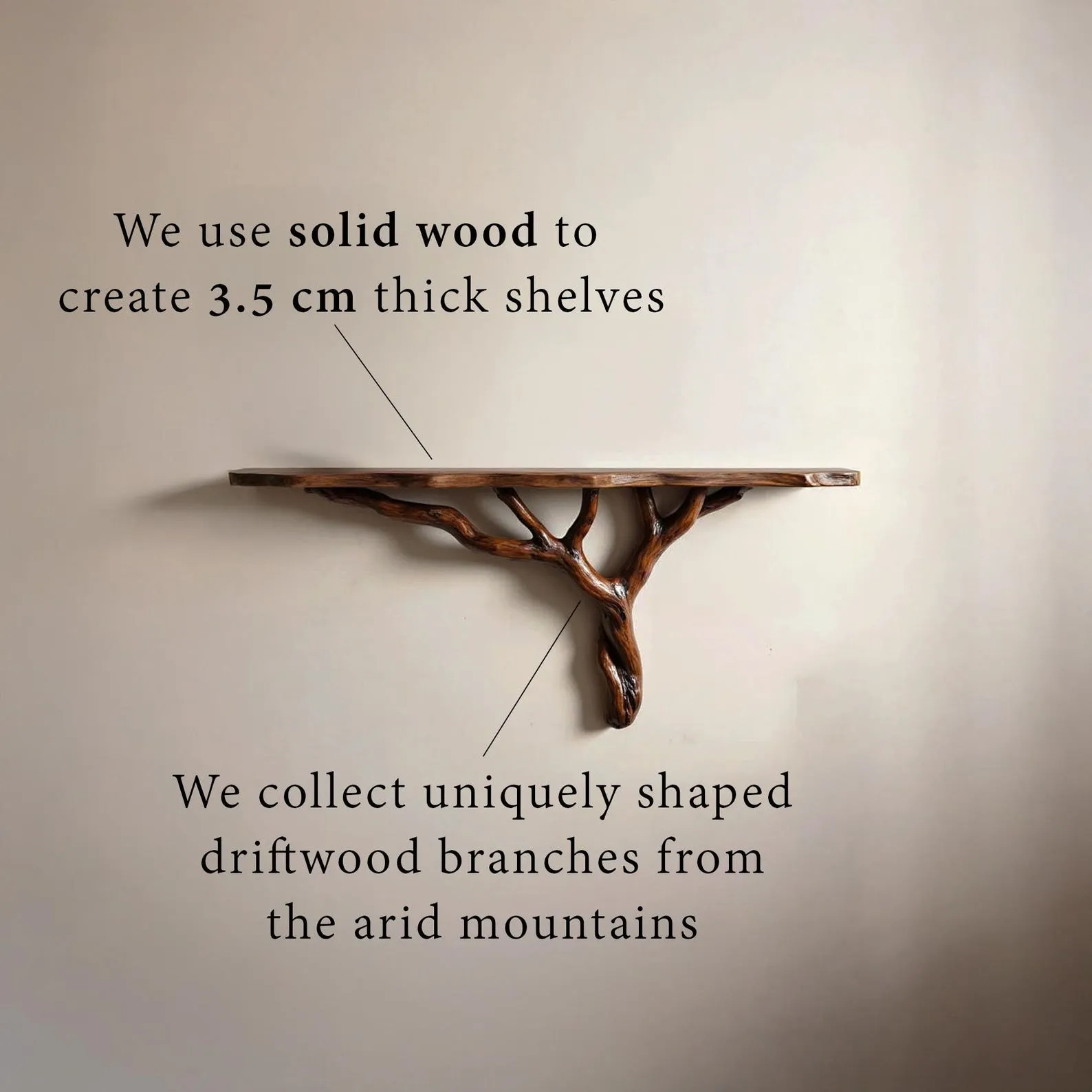 Natural driftwood shelf custom floating shelf rustic console table solidwood bookshelf wall mount unique tree bracnh bookshelves decor