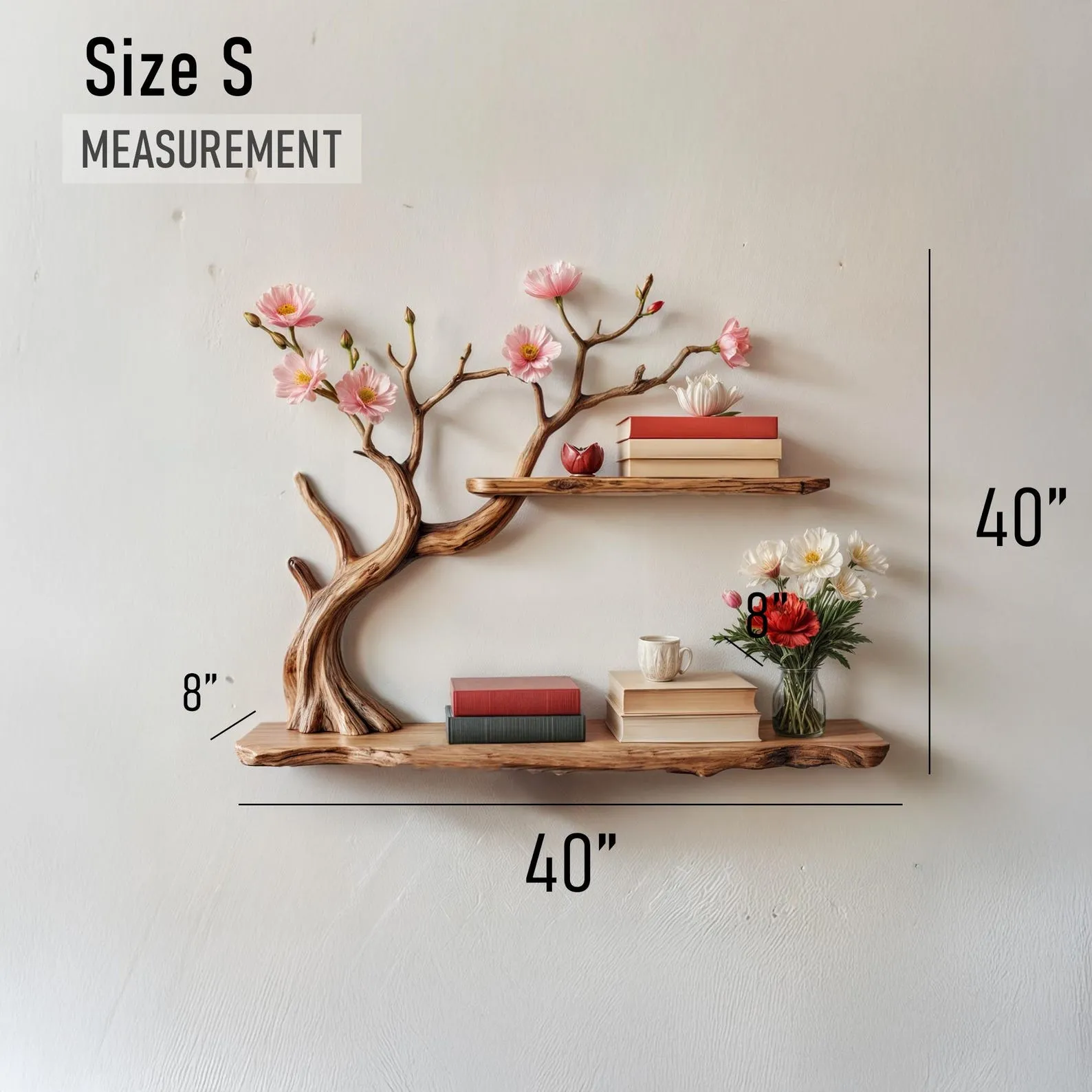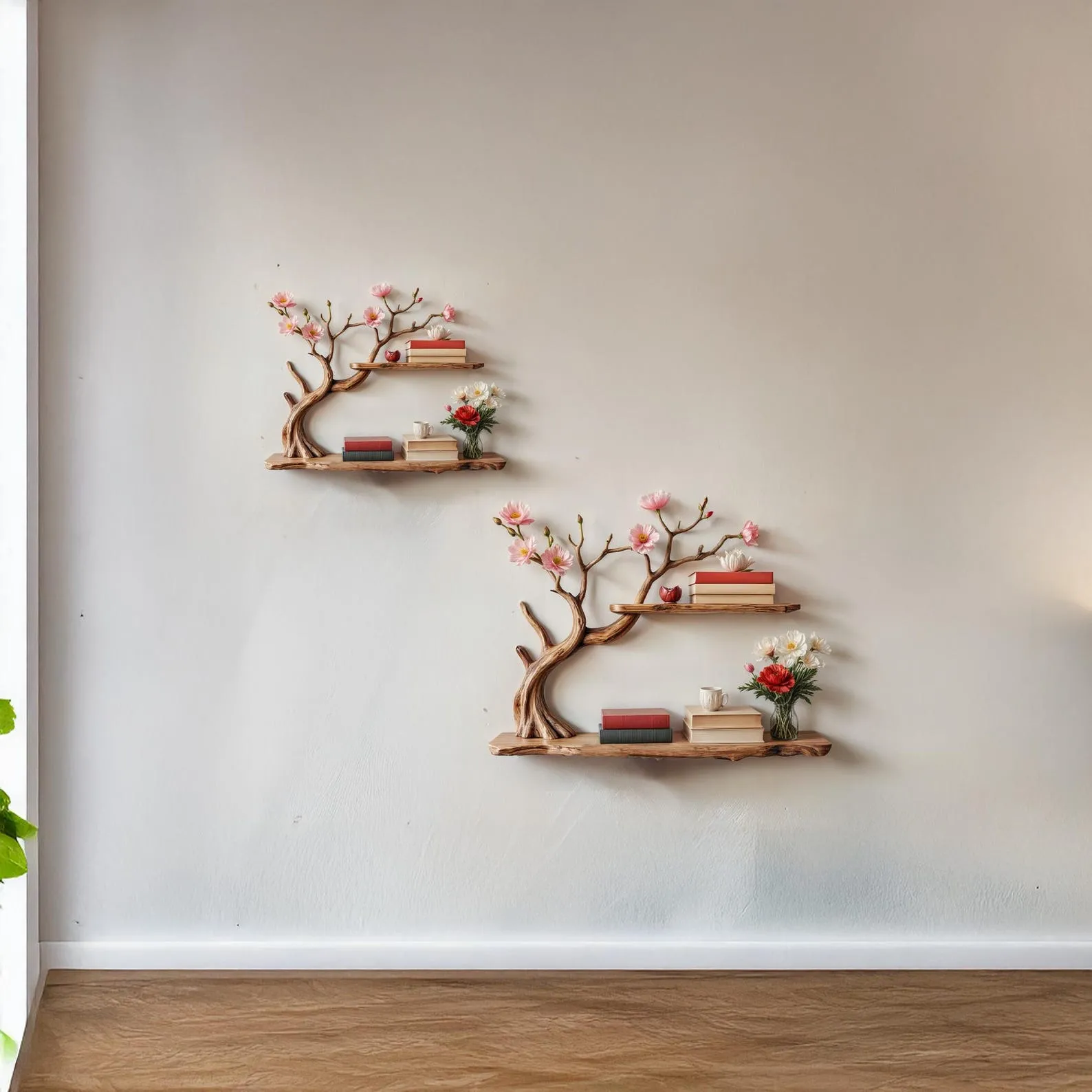 Natural driftwood shelf handcrafted tree bookshelf wall mount rustic solid wood bookcase for entryway space decor