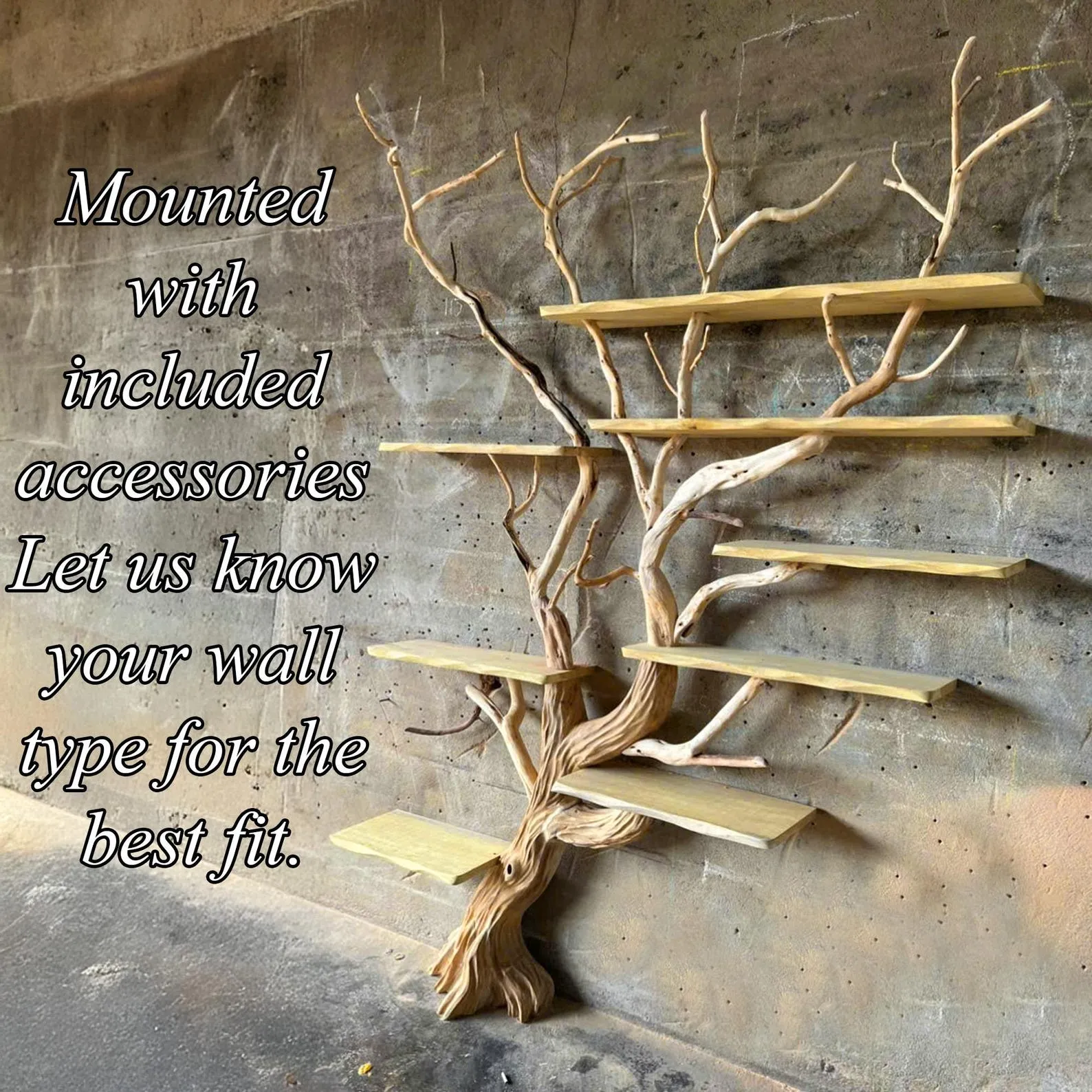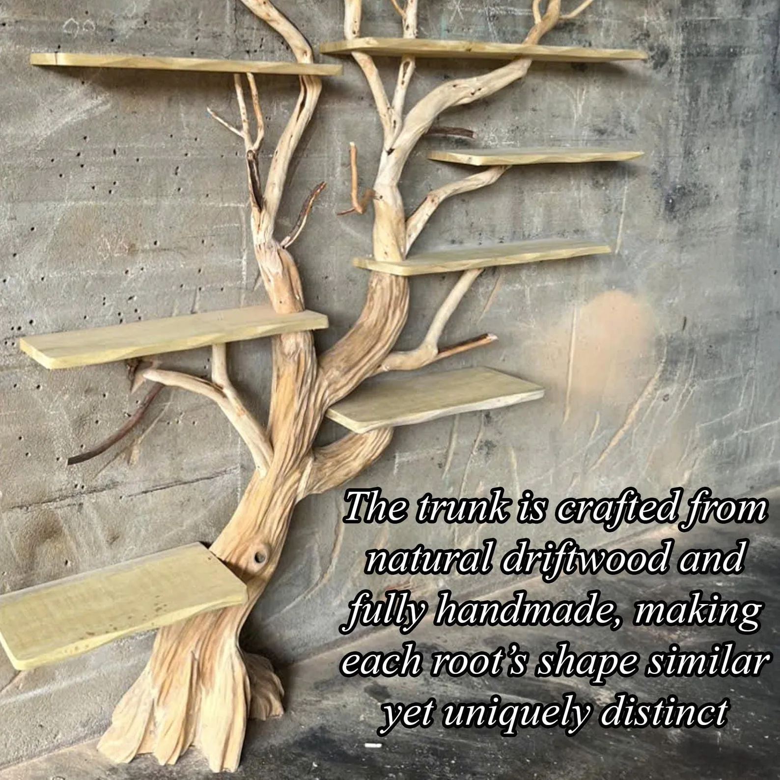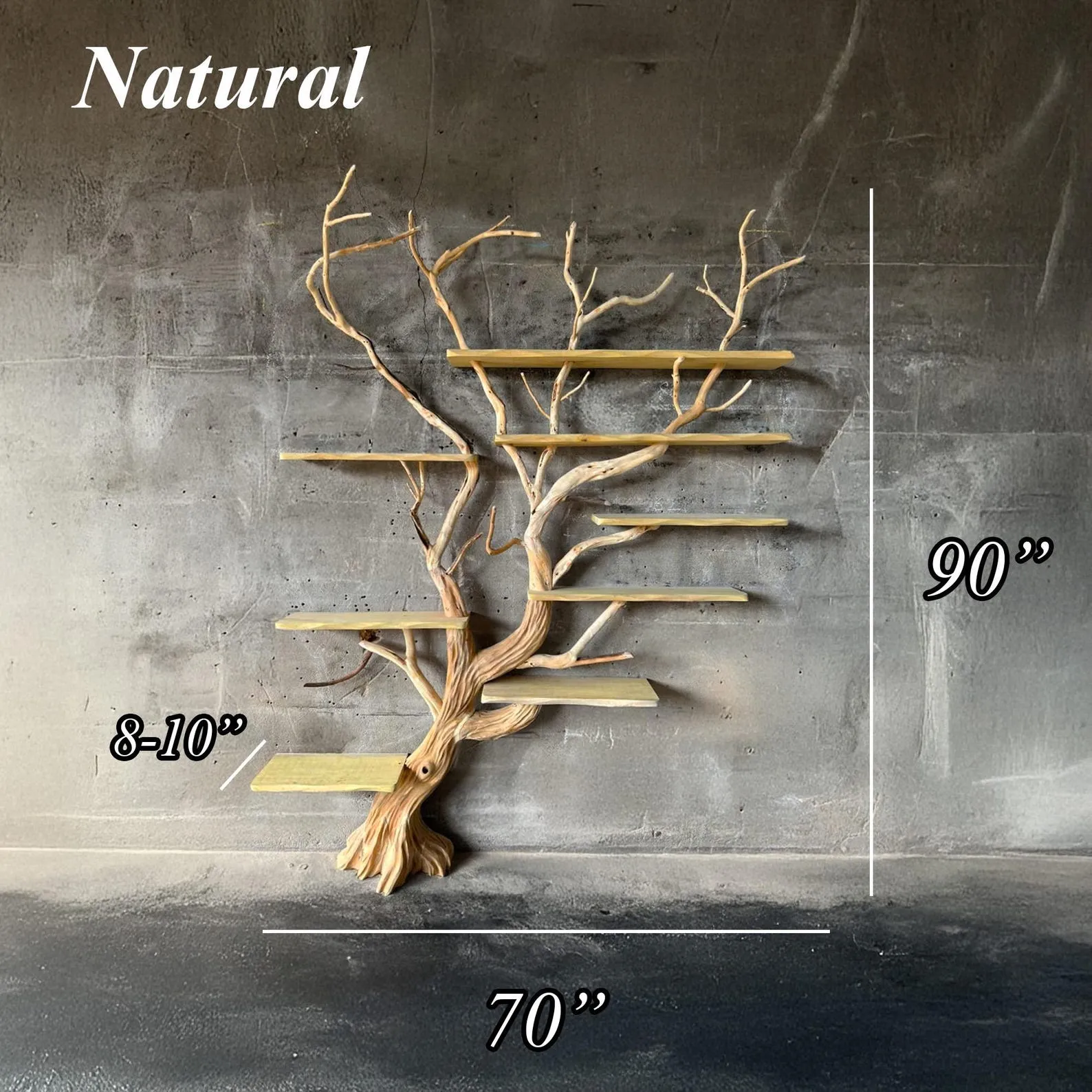 Antique shelving unit crafted from solid wood, this tree book shelf seamlessly combines practical storage with the raw beauty of nature by incorporating real tree branches into its design. The unique fusion of wood warmth and natural aesthetics creates an organic piece of furniture that adds rustic charm to any living space.The sturdy construction ensures both functionality and longevity, while the integration of real tree branches adds an authentic touch, enhancing the overall visual appeal with natural textures and variations in the wood.Made from high-quality wood, the shelves provide ample space for organizing books and displaying decorative items. The incorporation of natural branches as part of the support structure not only reinforces the shelving but also brings a touch of the outdoors inside.Ideal for those who appreciate the beauty of natural materials, this wooden bookshelf with natural branches effortlessly blends with both modern and rustic interior styles. It not only serves as a functional storage solution but also adds a unique and earthy charm to home decor.? Please allow for a 1-3 inch variance due to manual measurements.? For custom adjustments to shelf dimensions or tree branch design, feel free to contact us; we are ready to design it to seamlessly fit into your living space.? Please see assembly instructions here: https://www.youtube.com/watch?v=aQ5QKIyKk8gWe take pride in serving you with dedication and care ????Please see more similar unique Tree Branch Coat Rack here:www.etsy.com/shop/BonsaiHandcraft?ref=seller-platform-mcnav?ion_id=54460592