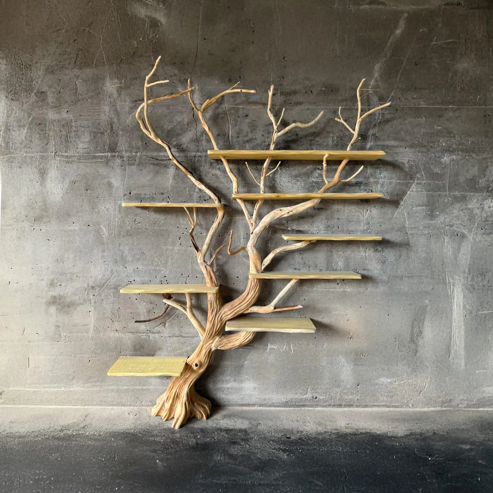 Tree branch bookshelf natural driftwood shelf solid wood bookcase wall mount bookshelves