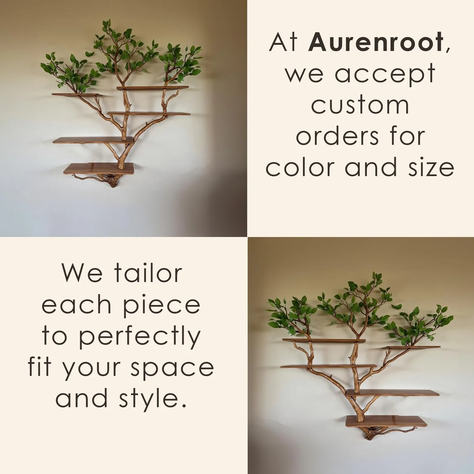 Aurenroot made this natural wood bookshelf from handcarved solid wood, with the branch crafted from natural driftwood branch and the shelves are made from natural solid wood. This natural wood bookshelf is a stunning example of handmade furniture, designed to bring the beauty of nature into your home.Each piece is meticulously handmade, ensuring no two floating bookshelves are exactly the same every tree branch shelving unit features its own unique natural characteristics.After your purchase, please check your email and messages, as we may send a photo of your custom piece before shipping to ensure it meets your expectations.We offer customizable sizes and colors, so just share your idea with us, and we’ll bring it to life. Need help selecting the right accessories for your wall type? Message us, and we’ll guide you through the options.Looking forward to serving you, we cherish the opportunity to create something as unique and special as your home.