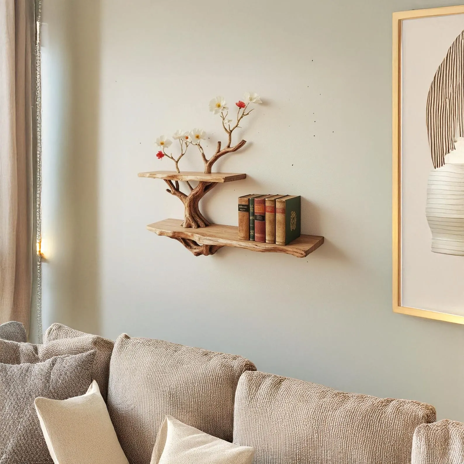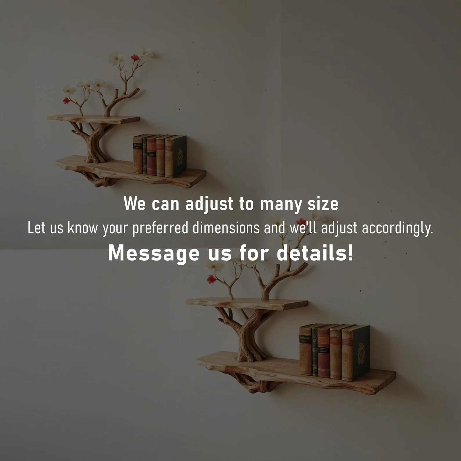 Bring the beauty of nature into your living space with this unique handmade driftwood shelf! ?????? Unique design: The driftwood shelf is meticulously carved, preserving the natural shape of the tree branches, creating an appearance like a work of art.?? Natural material: Using 100% real driftwood, durable and rustic, suitable for boho, rustic or vintage style.?? Diverse applications: Used to display books, miniature bonsai, decorate homes, living rooms, bedrooms or cafes.?? Easy installation: Comes with a wall hanging kit so you can mount it firmly.?? Perfect gift: Suitable as a gift for those who love nature, like handmade items or minimalist decor.?? Packaging & packing: Safely packed with eco-friendly materials.?? Fast shipping: Worldwide shipping, gift wrapping support if needed!?? Add natural beauty to your space today! ??Because the product is made from natural driftwood, the product will not be completely identical. We hope you understand!