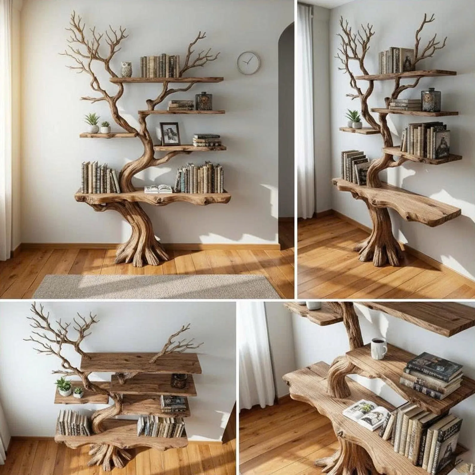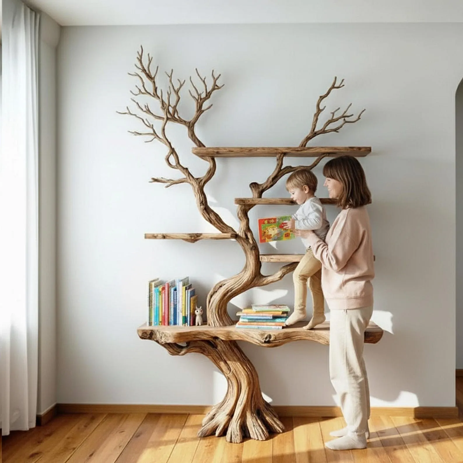 Bring a touch of nature into your home with this handmade tree branch bookshelf, crafted from carefully selected real driftwood branches and solid wood planks. Every piece is shaped by hand, ensuring a one-of-a-kind design that feels alive and organic just like a real tree growing in your space.