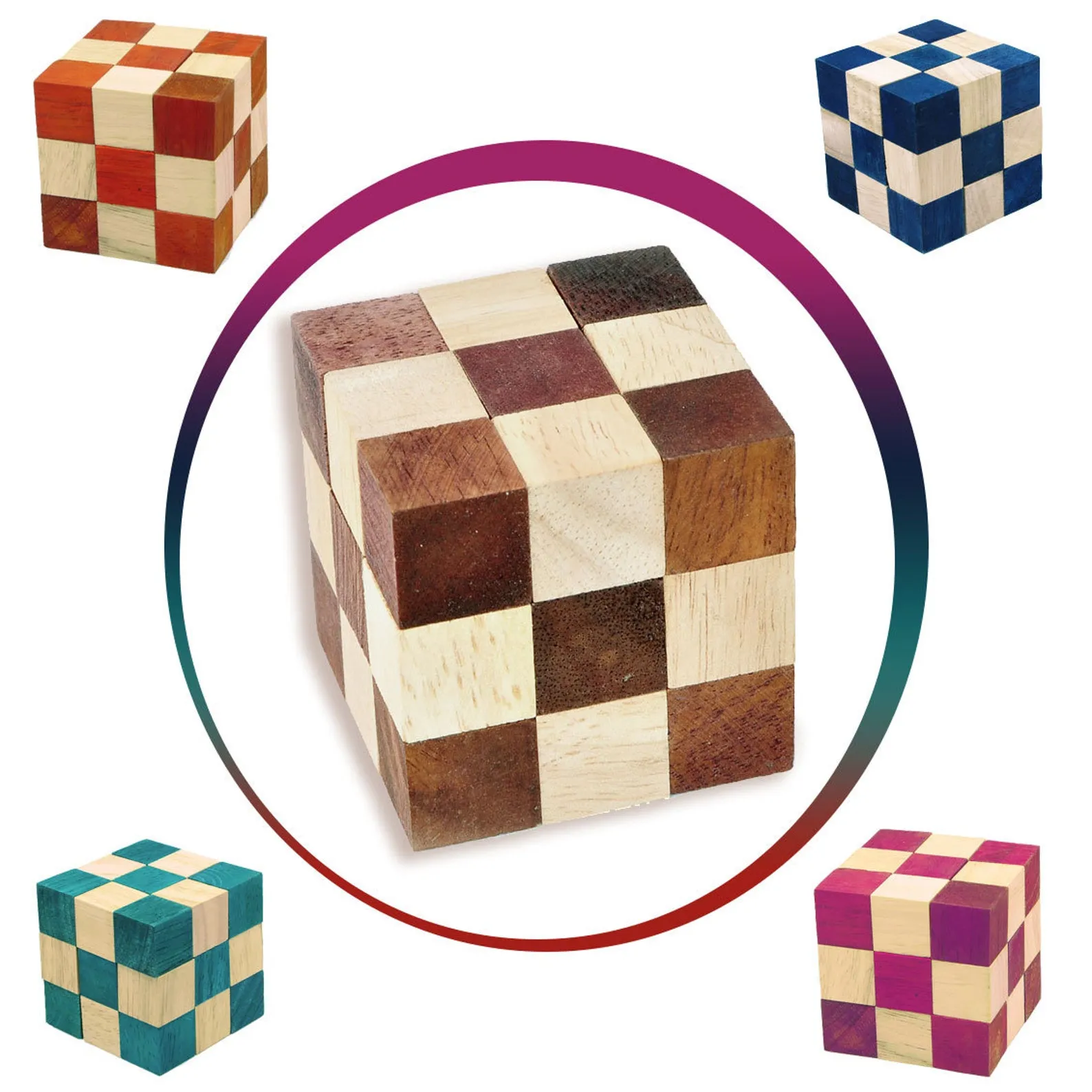 Orange Snake Cube – 3D Wooden Brain Teaser – Difficulty 4/6 Extreme – Leonardo da Vinci Collection