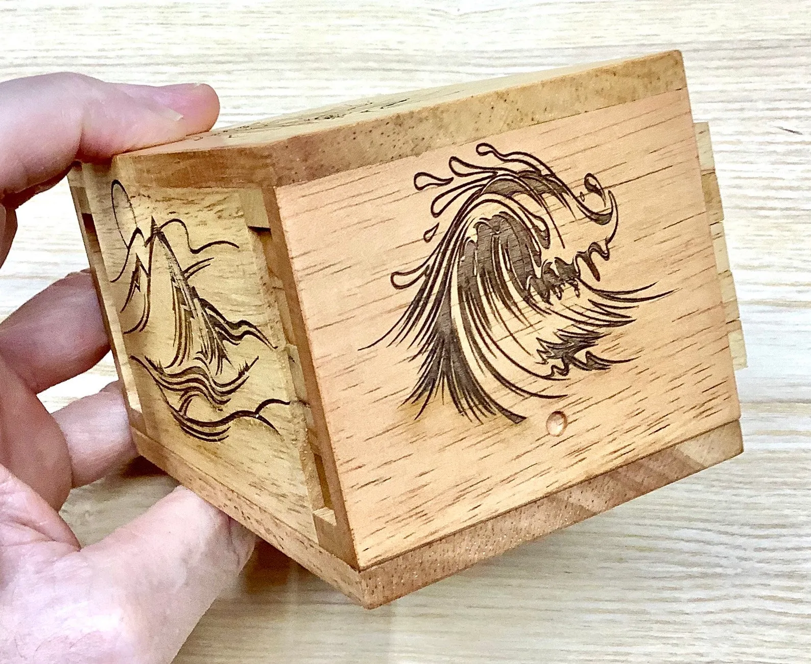 Secret Lock Box I Premium Wood Puzzle Box - Laser Engraved Nature Scenes on Each Side