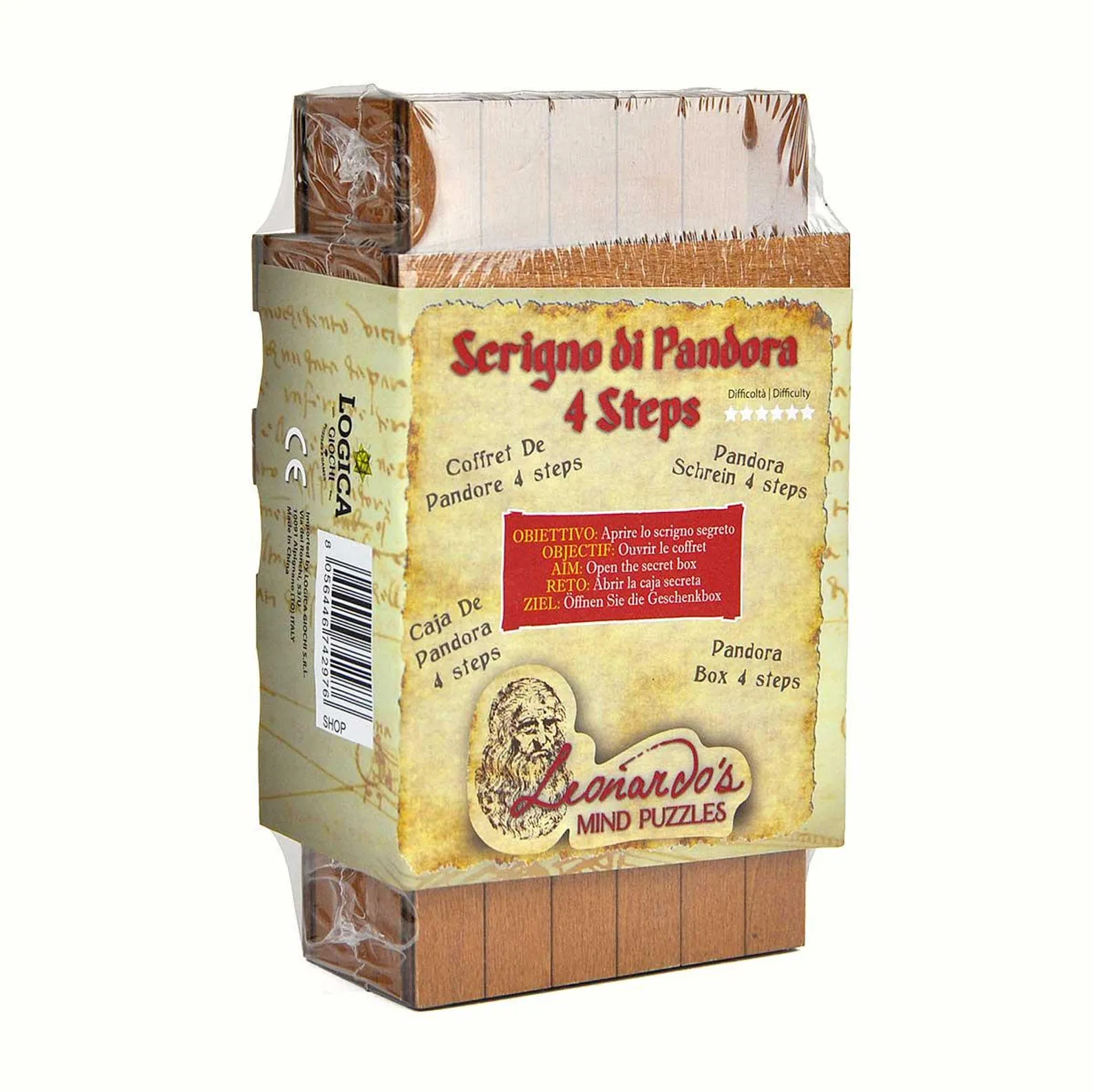Pandora Box 4 Steps – Wooden Brain Teaser – Secret Box – Difficulty 3/6 Hard – Leonardo da Vinci Collection