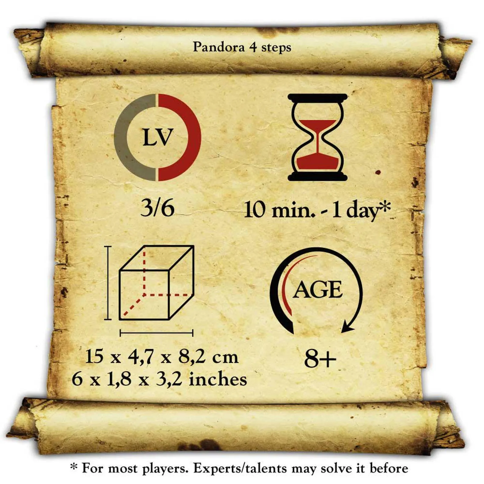 CHALLENGE: open both compartments of the secret boxA more difficult version of the classic Pandora’s Box: here there are two drawers and the first blocks the second.Will you be able to open this box that contains Hope, as told by the ancient legend of Pandora?Product dimensions: 15 x 4.7 x 8.2 cm / 6 x 1,8 x 3,2 inchesDimensions of the internal compartments:Large: 8.4 x 5.0 x 2.3 cm / 3,3 x 1,9 x 0,9 inchesSmall: 5.0 x 3.2 x 2.0 cm / 1,9 x 1,2 x 0,8 inchesPackaged in blister with the Leonardo Collection colored label