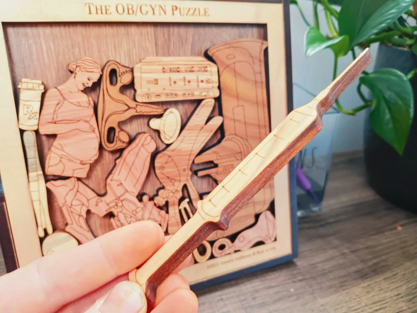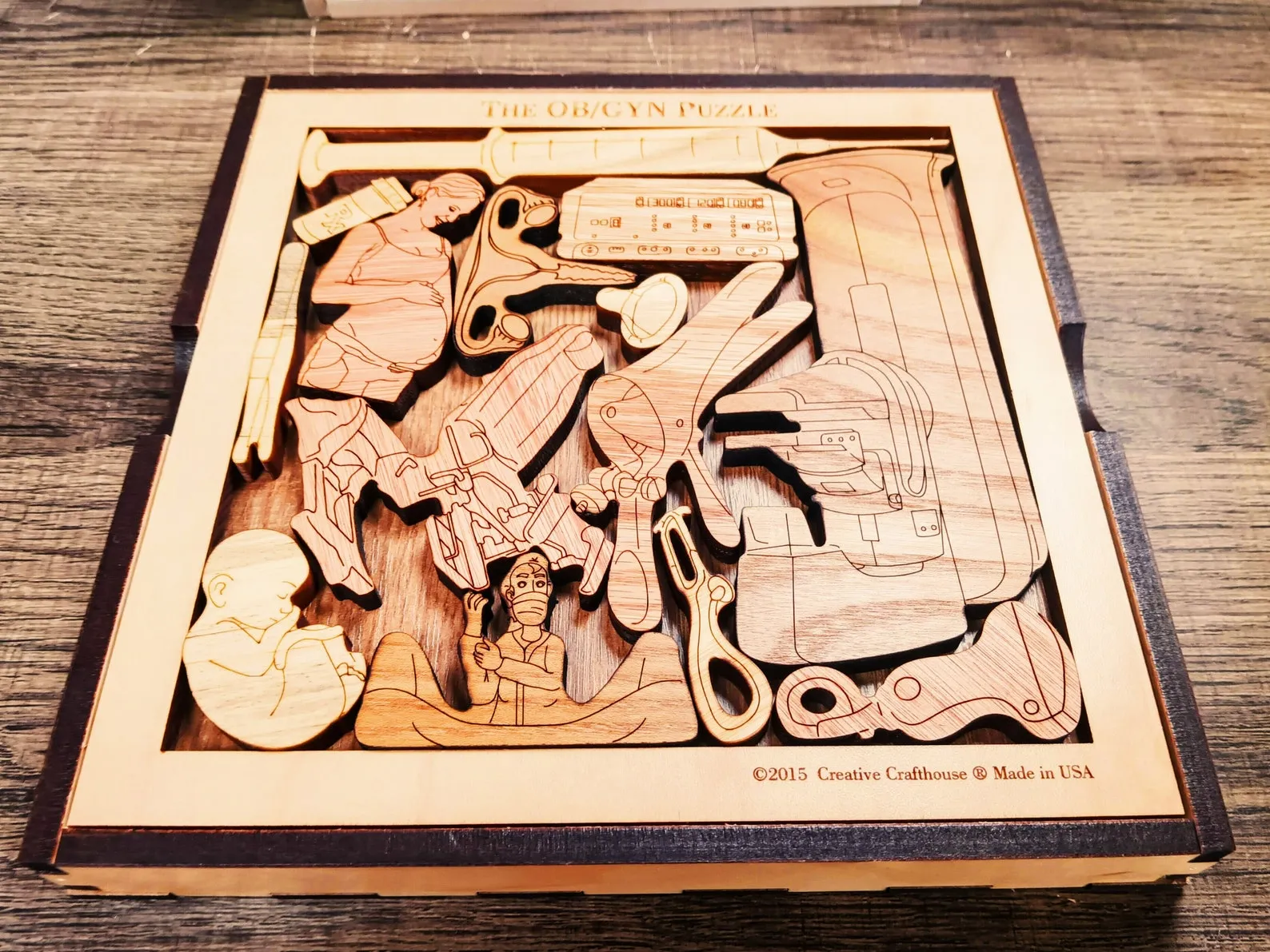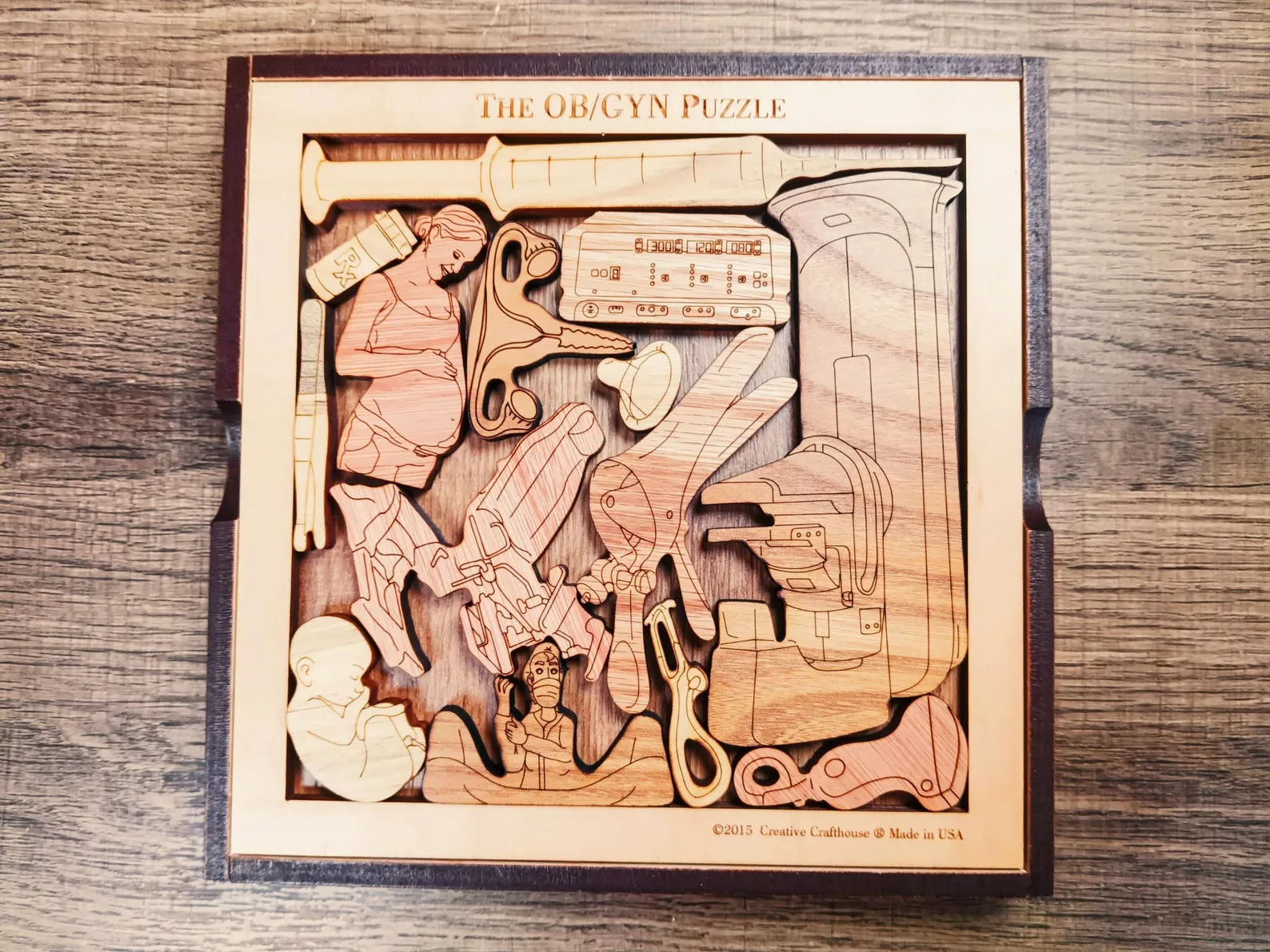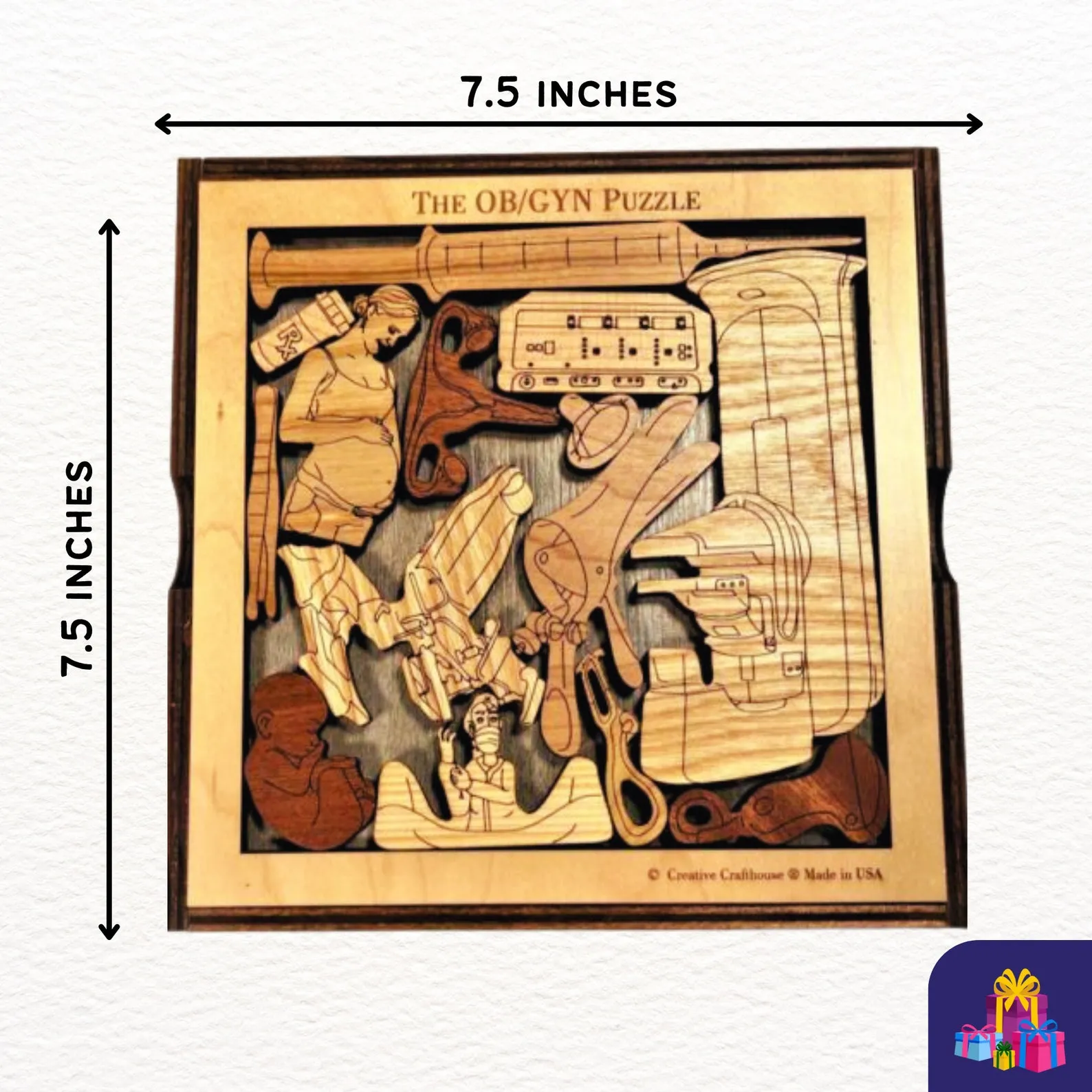 Celebrate the dedication of OB/GYN professionals with this beautifully crafted OB/GYN puzzle. Each piece of this medical puzzle is laser-cut from premium hardwood, depicting essential tools and symbols like the stethoscope, ultrasound, and procedure chair. This unique gift can be personalized with custom laser engraving, making it an exceptional choice for a doctor gift or a special way to express gynecologist thanks.The OB/GYN puzzle offers a challenging game experience that?s both engaging and meaningful. Whether you’re searching for med student gifts, a medical school grad present, or a thoughtful doctors retirement gift, this puzzle stands out as an ideal choice.Designed to double as medical decor, it?s also perfect for doctors office decor. With the option to add a laser-engraved name or message, this puzzle transforms into a truly personalized gift that honors the medical profession, making it a cherished keepsake for any professional.? 2016 Creative Crafthouse ?Available at:http://www.creativecrafthouse.com/index.php?main_page=product_info&cPath=135&products_id=1093