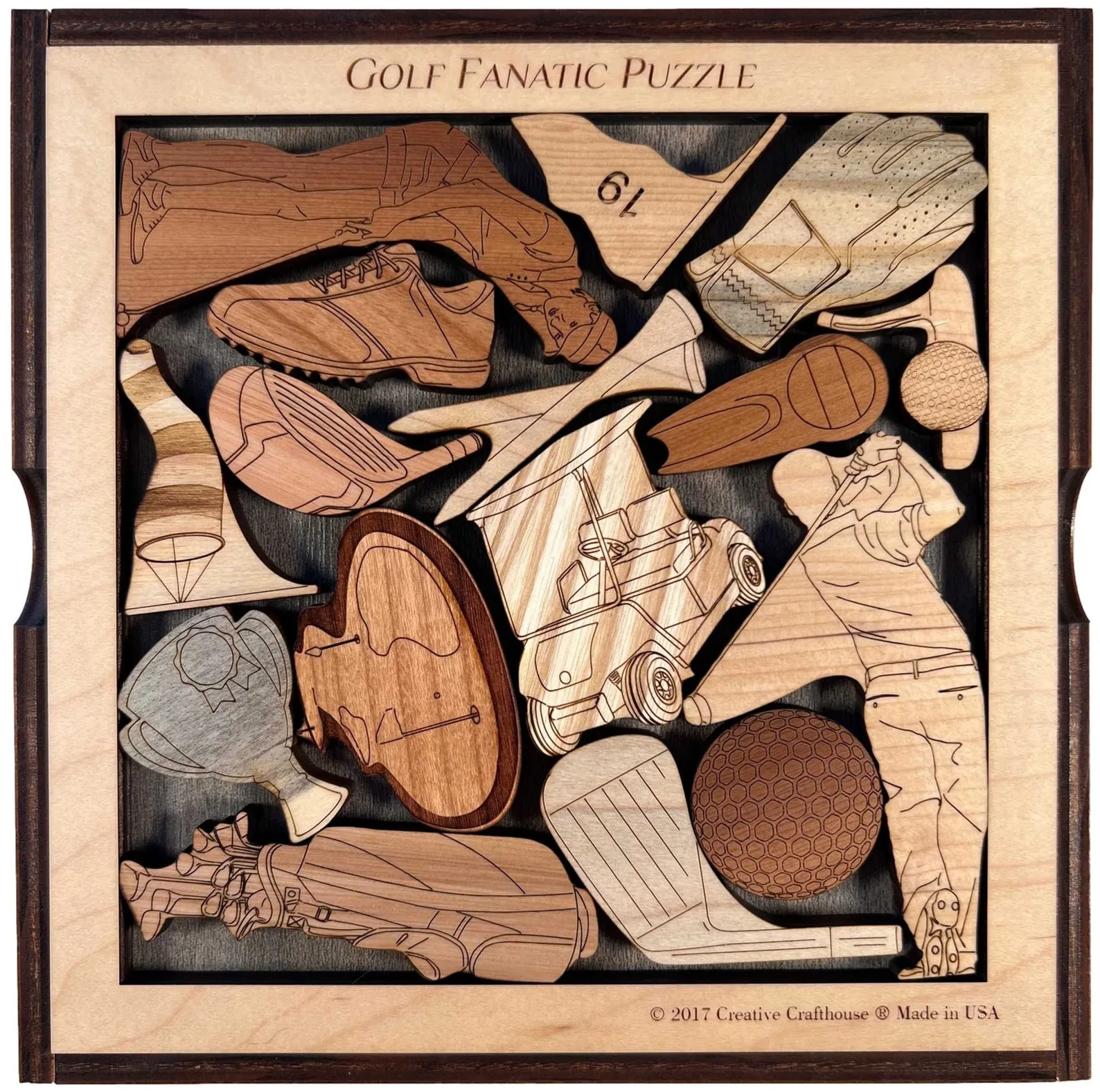 Golf Fanatic Puzzle - Personalizable Gift for Your Favorite Golf Lover - 16 Piece Wood Brain Teaser