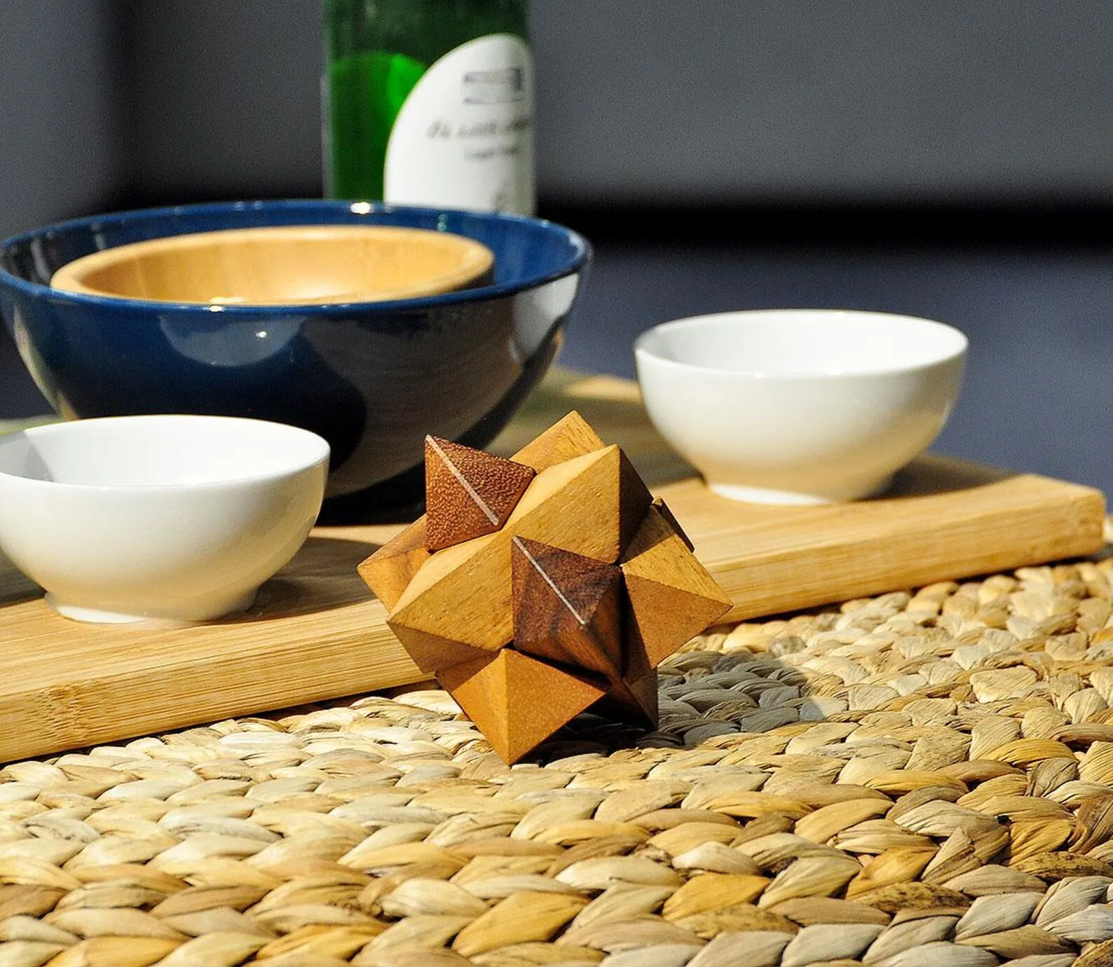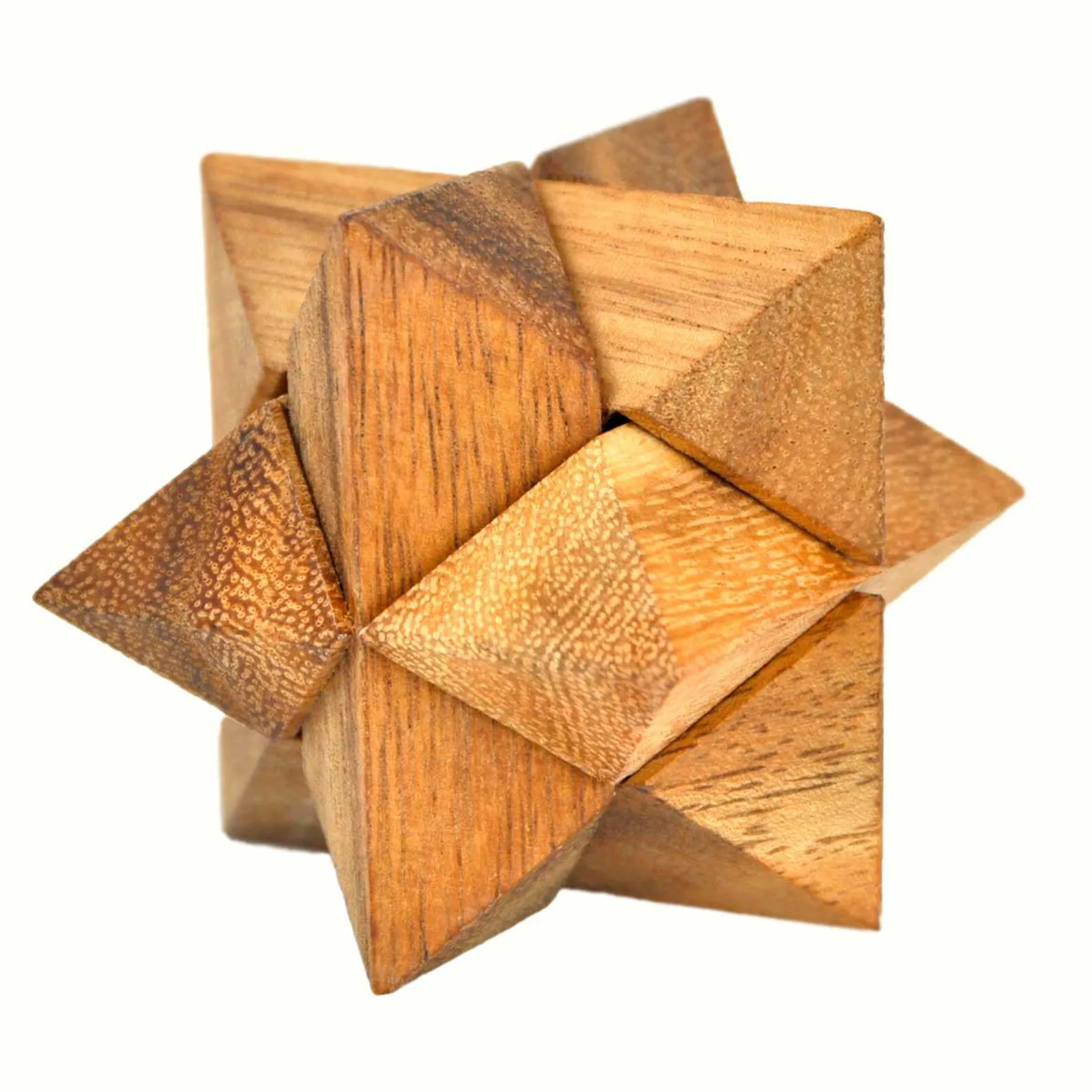 CHALLENGE: Disassemble and assemble the star, made of 6 pieces.The most beautiful 3D wooden brain teaser ever made.BEST GIFT!?Appreciated by players of all ages.Very difficult to assemble again – you will need to find a genius way to put it back as a Star.Difficulty: HARD 3/6.?Average solution time: 20 min. – 1 week.Dimensions small size: 7 x 7 x 7 cm / 2.8 x 2.8 x 2.8 inchesDimensions medium size: 10 x 10 x 10 cm / 3.9 x 3.9 x 3.9 inchesTeak/Samena woodPACKAGING: LEONARDO DA VINCI CARTON BOX.Handmade in Thailand.