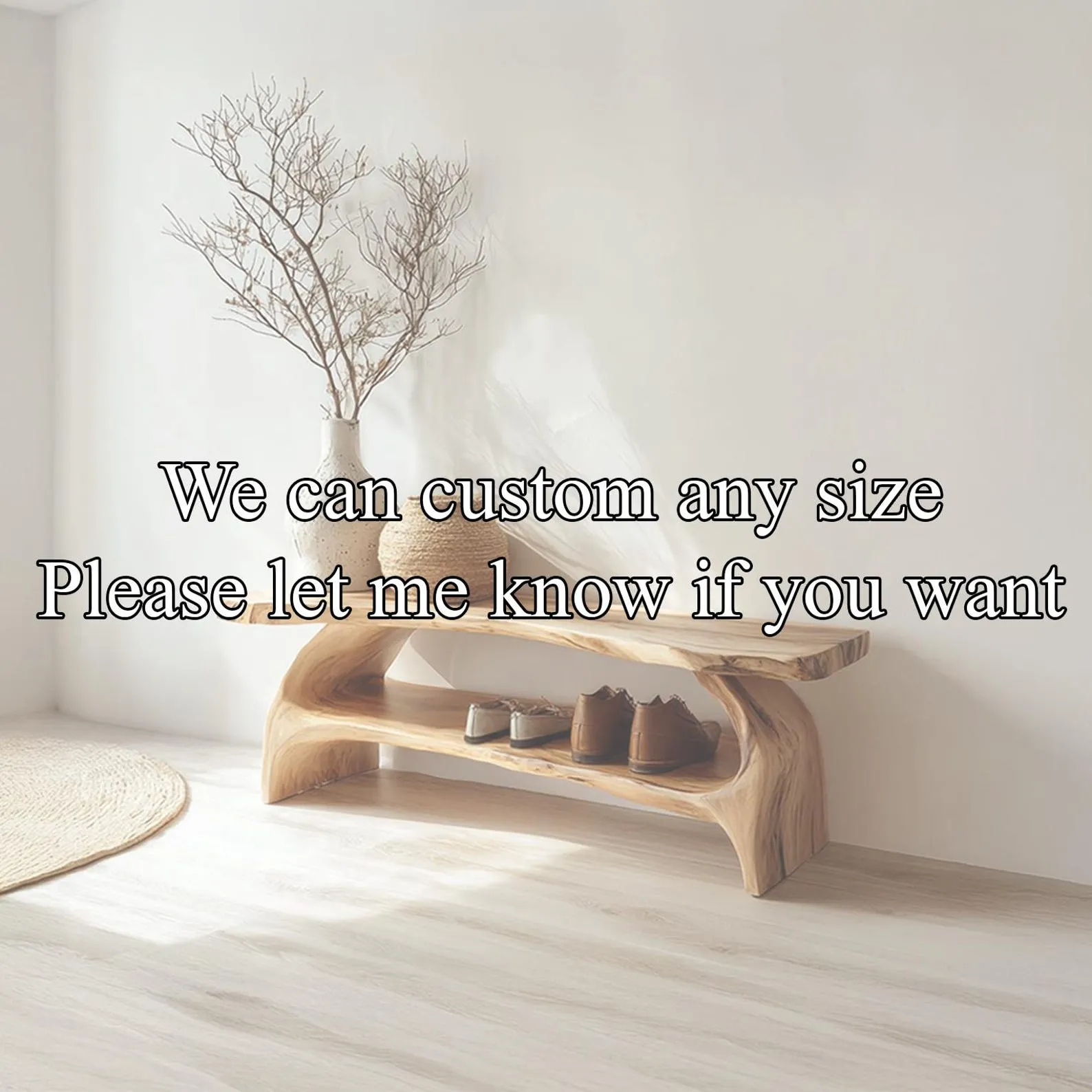– Our entryway benches are customizable to suit your preferences. Contact us for personalized options. As each piece is handmade, expect slight variations from the photos, adding to its uniqueness.