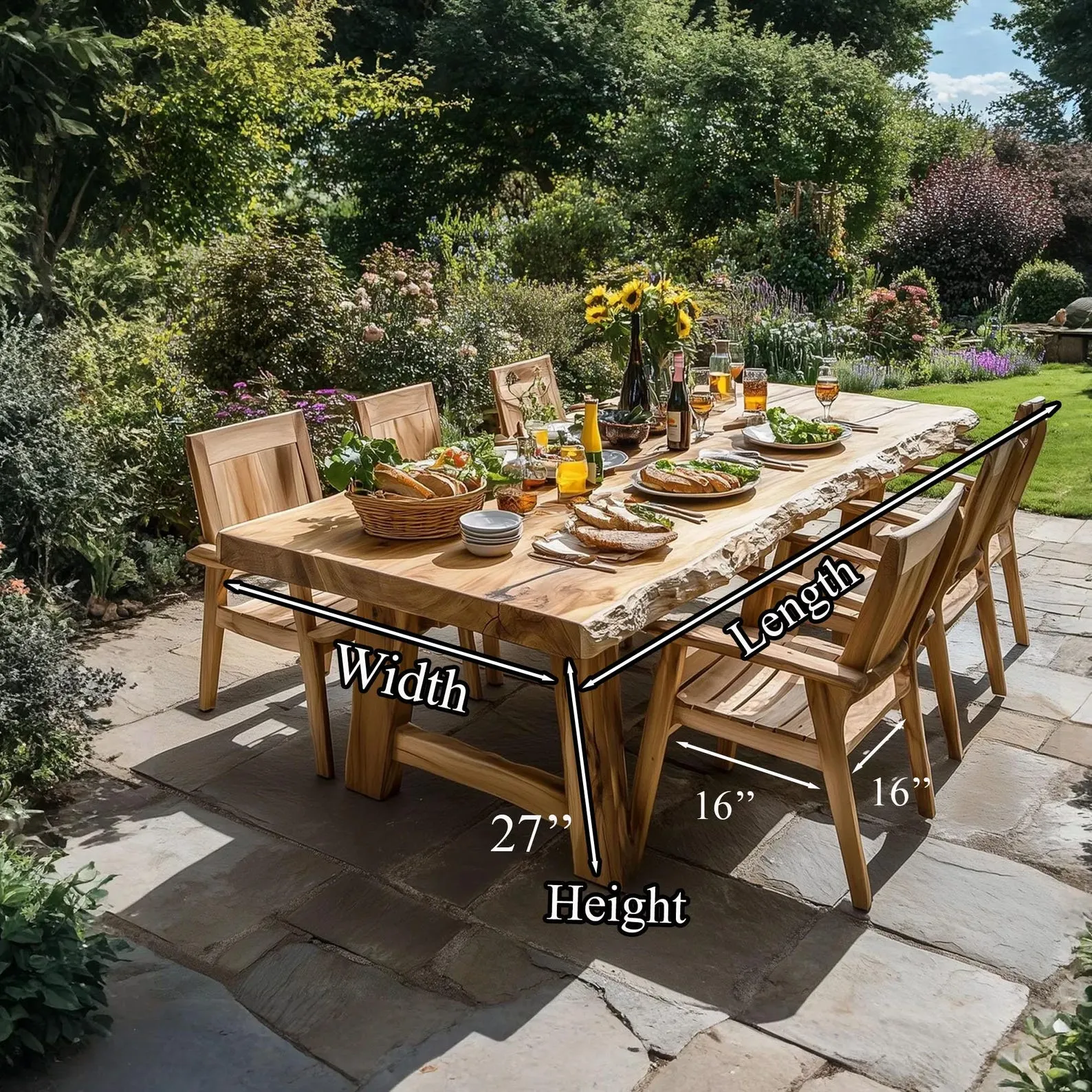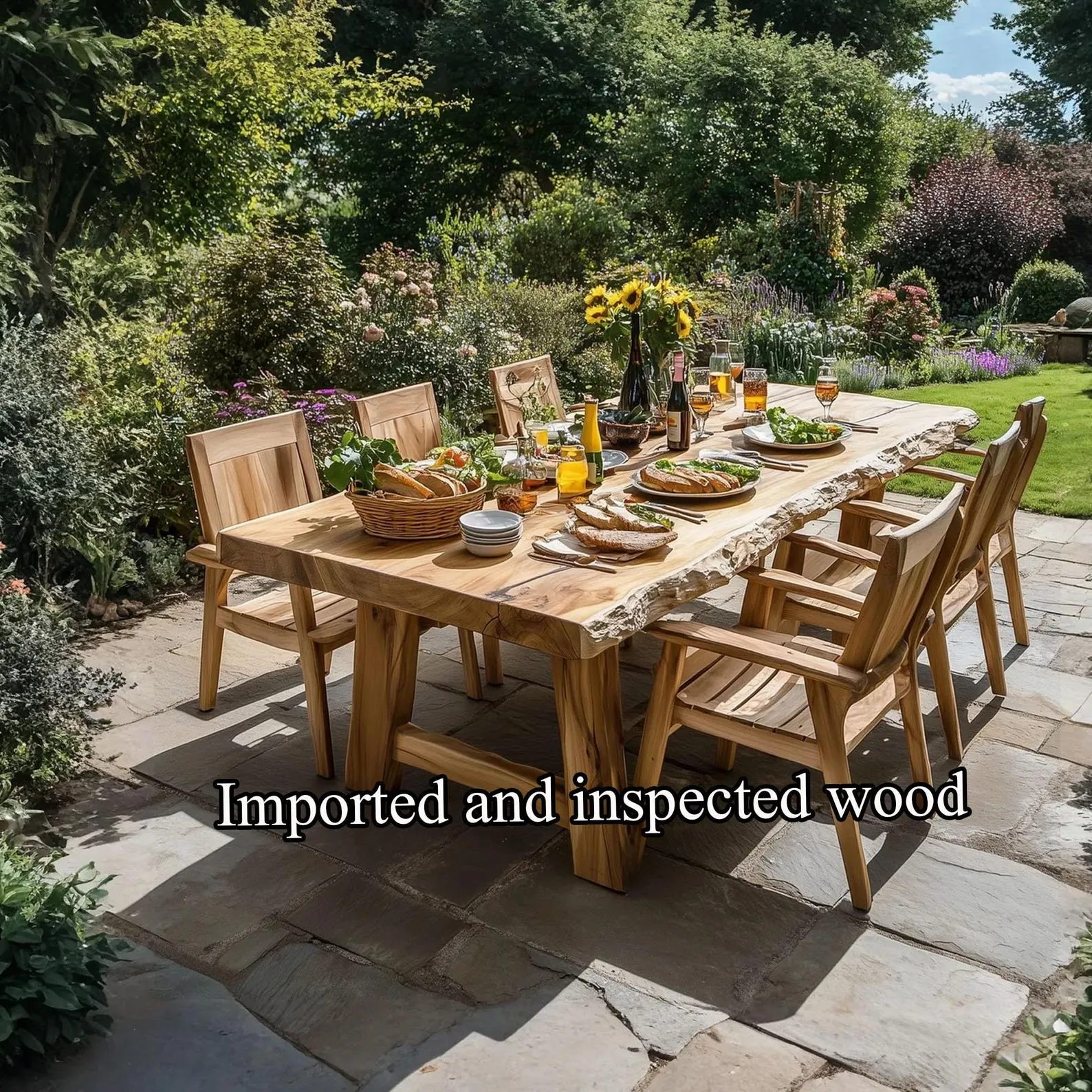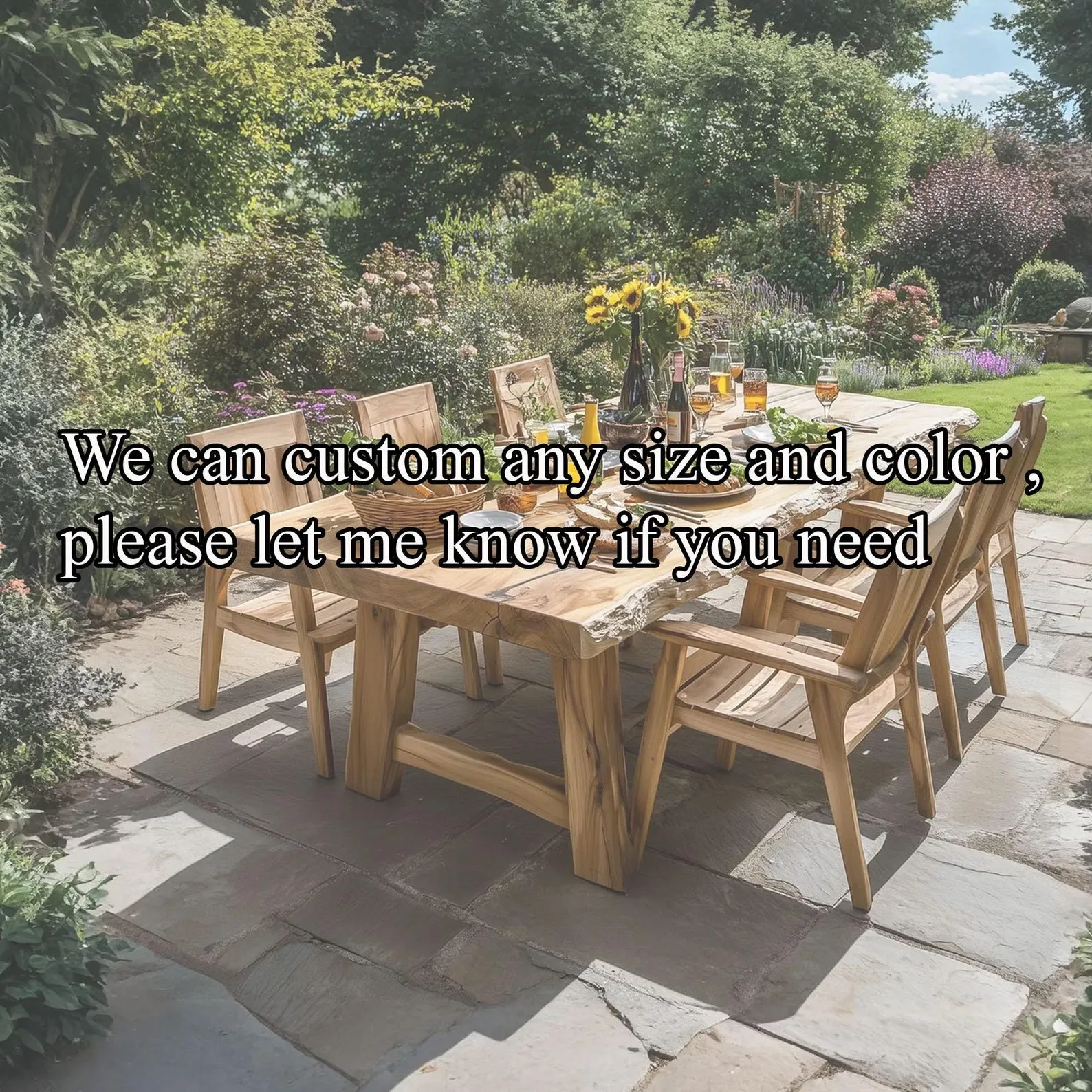 Rustic Solid wood large dining table set live edge table garden farmhouse set of 4 chair walnut narrow dining table home decor gift