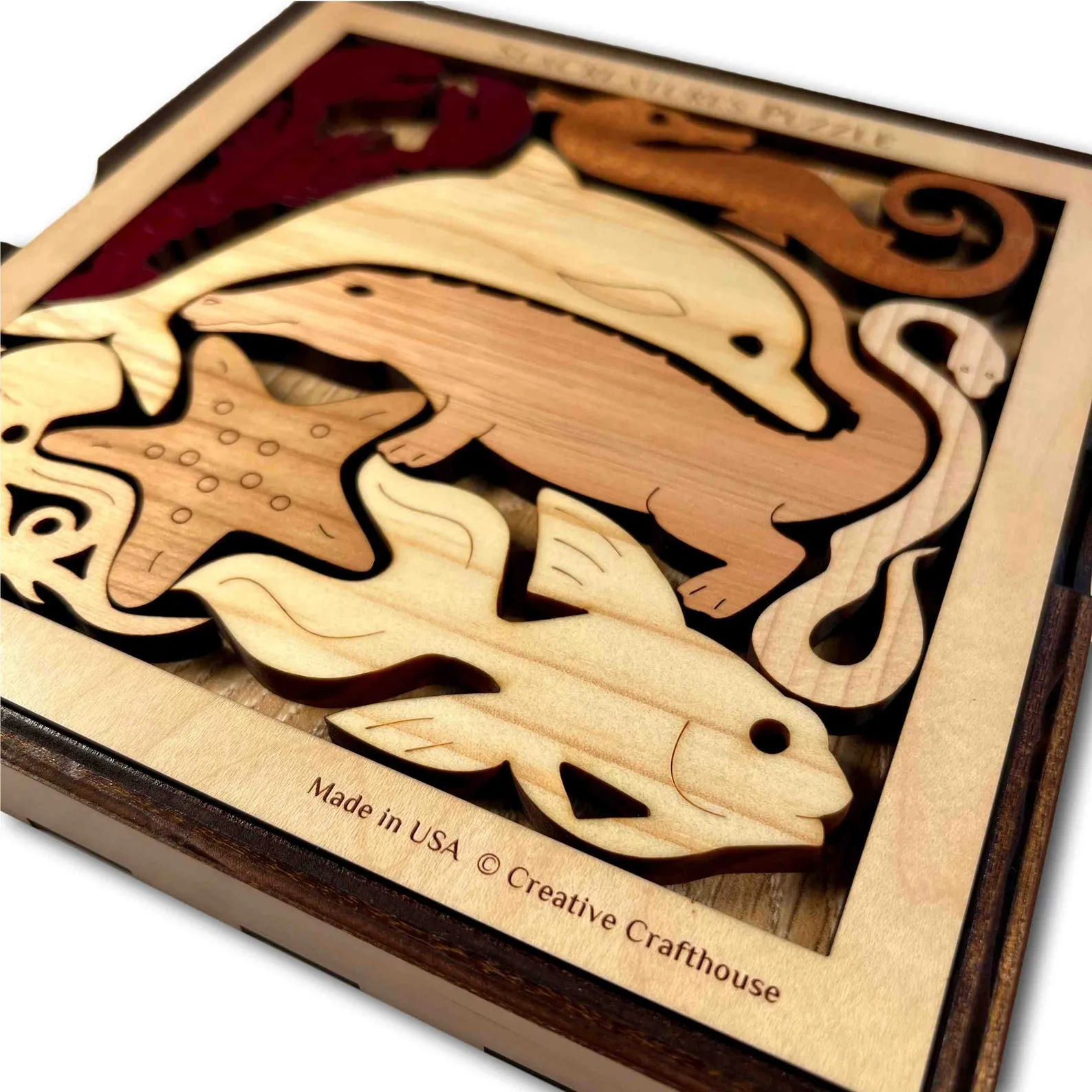 Sea Creatures an aquatic adventure wood puzzle – artistic and challenging – can be personalized