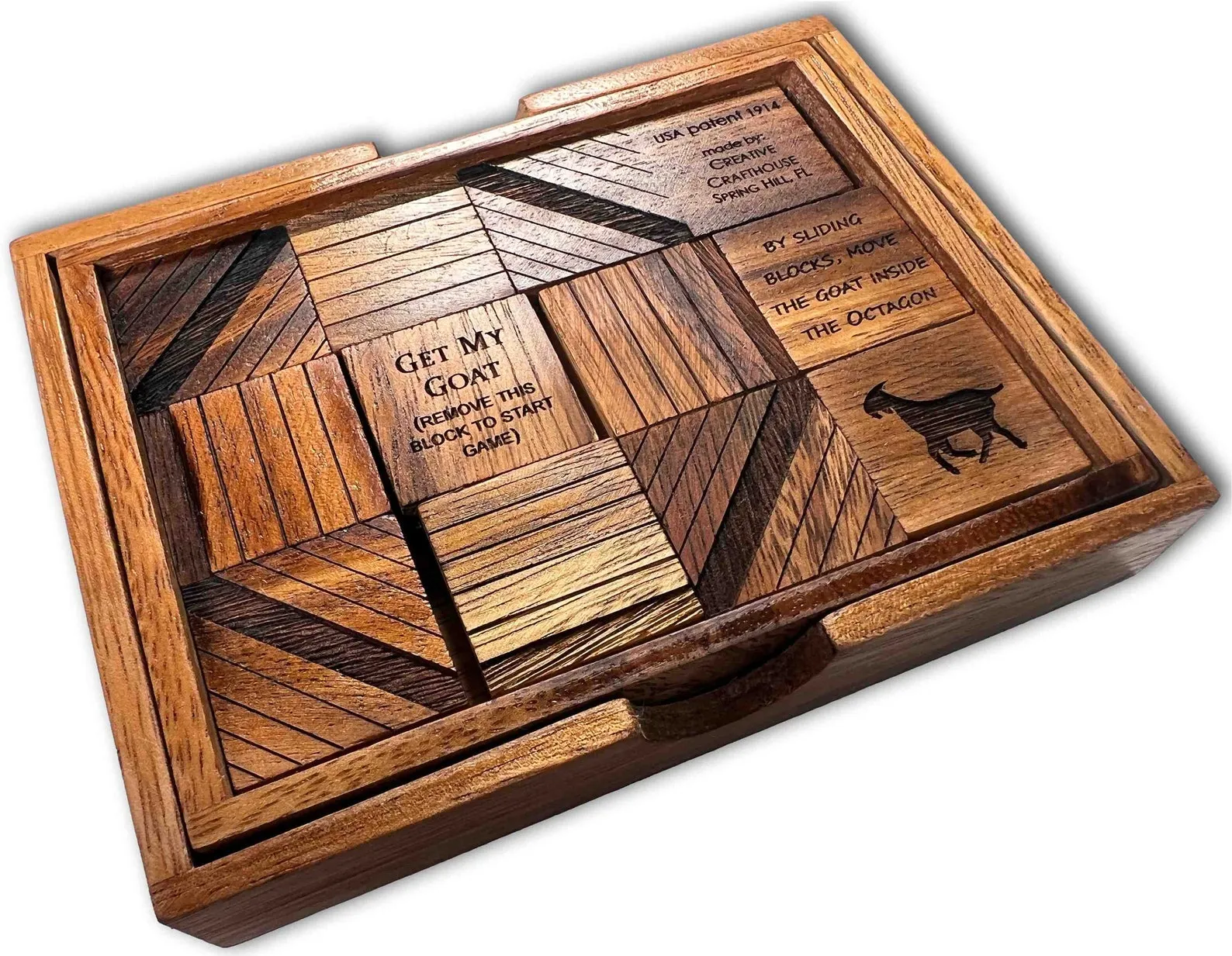 Sliding Puzzle, Goats Gift, Wood Brain Teaser For Adults, Sliding Block Puzzle, Christmas Family Gift, Escape Room Logic Puzzle,Holiday Gift
