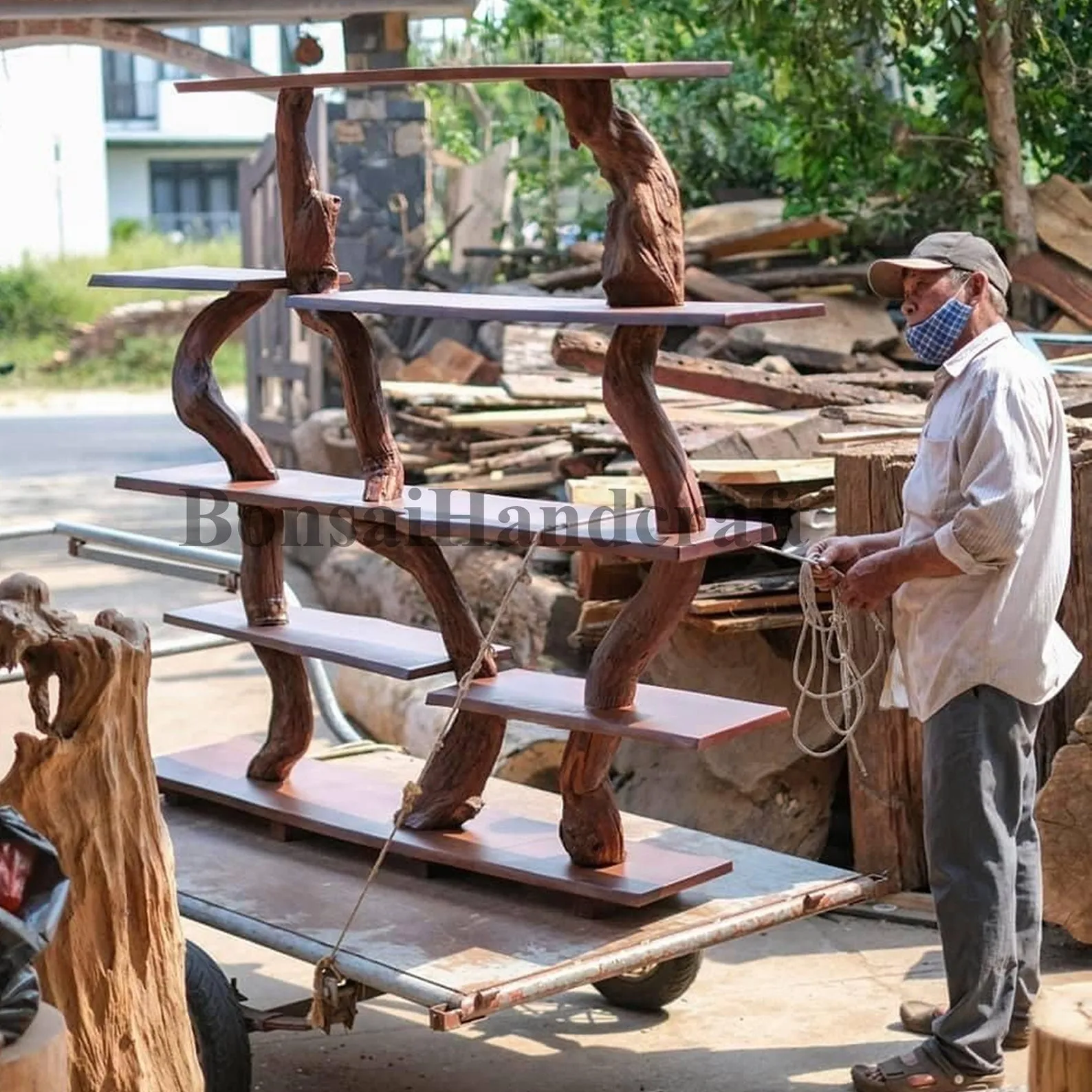 Solid wood bookcase free standing bookshelves driftwood branch furniture and decor