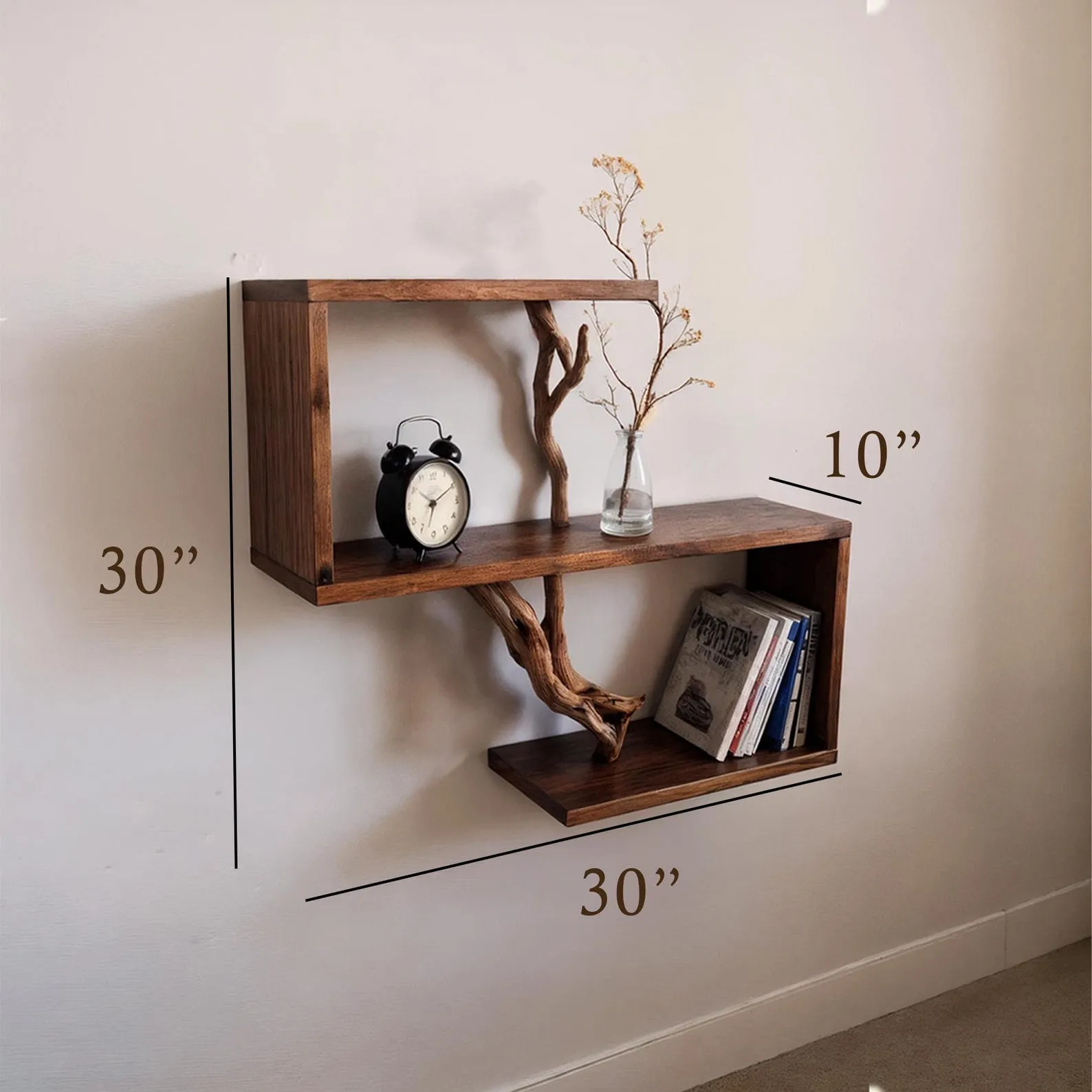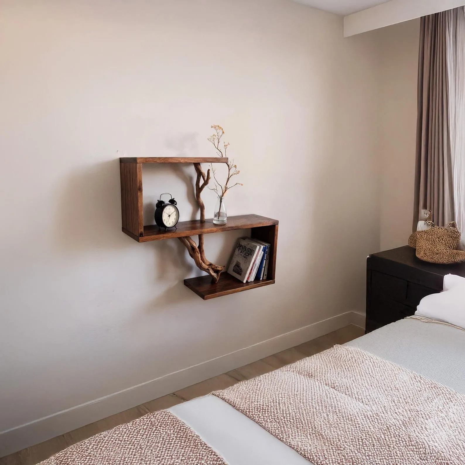 Handcrafted Driftwood Bookcase Rustic Tree Branch Design by AurenrootTransform your bedroom with this one-of-a-kind tree bookcase , thoughtfully handcrafted to blend natural beauty with functional design. Made from genuine solid wood and real driftwood branches, this tree branch bookcase brings the calming essence of nature right to your bedside.Each piece is entirely handmade, with shelves cut from natural solid wood and sculptural branches sourced from real driftwood. The result is a unique driftwood bookshelf that doubles as a nightstand perfect for storing your favorite books/No two pieces are exactly alike. Every rustic wood bookcase showcases the natural curves, textures, and character of the wood, making each one a distinctive statement piece in your home. Whether you’re styling a cozy cabin, a boho bedroom, or an earthy modern spaceWe offer custom sizes and finishes, so if you have a vision, we’re happy to bring it to life. Not sure what will work best for your space or wall type? Just send us a message we’re here to help.Once you place your order, keep an eye on your messages. We’ll send a photo of your custom tree branch bookshelf before shipping to ensure it’s exactly what you envisioned.Let Aurenroot craft a piece as unique and personal as your home.