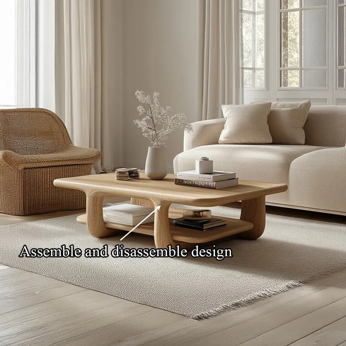 Solid Wood Coffee Table Rustic Coffee Table Minimalist Furniture Natural Wood Grain Living Room Decor Handmade Wooden Table