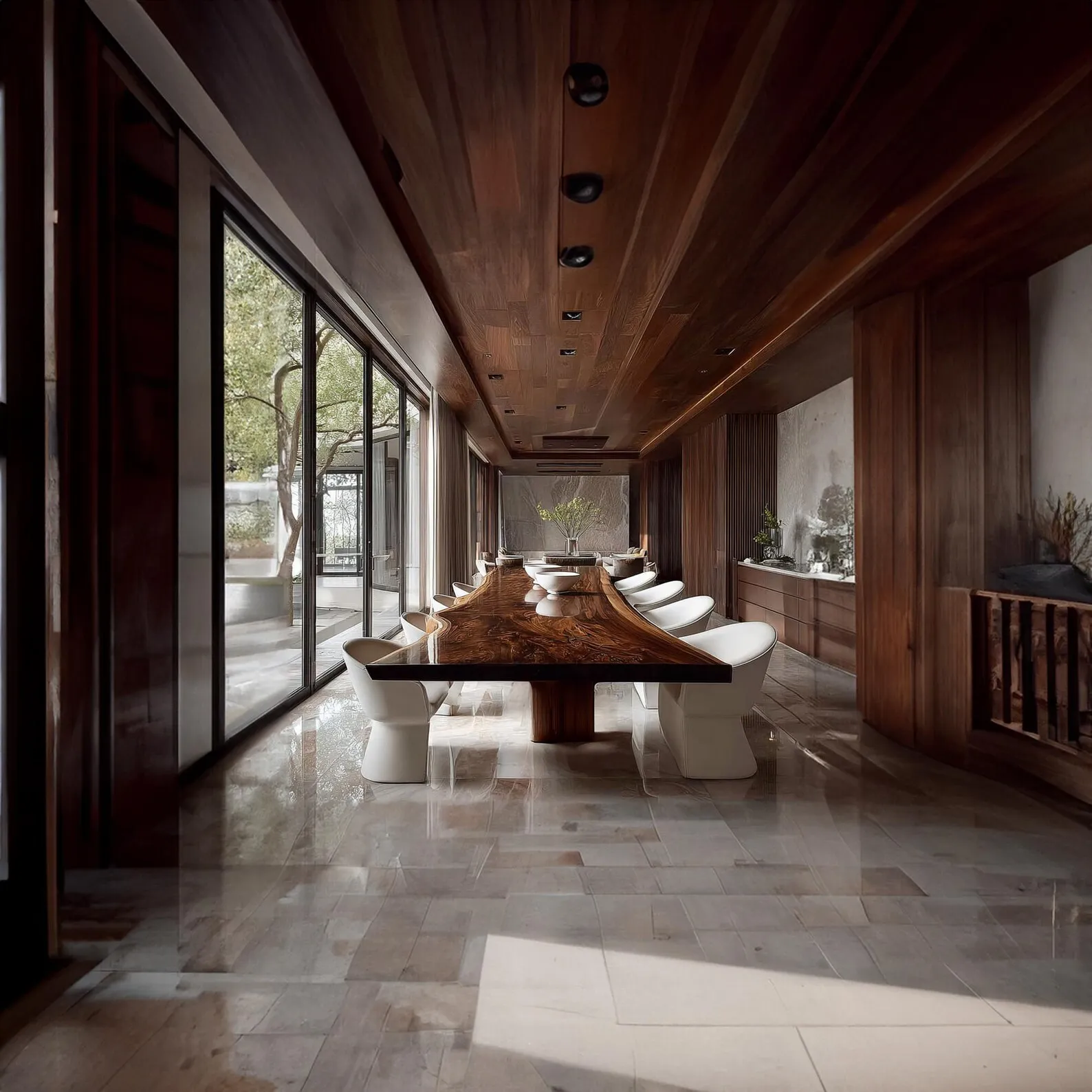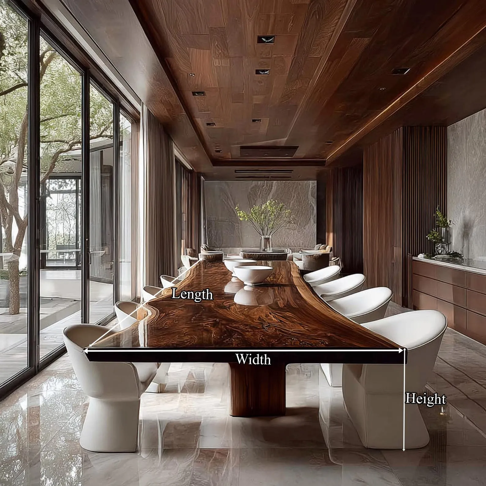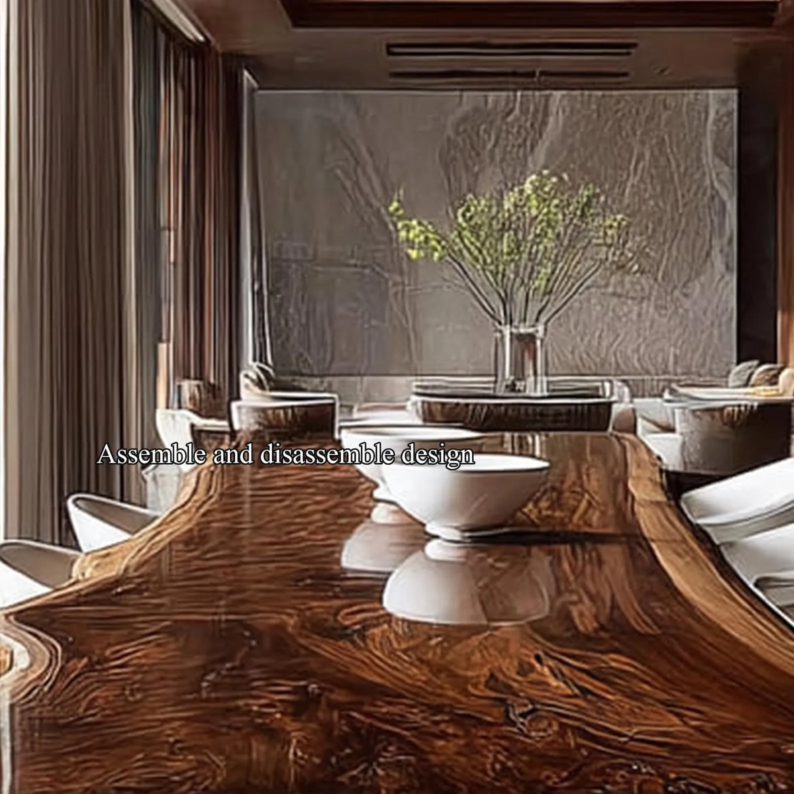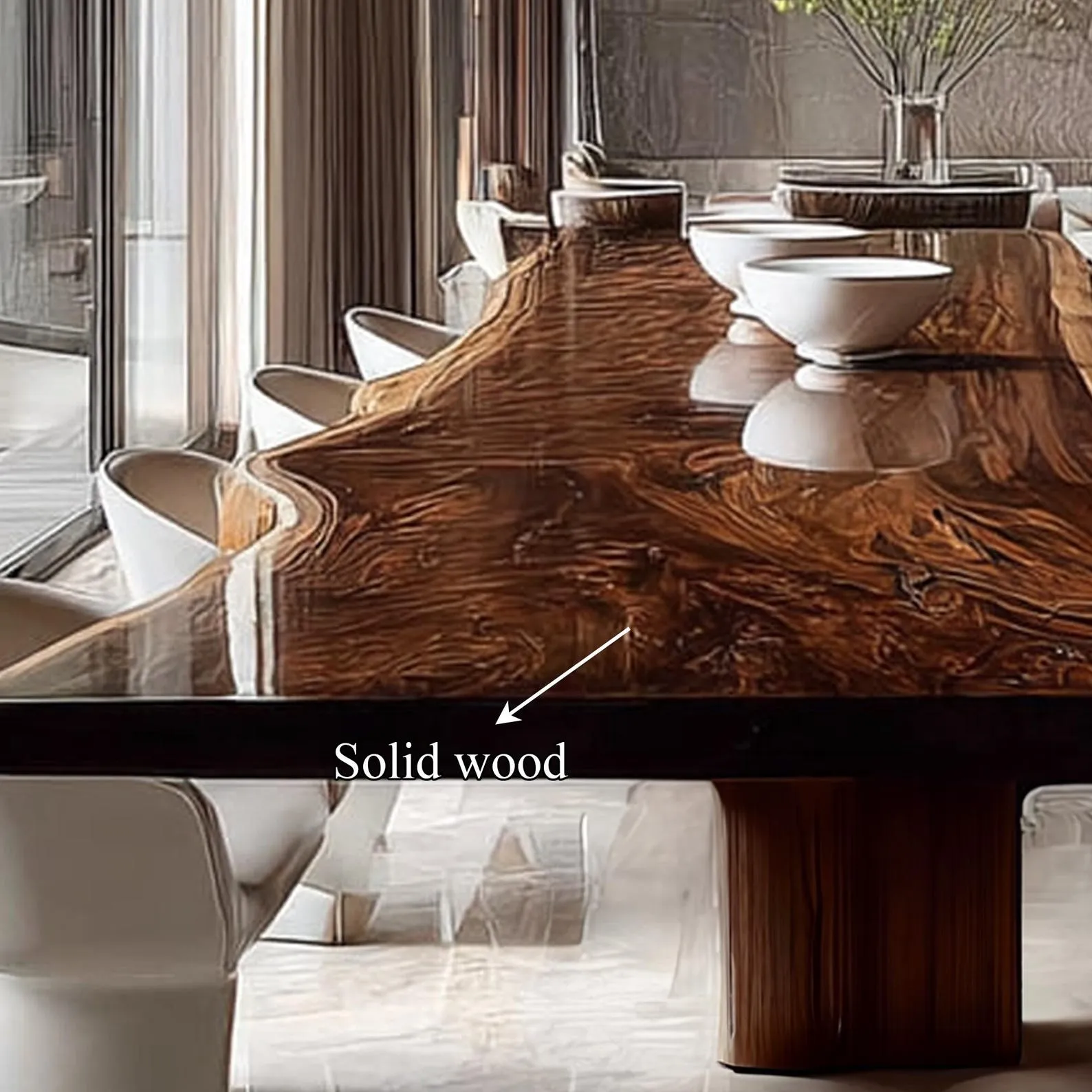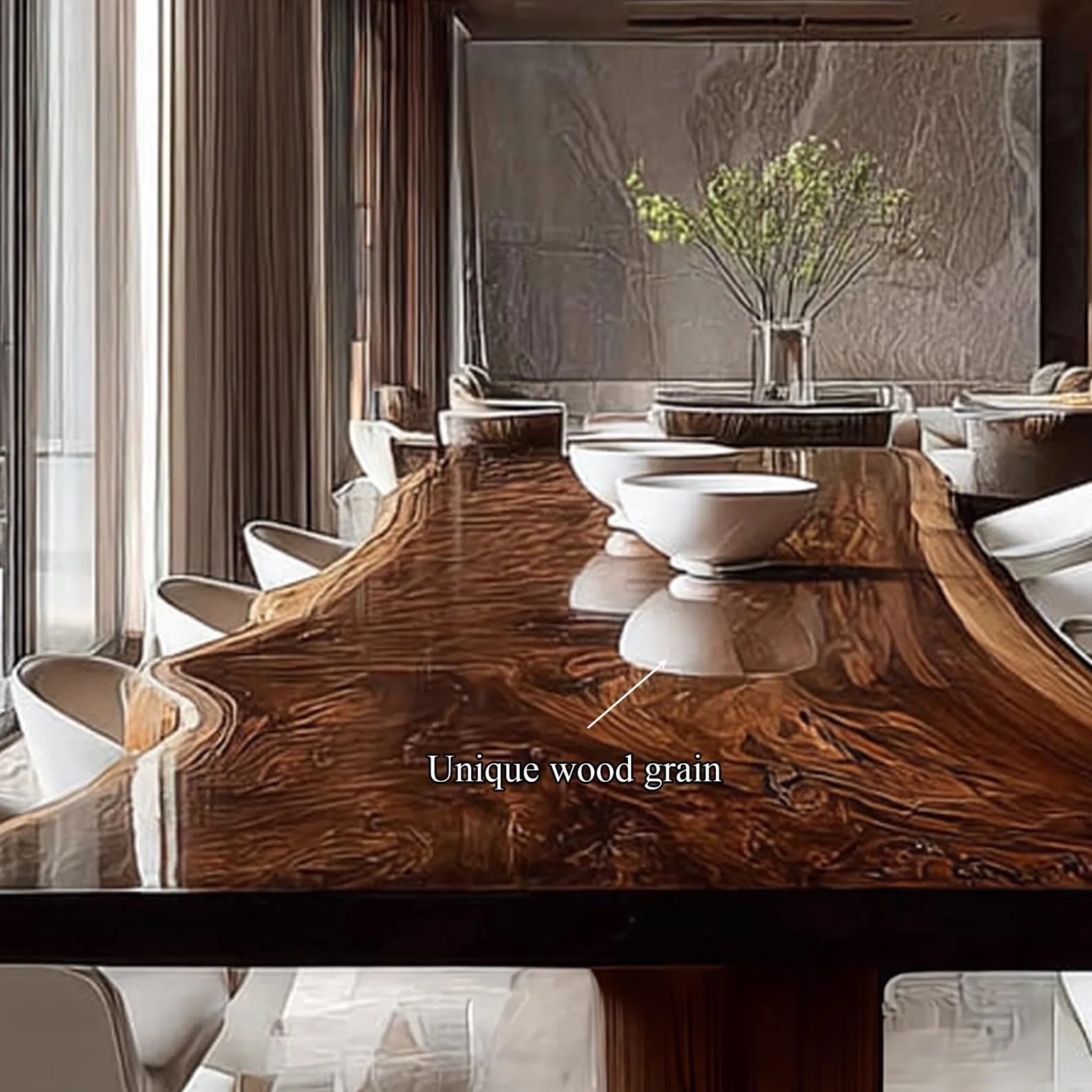 Elevate your dining space with this Solid Wood Dining Table, crafted entirely from natural wood slabs for unmatched strength and timeless beauty. Each table is made from a single block of wood, showcasing the unique grain patterns that make every piece one-of-a-kind.