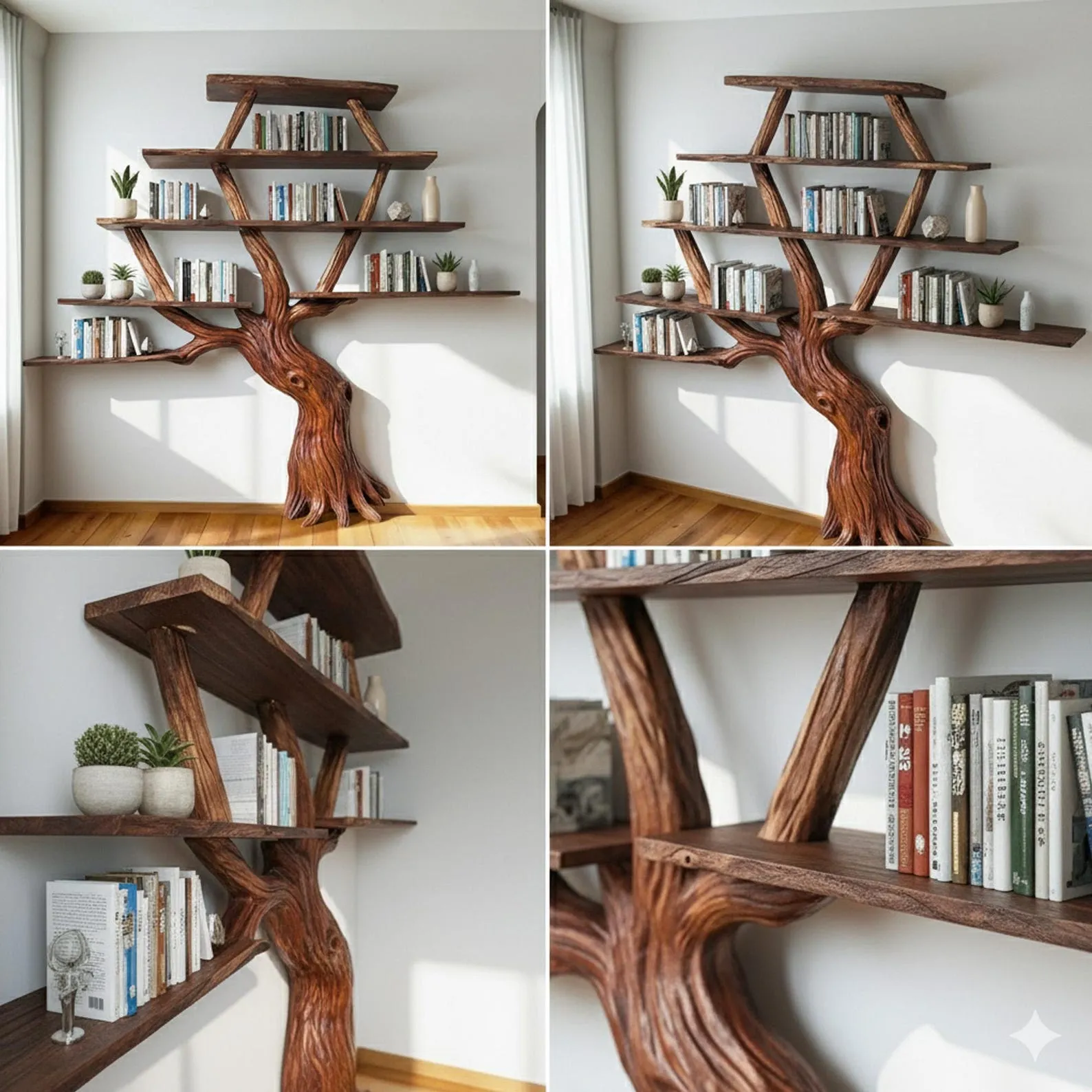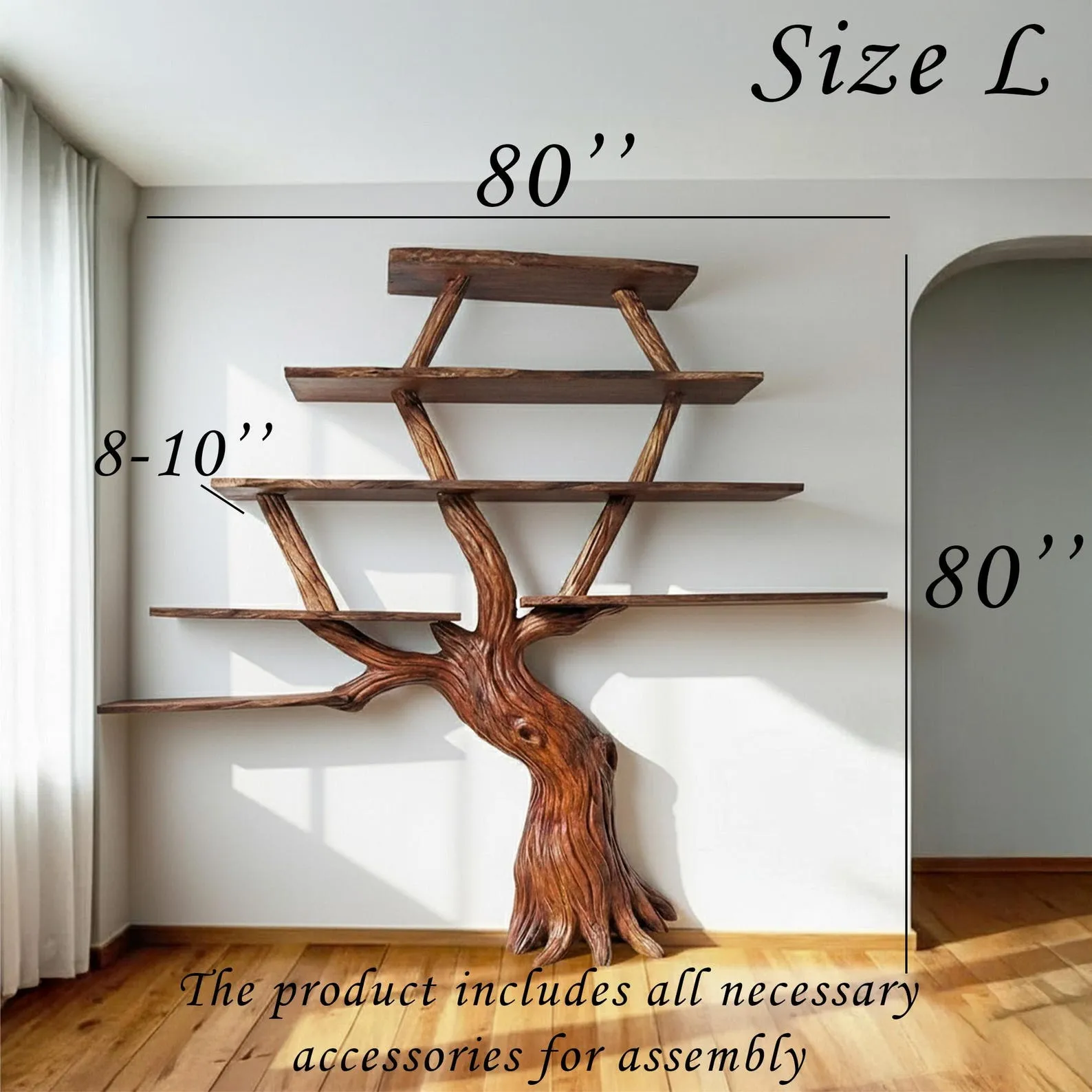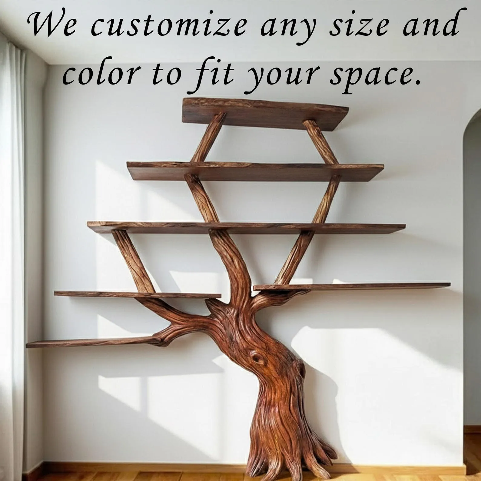 The driftwood branches we use are collected from rocky mountain areas, chosen for their unique shape, grain, and texture. The natural wood is durable, termite-resistant, and truly one of a kindevery shelf is different, just like a real tree.