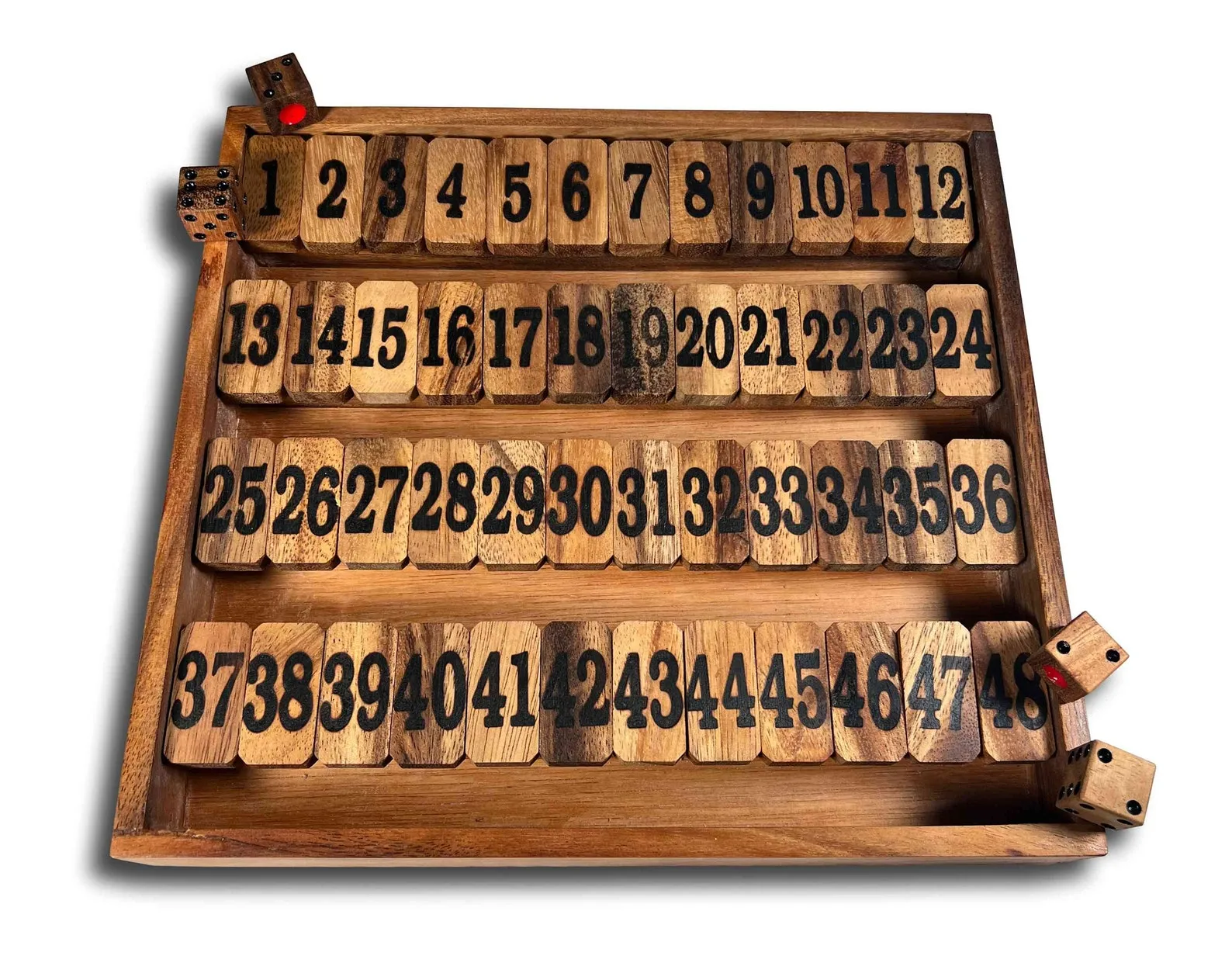 Shut The Box 1-48 Dice Game, Wooden Board Game, Math Learning Game, Math Teaching Gift, Educational Game, Christmas Gift, Family Board Game