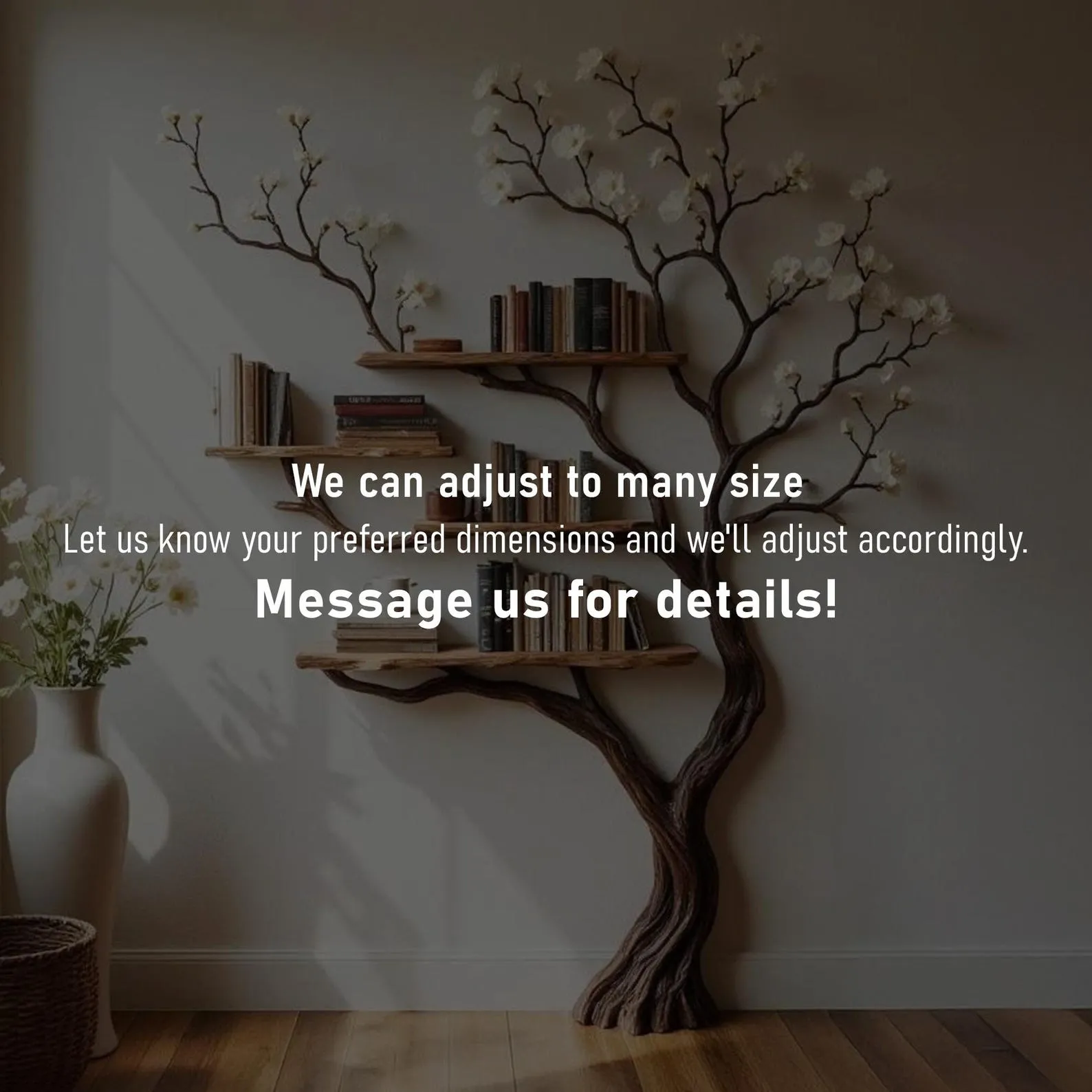 Tree bookshelf with natural driftwood branch wall mounted art solid wood bookcase handmade home decor gift