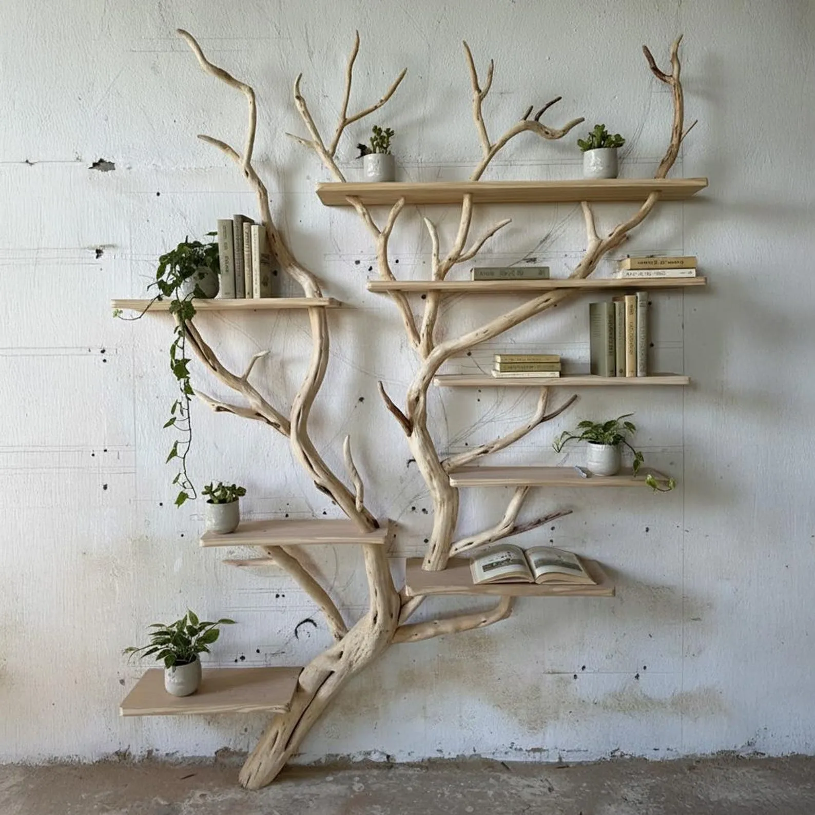 Every curve and grain of our shelves on wall is shaped by hand ‘ no molds, no repetition, no mass production. The smooth matte finish and gentle live edges of the bookcase solid wood highlight the wood’s raw authenticity, while the branch-like structure evokes the quiet harmony of Japandi design and the timeless imperfection of Wabi-Sabi aesthetics.