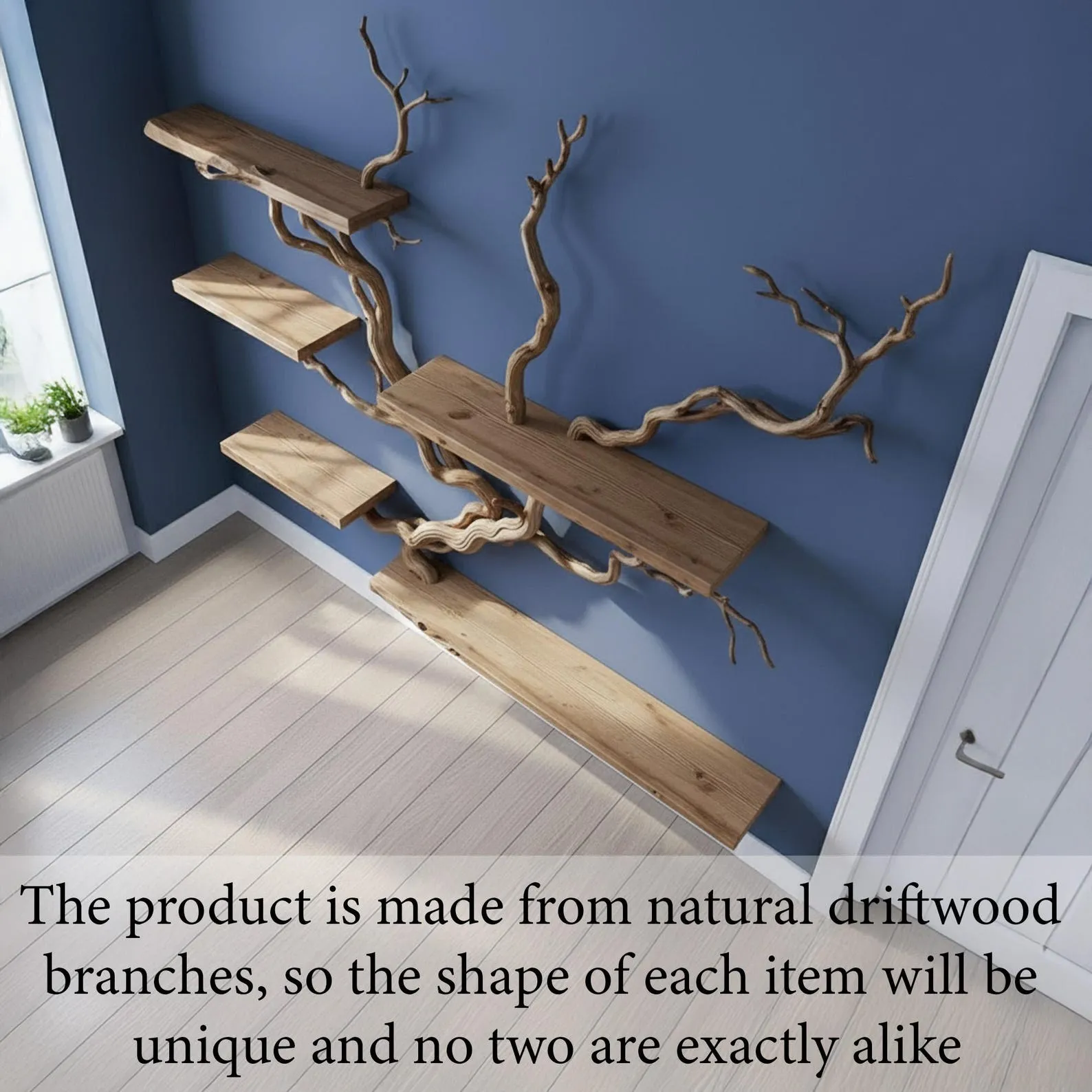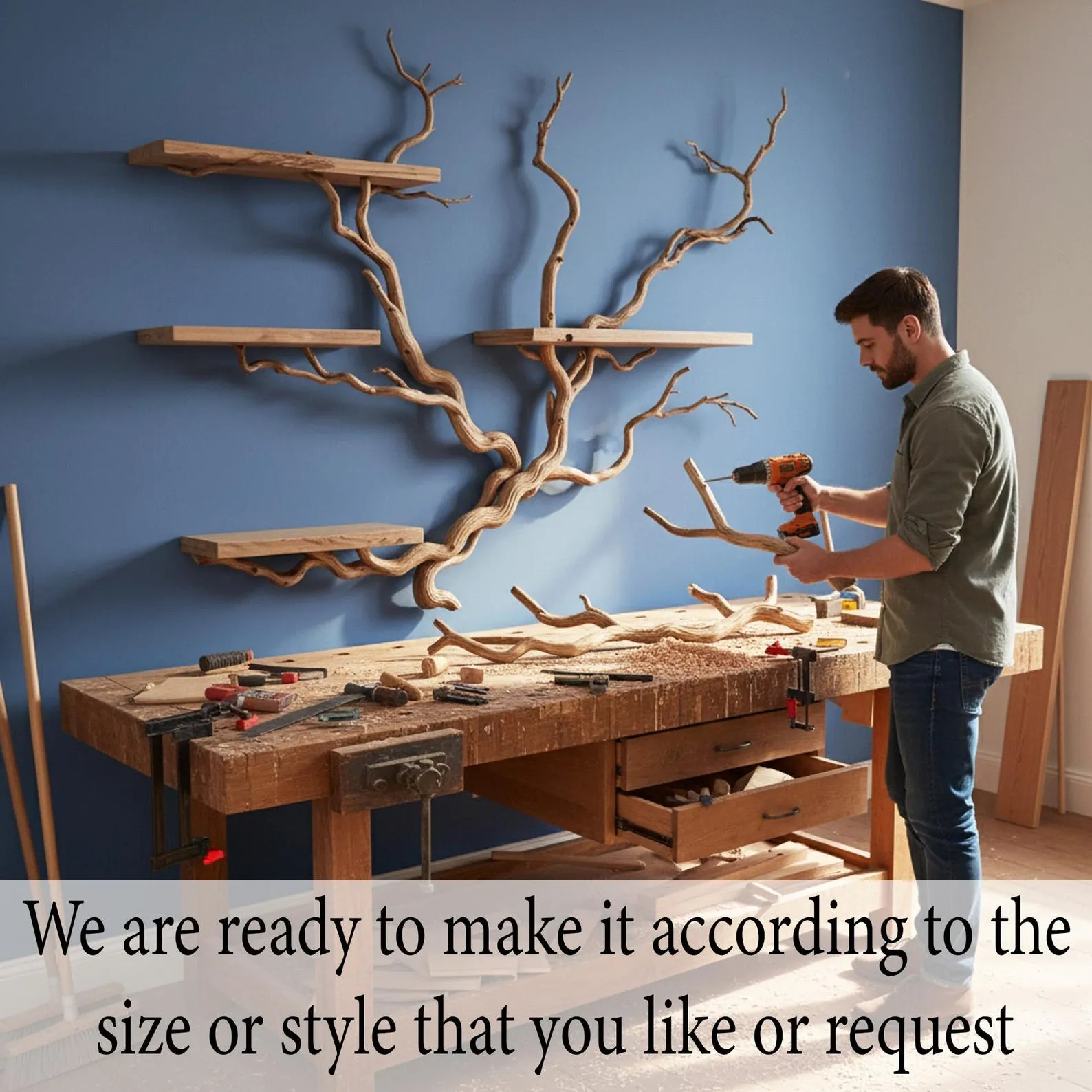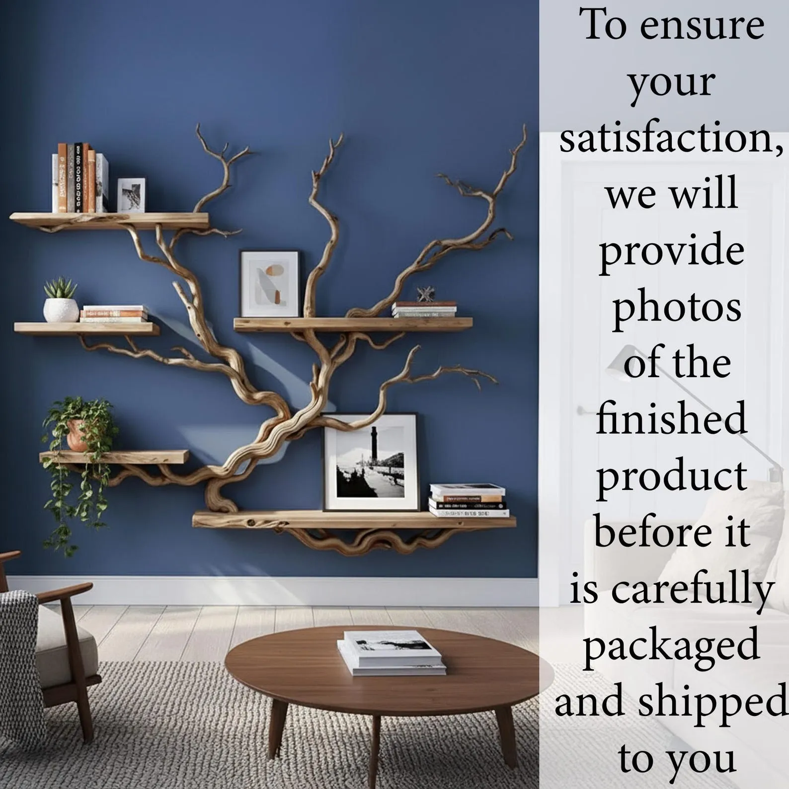 Bring the beauty of nature into your home with this handmade tree branch book shelf furniture, a stunning reclaimed wood bookcase that blends functional storage with artistic design. Our natural wood bookshelf on wall is carefully handcrafted from solid wood, each tree branch wall shelf is shaped like a branching tree, with smooth floating shelves that provide both strength and elegance. This nature-inspired branch bookshelf transforms any wall into a unique focal point, perfect for displaying your favorite novels, collectibles, framed photos, succulents, or decorative accents. This wall mounted shelves with its sculptural form and organic details, bookcase solid wood fits seamlessly into a variety of interior styles, whether you prefer a rustic farmhouse living room, cozy cottage bedroom, boho modern home office, or creative art studio d?or. Each driftwood book shelf is one of a kind, highlighting the natural wood grain and artisanal craftsmanship, making tree book shelf not only a functional wall storage solution but also a timeless tree branch bookcase of eco-friendly wooden wall art.Designed to save space while enhancing the atmosphere of your room, this driftwood tree shelf arrives in detachable parts for safe transport and easy assembly. Handmade to order within 5?7 days and shipped internationally via trusted couriers such as UPS or DHL, vintage bookcase is carefully packed to ensure it reaches you in perfect condition. Its customizable dimensions allow it to adapt perfectly to your wall space, making wall mount bookshelf versatile for different room sizes and design preferences. Whether used as a unique bookcase, a rustic wall shelf, or a boho-chic d?or element, this handcrafted driftwood tree shelf elevates any space with warmth, creativity, and a touch of nature. Perfect as a housewarming gift, wedding present, or anniversary gift, this custom bookshelf more than just a bookshelf?it?s a functional work of art that brings the outdoors inside and celebrates the beauty of sustainable craftsmanship.? Key Features:Handmade from solid wood ? each wall mounted shelf highlights natural wood grain and unique organic shapesWall-mounted tree bookshelf ? our floating bookshelf saves floor space while adding character to your homeVersatile d?or ? our tree branch wall shelf perfect for books, collectibles, succulents, framed photos, or small plantersCustomizable size ? our tree branch shelf tailored to fit your wall dimensionsFlat-pack shipping ? this wooden bookshelf shipped in detachable parts for easy, safe transport and simple assembly at homeEco-friendly materials ? our custom bookshelf on wall sustainable wood chosen for durability and natural beauty